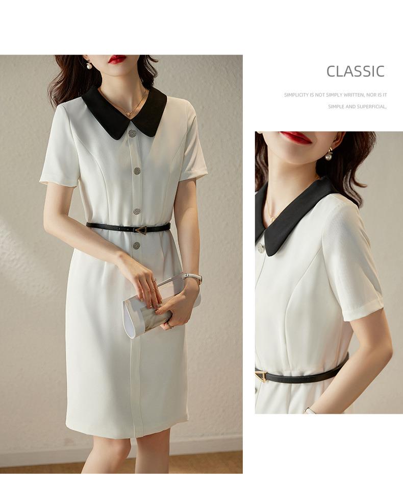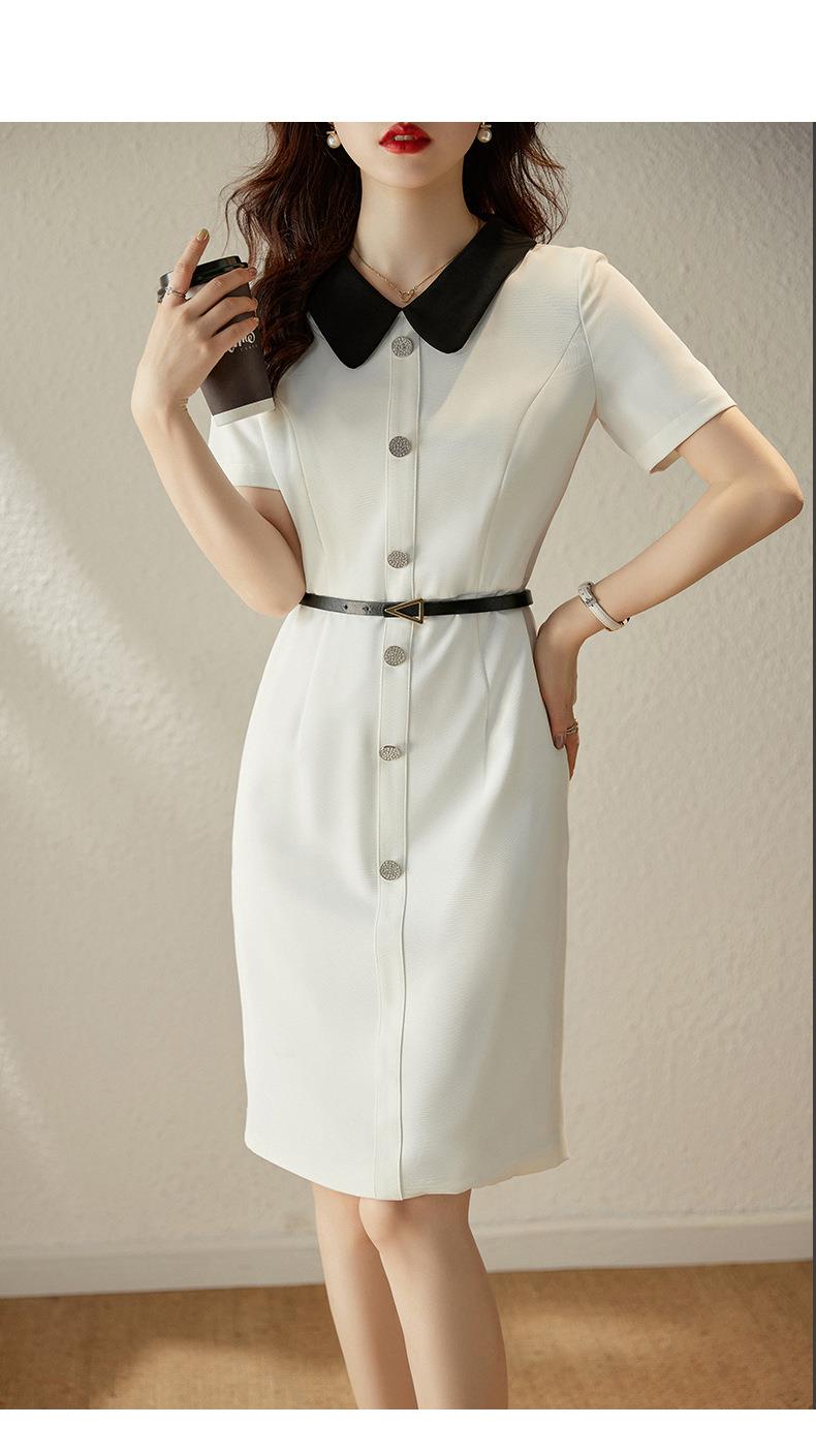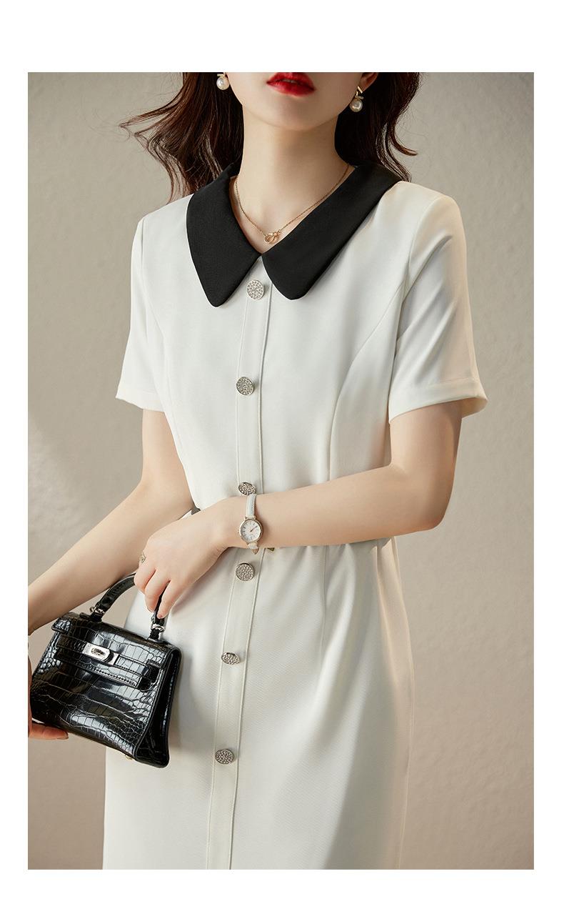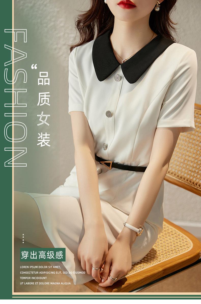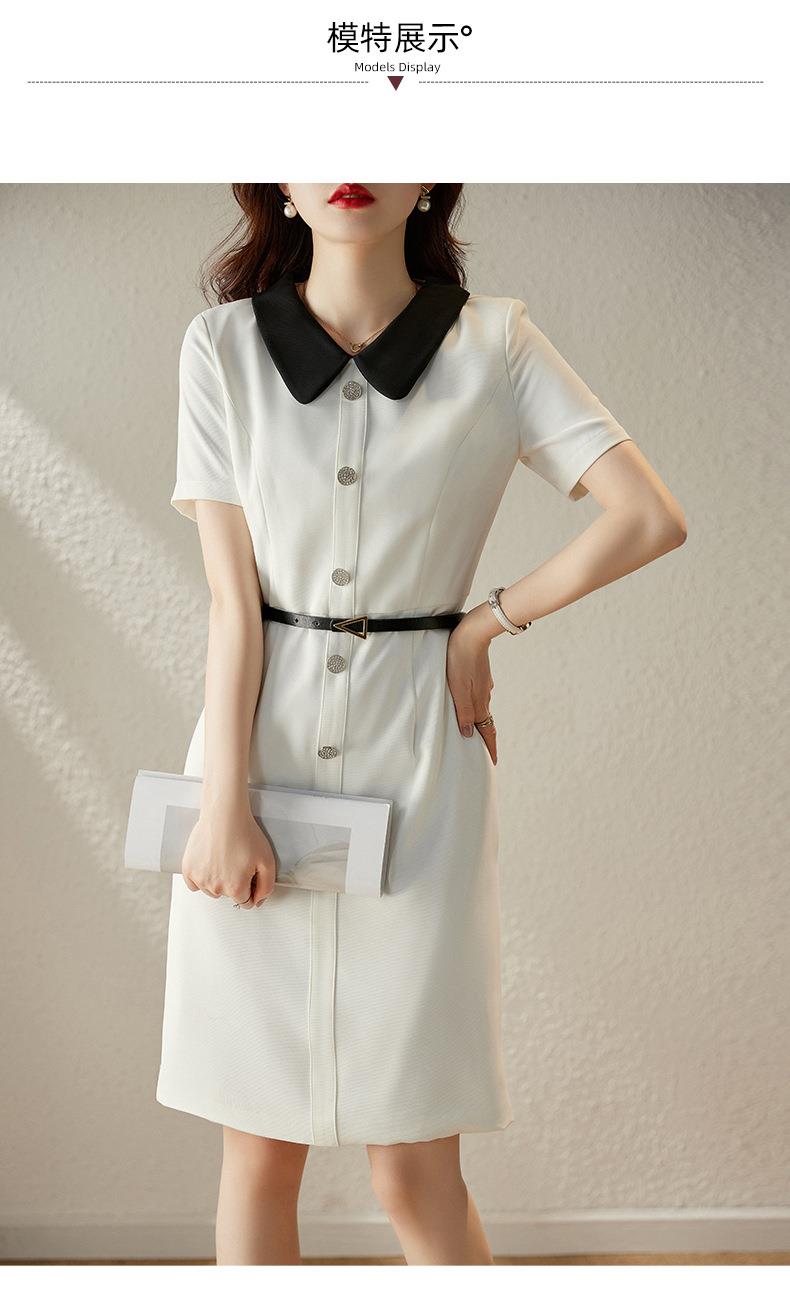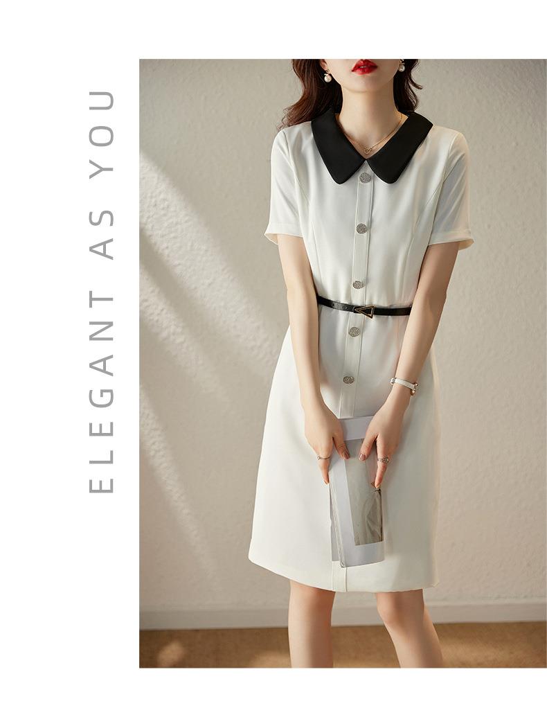 娜璐多 白色短袖连衣裙女2023夏季新款高级感温柔风名媛气质收腰通勤裙子