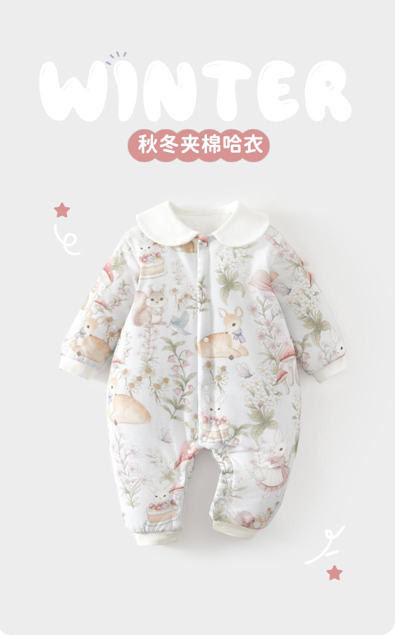 婴儿夹棉连体衣加厚宝宝秋冬季a类加棉爬爬服哈衣外出新生儿棉服