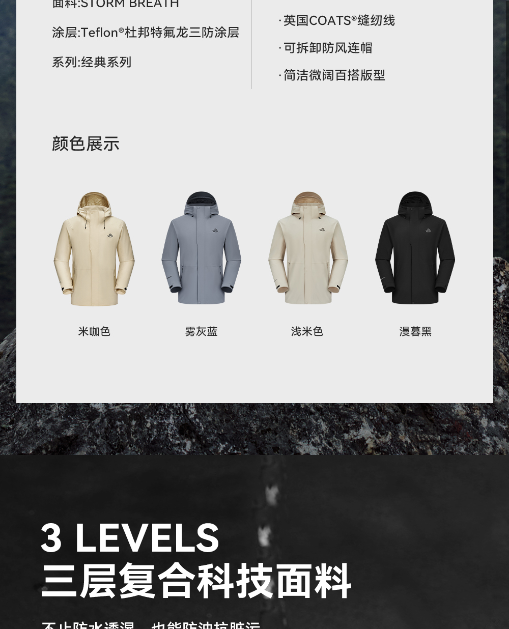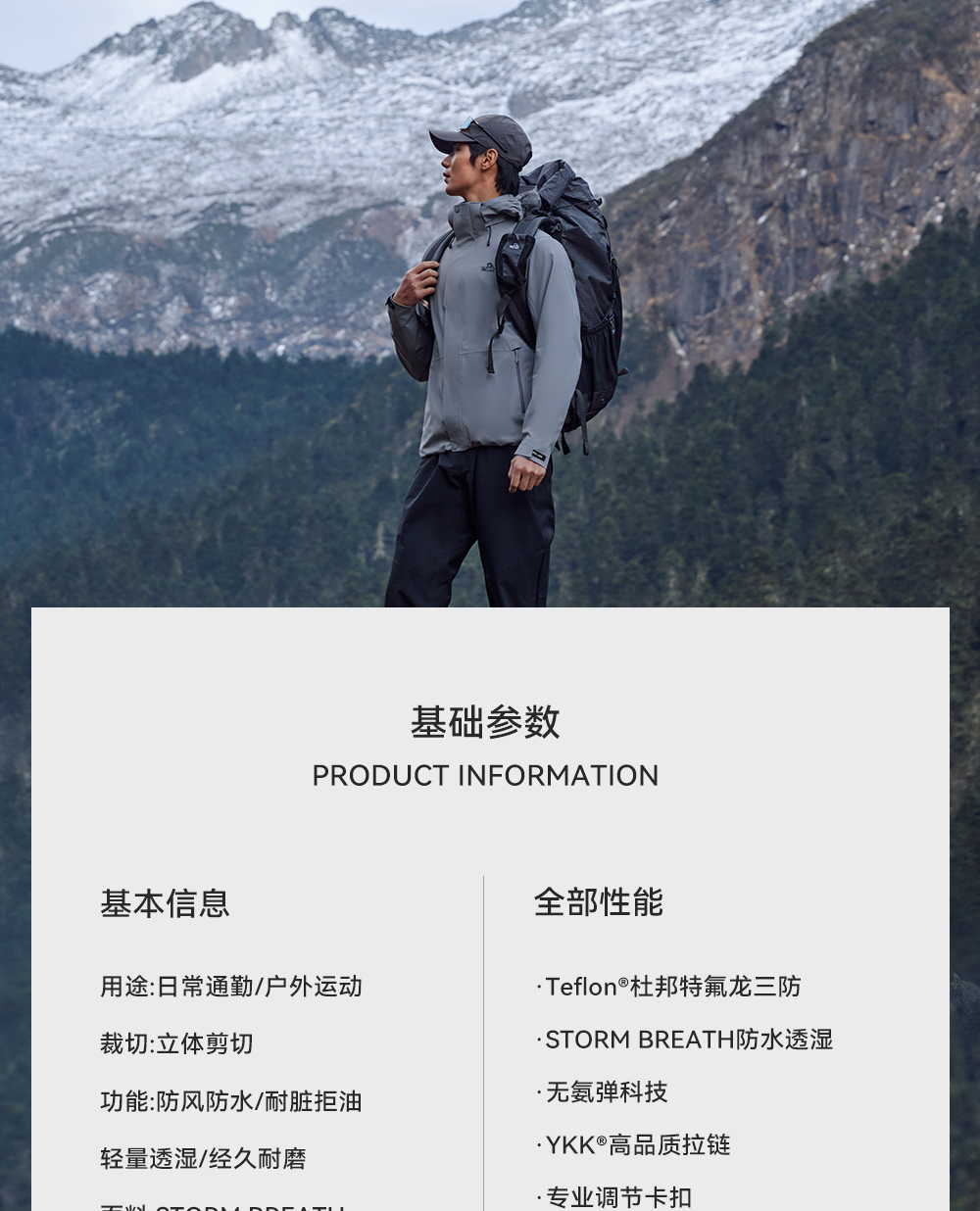 伯希和户外冲锋衣2025新款Teflon三防专业登山服轻量透气单层外套