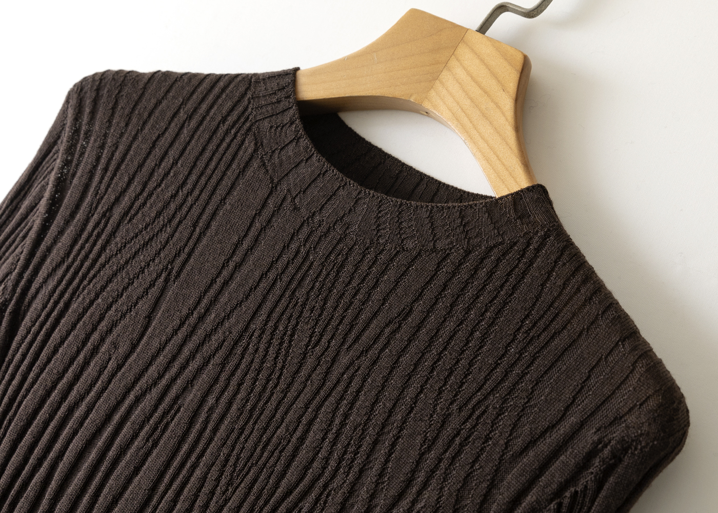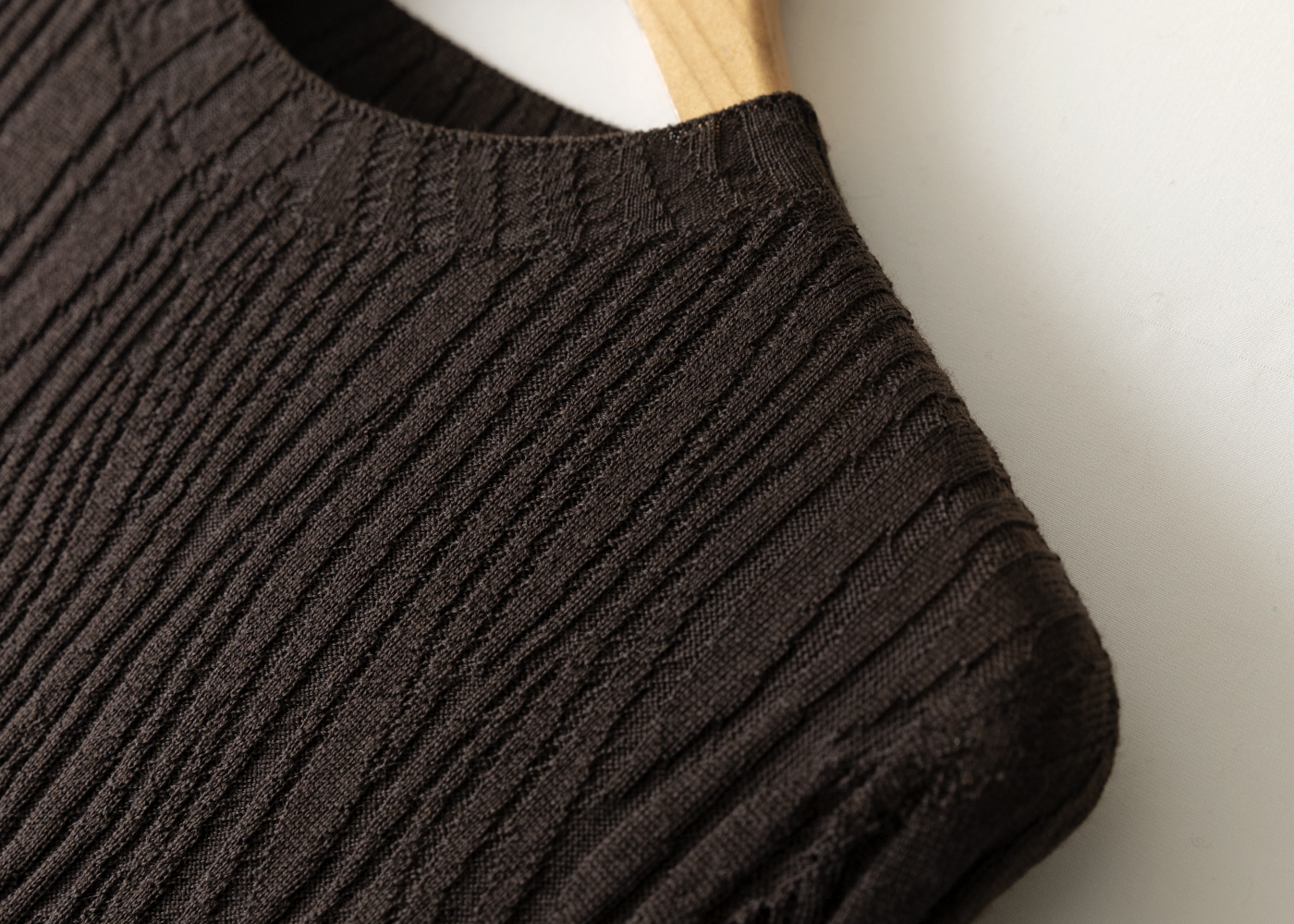 采用独特的顺纡皱纹理织法,每一道纹理都自然舒展,既有肌理感又不会显臃肿,走动间自带流动的高级感。