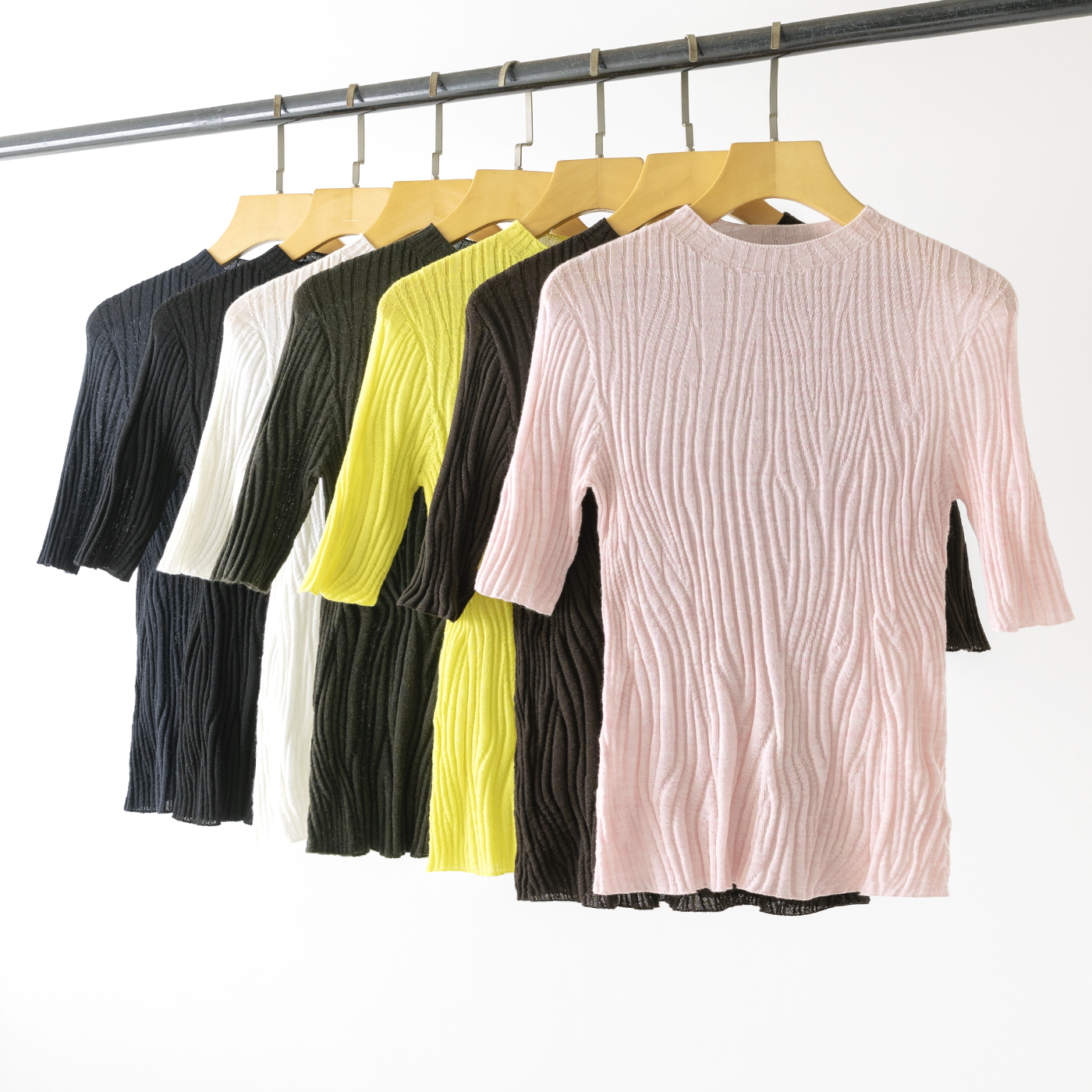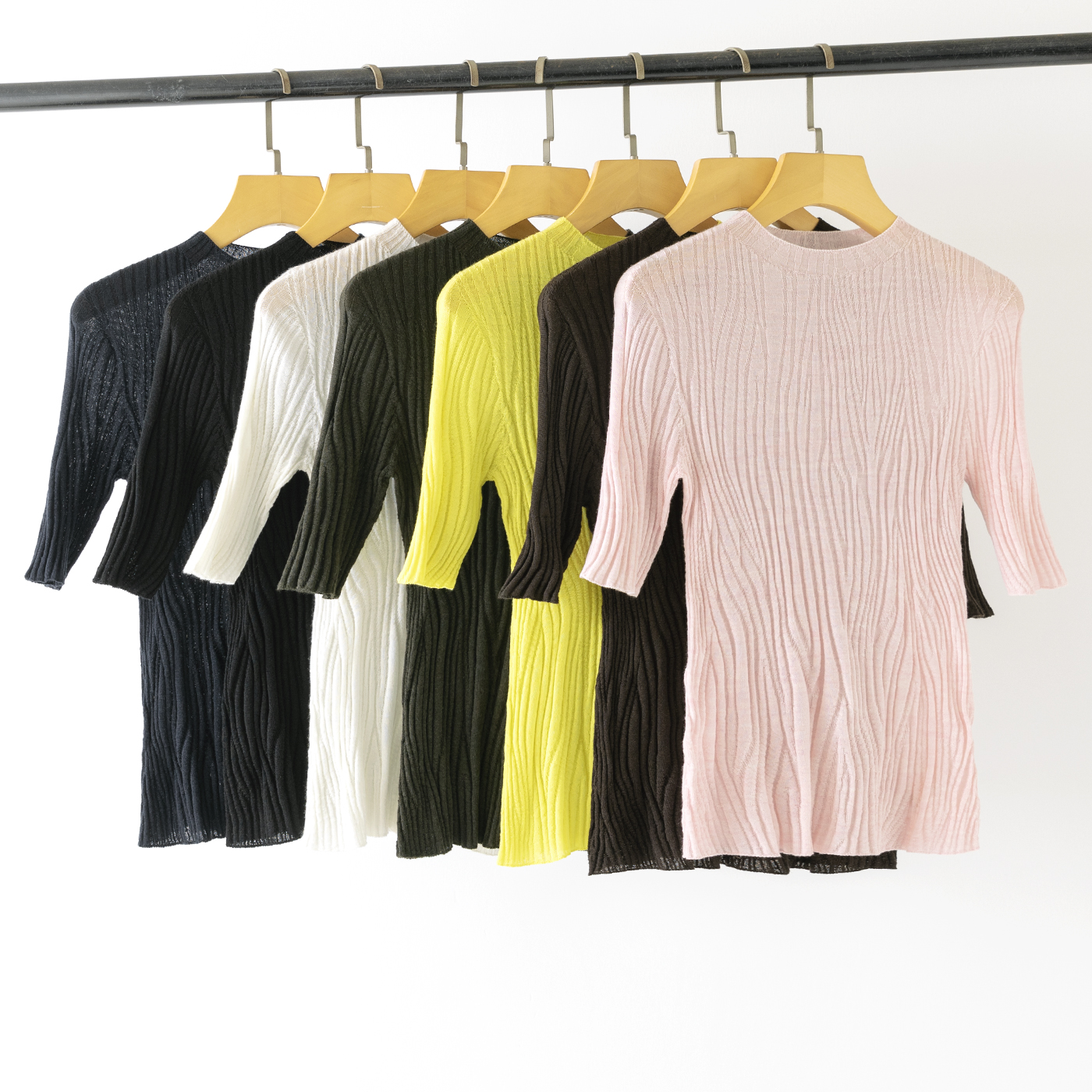 半高领+中袖的设计,既能修饰颈部线条,又能恰到好处地露出手臂线条,适配通勤、约会、休闲等多种场合。6色可选,轻松承包你整个春夏的穿搭灵感。