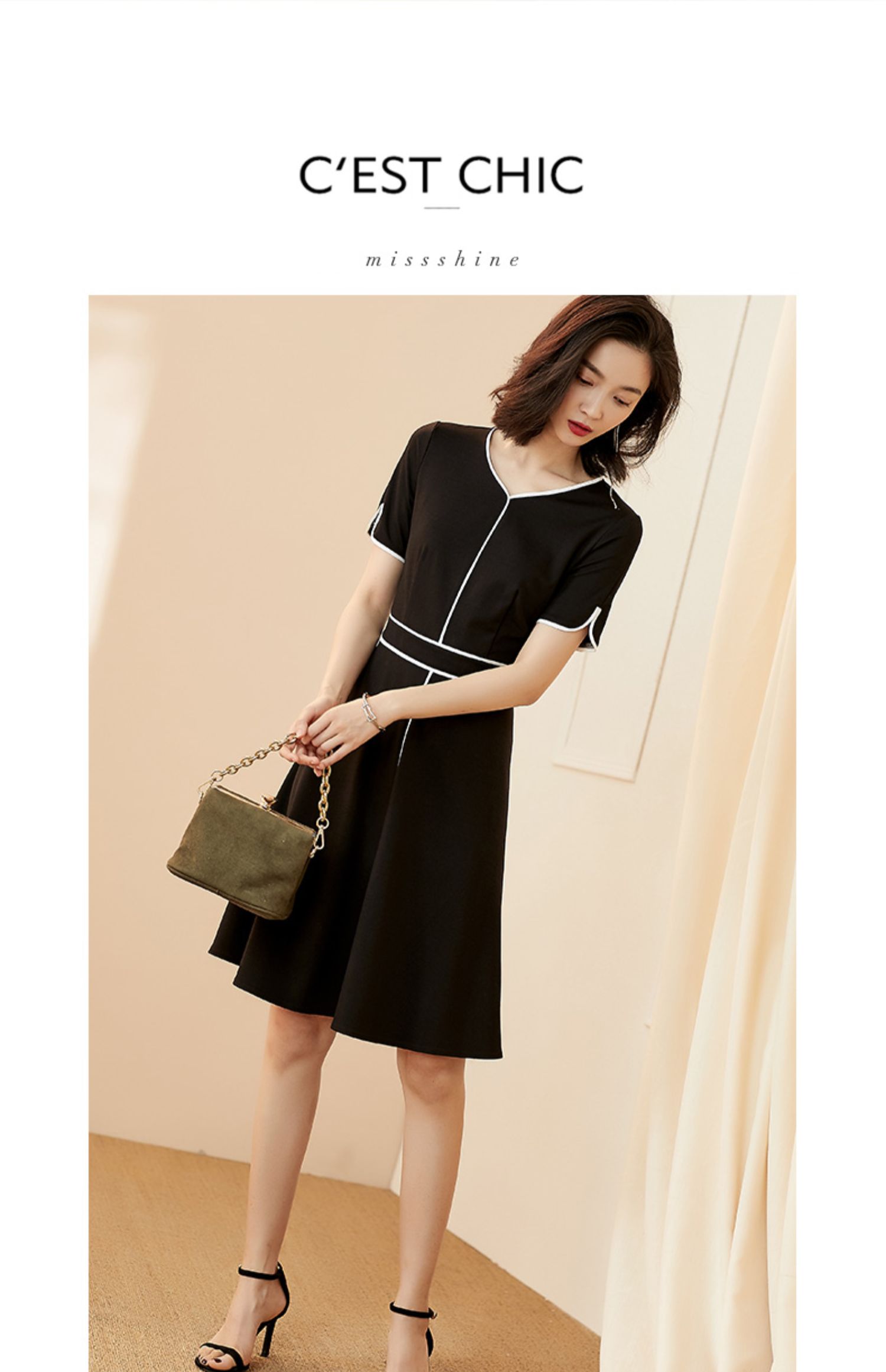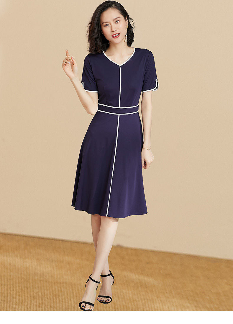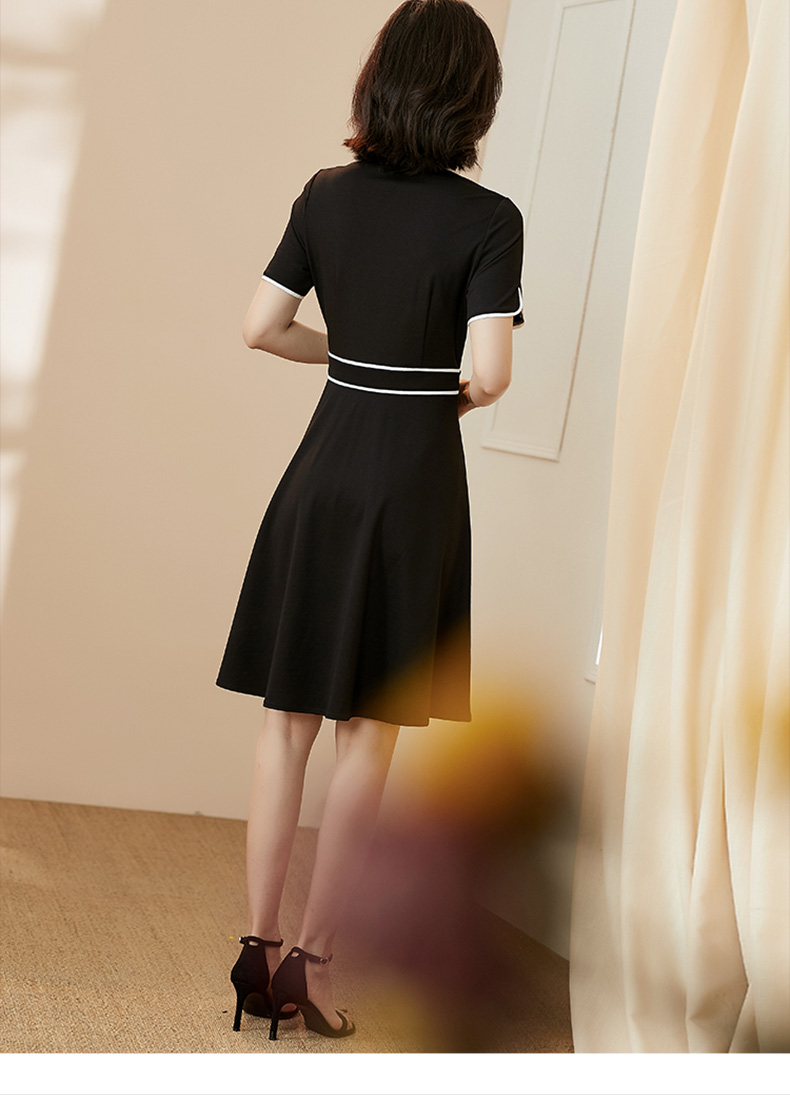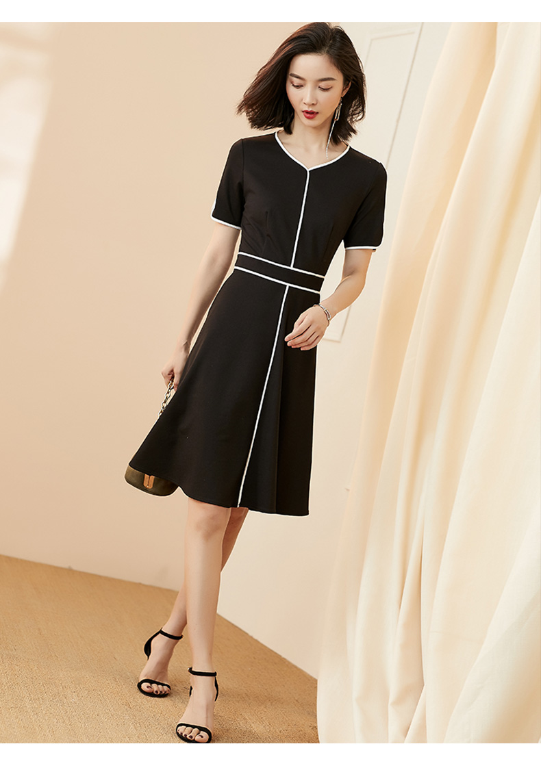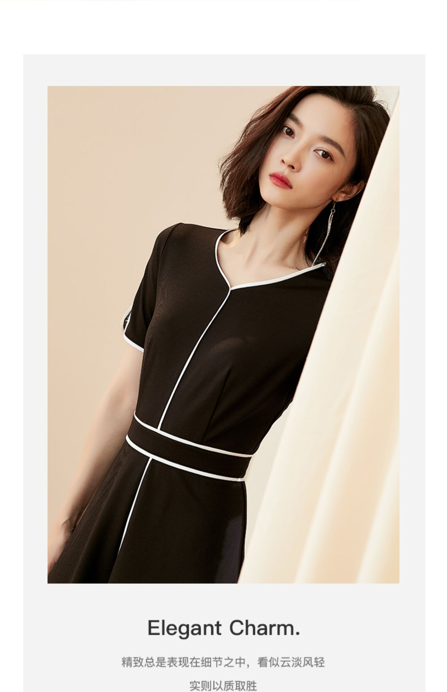 剩S/M 芳外夏季新款时尚休闲拼接撞色收腰显瘦针织V领连衣裙3198
