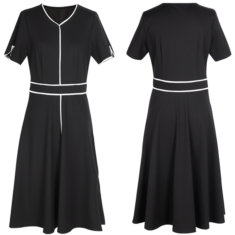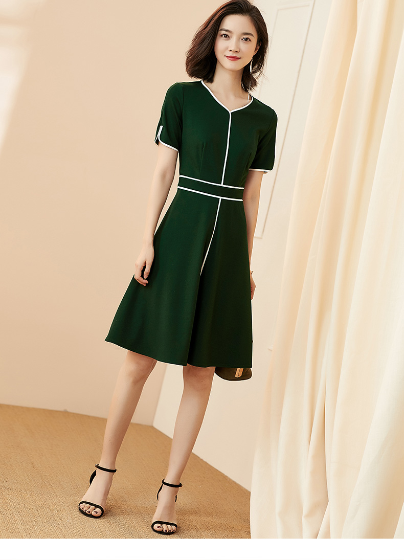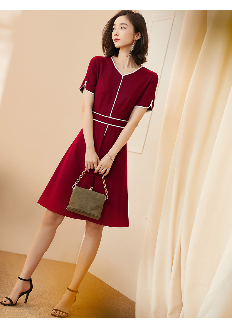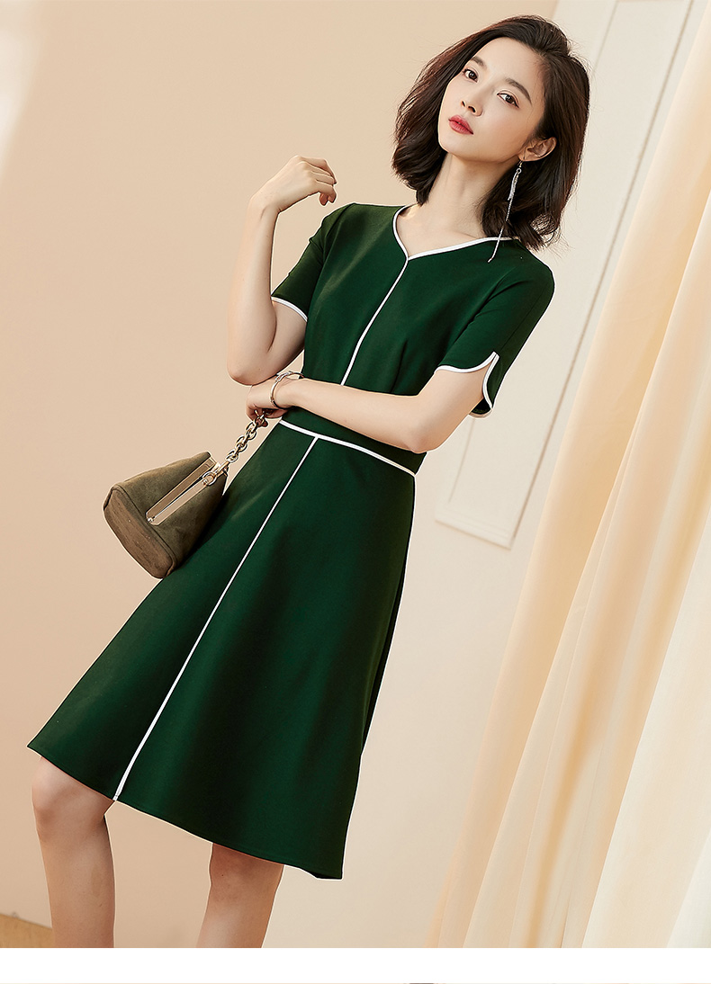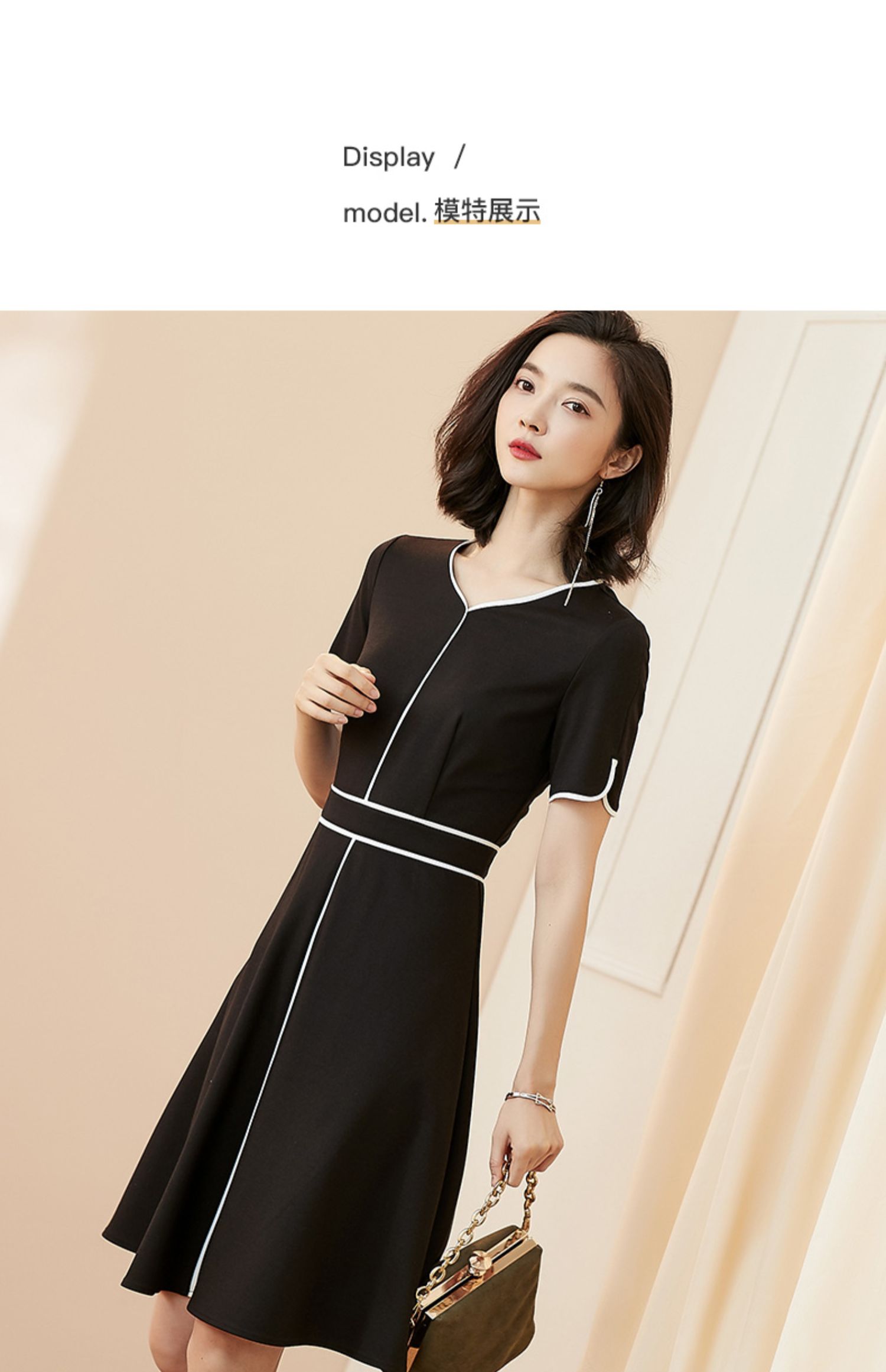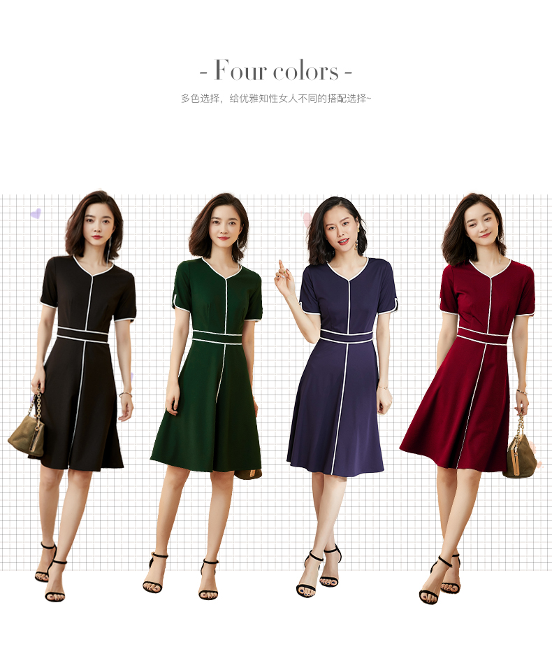 剩S/M 芳外夏季新款时尚休闲拼接撞色收腰显瘦针织V领连衣裙3198