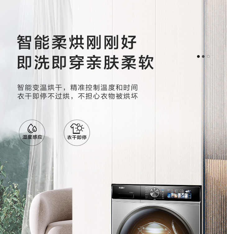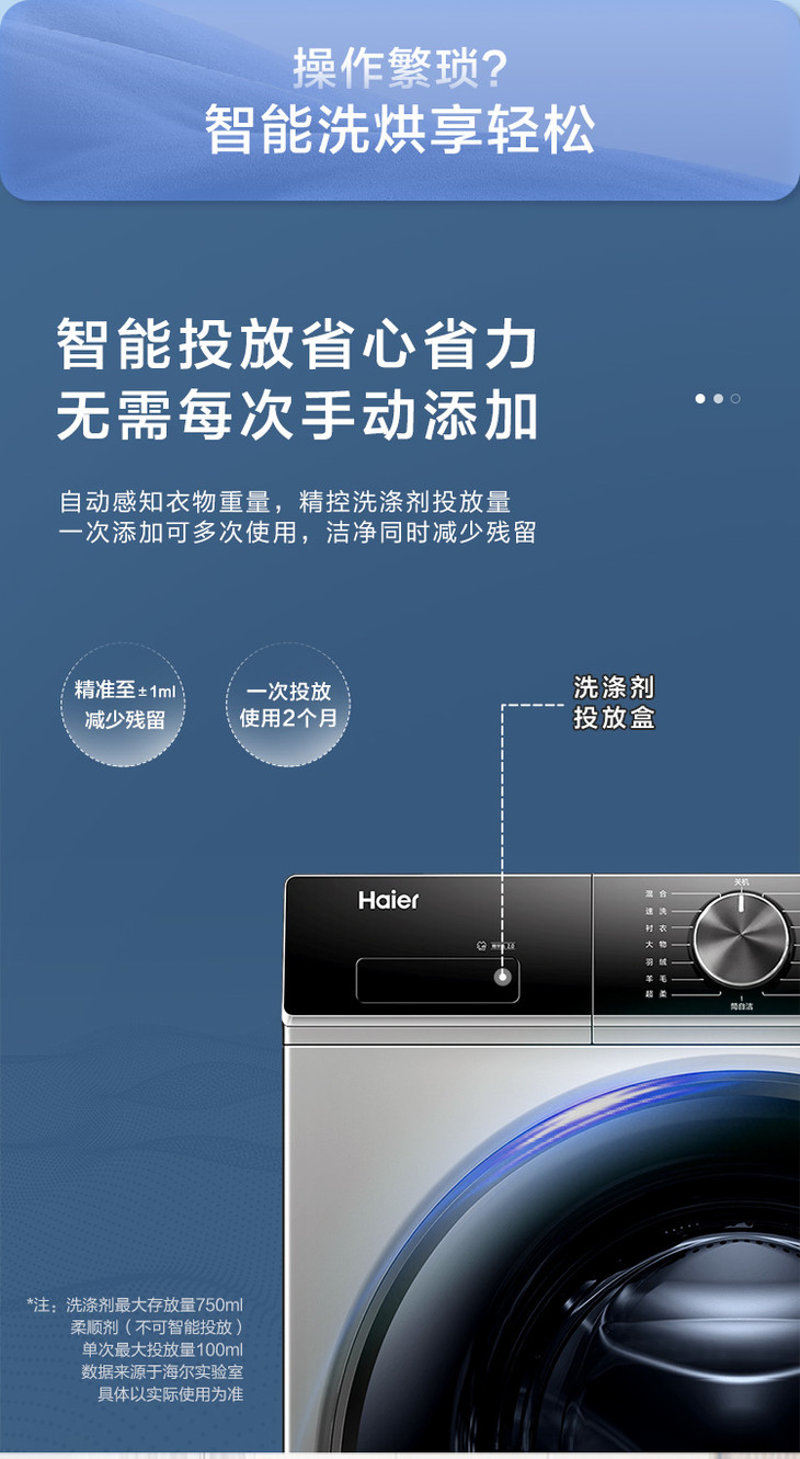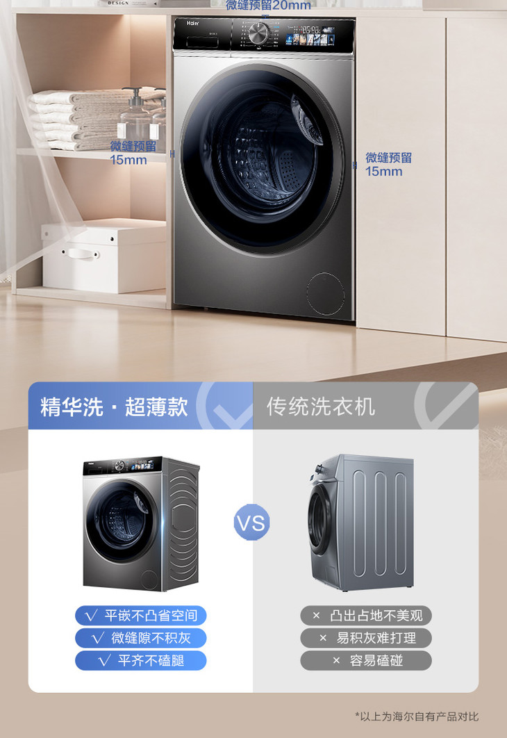 海尔(252055)10公斤大容量家用变频洗衣机超薄平嵌精华洗2.0巴氏除菌 XQG100-HBD12516