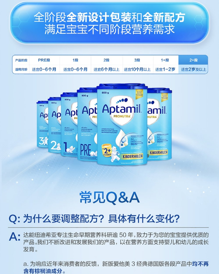 HNMG德国爱他美Aptamil 2+ 800g(新包装) 日期不断更新