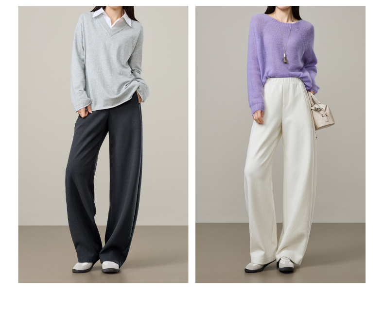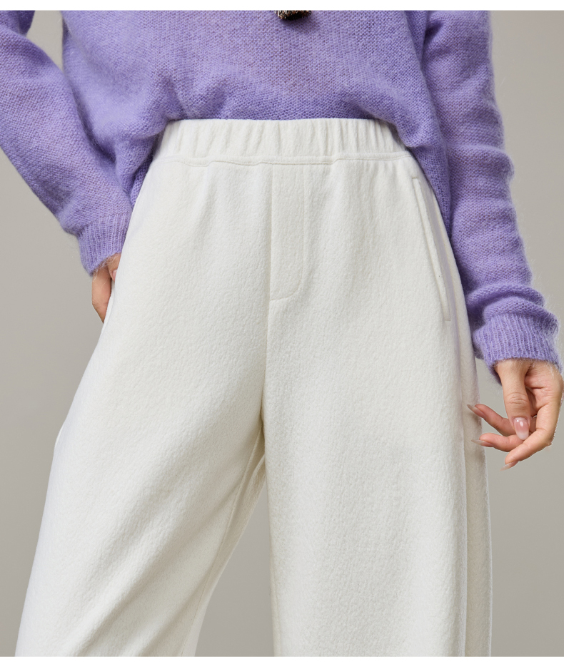 【春新品!云朵泡芙裤】逸阳春季蚕丝羊毛显瘦高腰窄版香蕉休闲裤8094