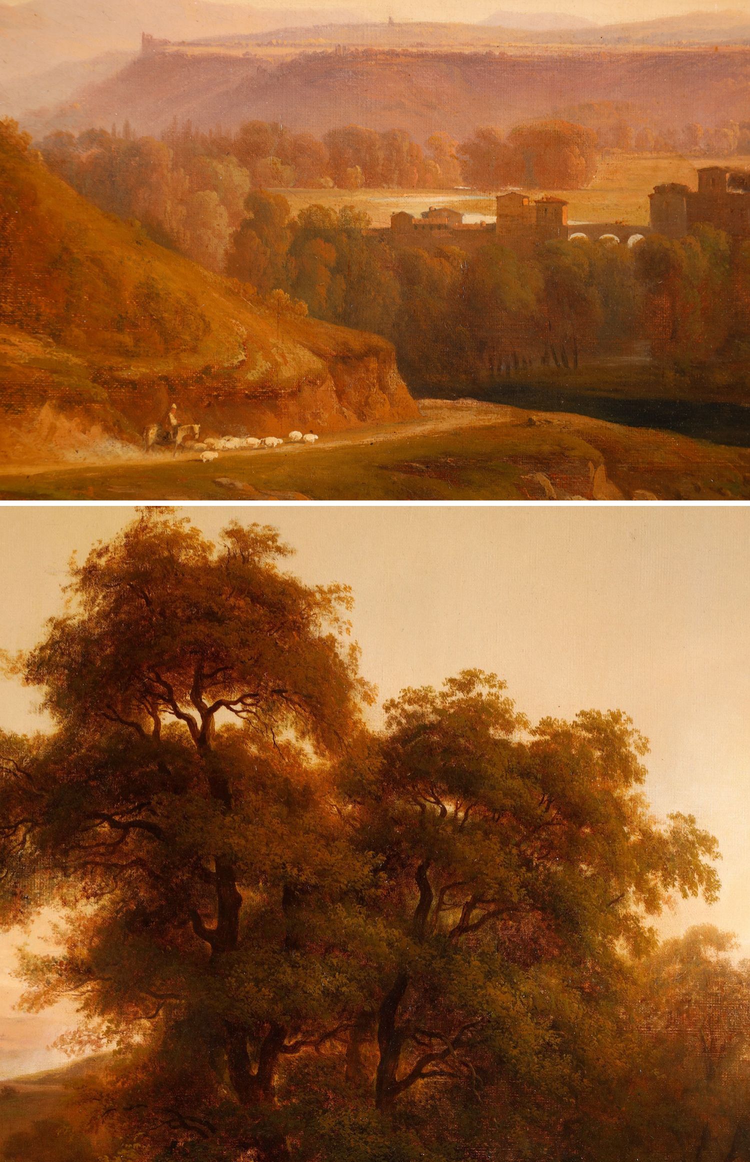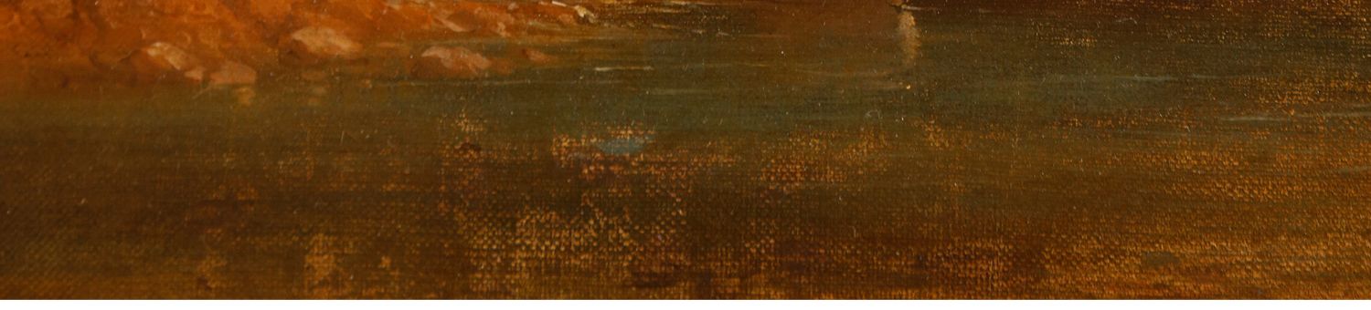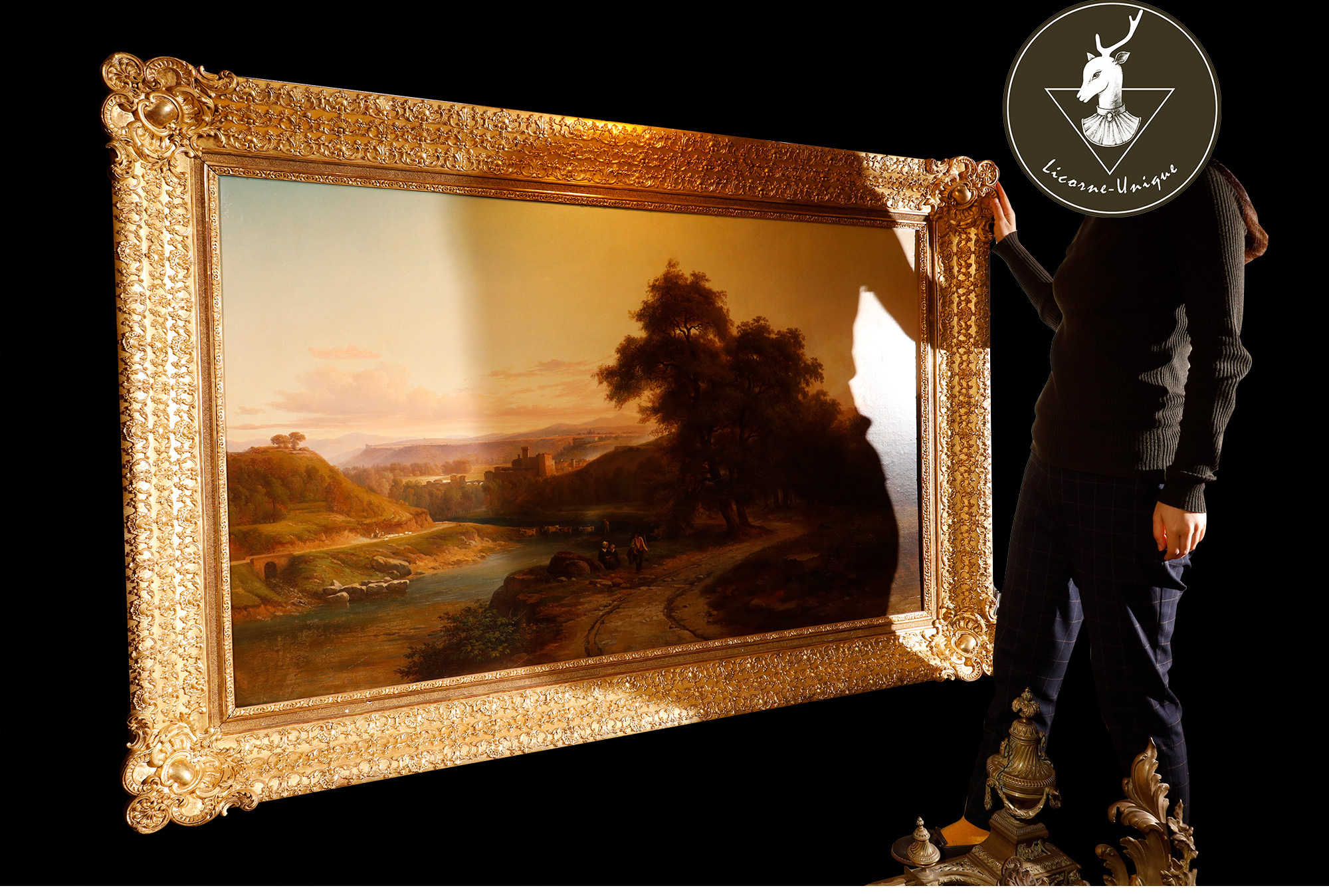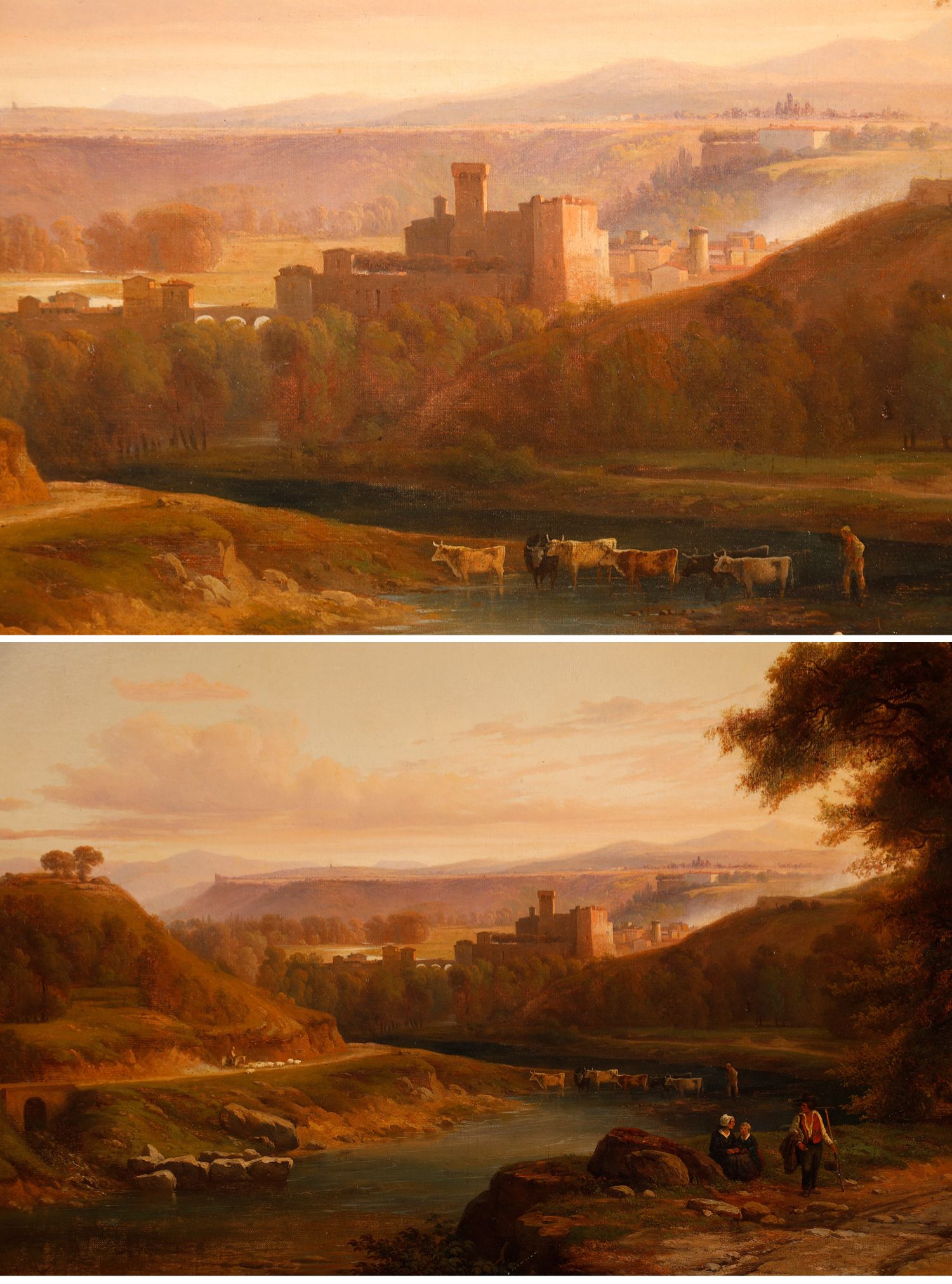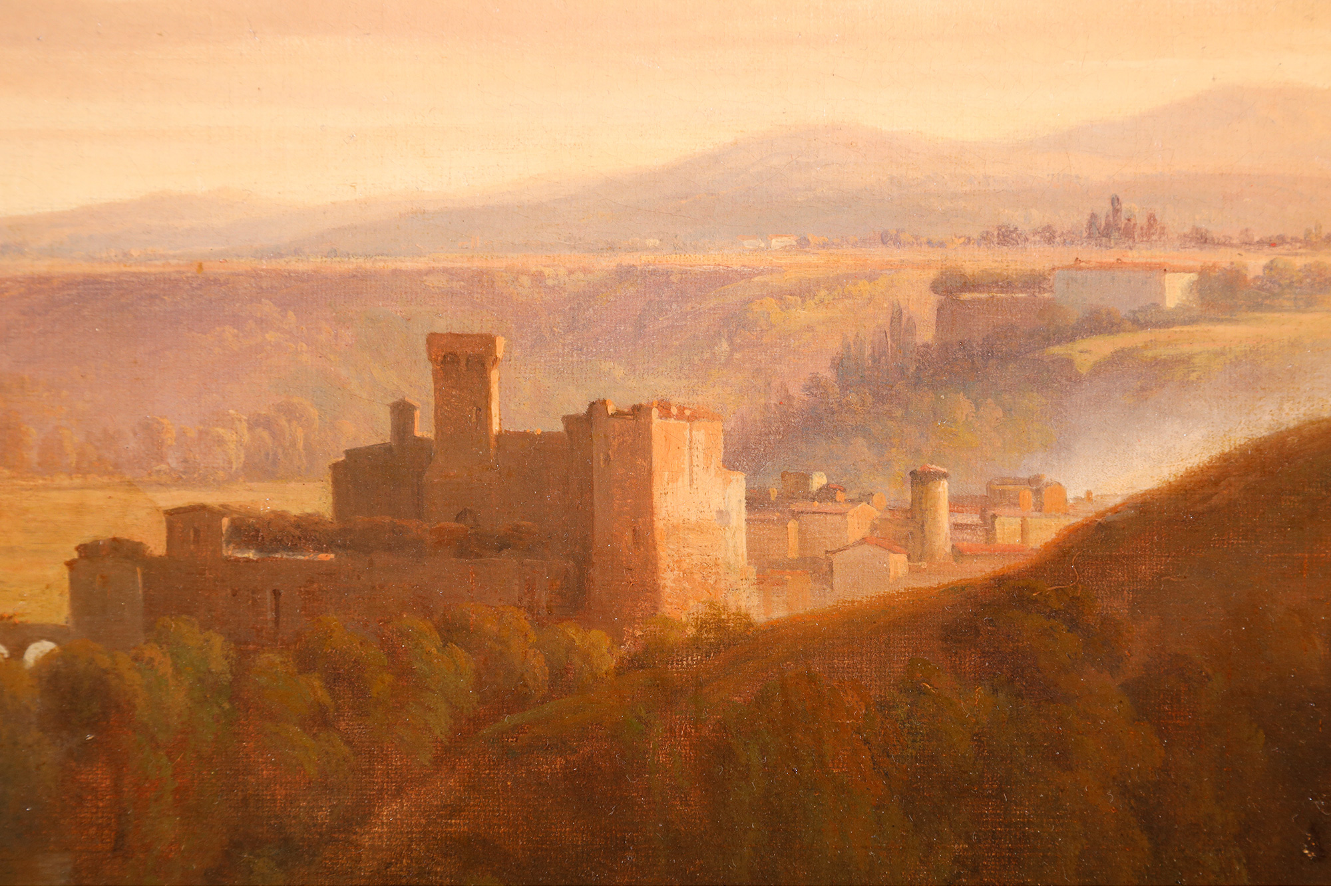 独角鹿西洋古董法国画家Fonville签名风景布面油画《意大利风景》
