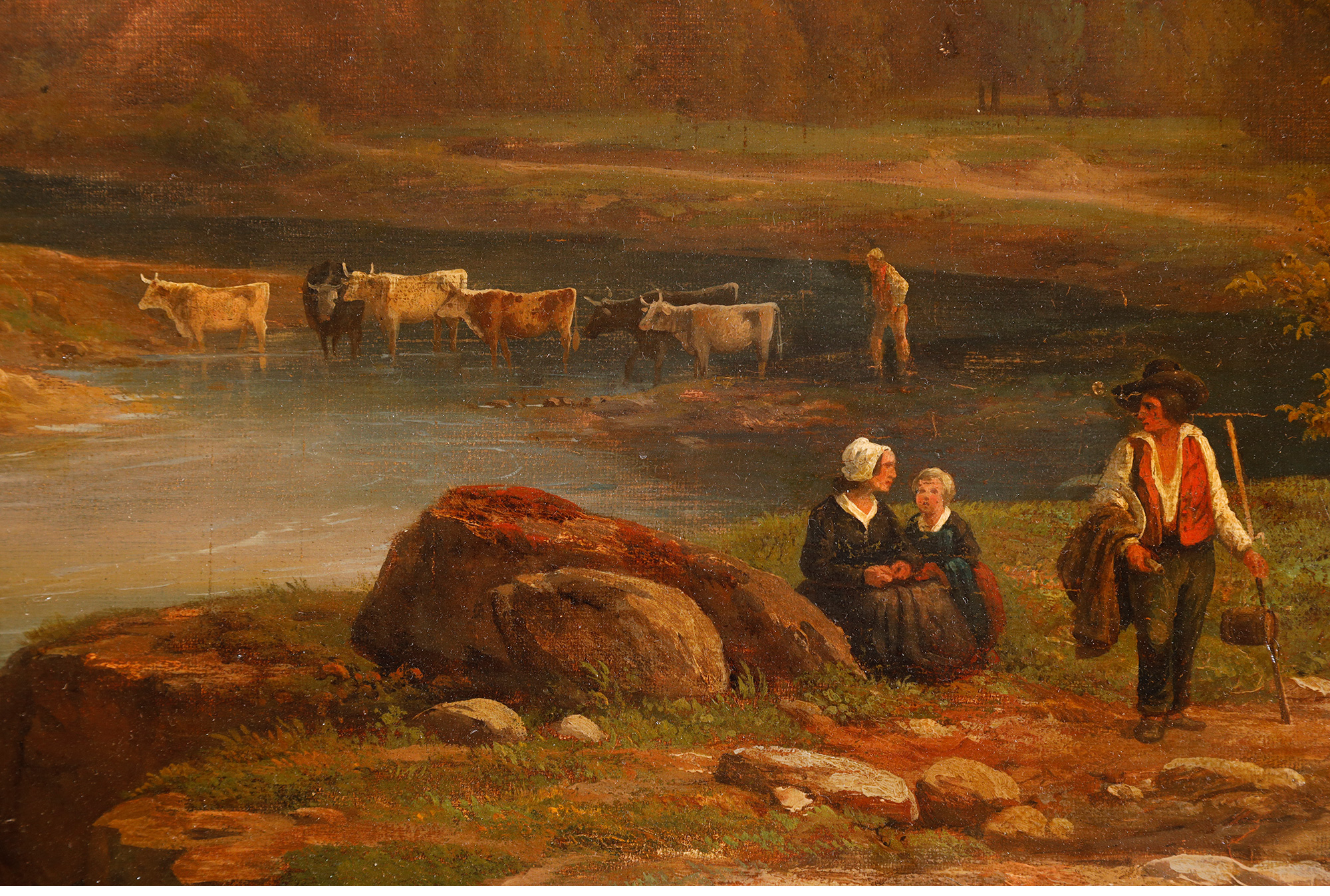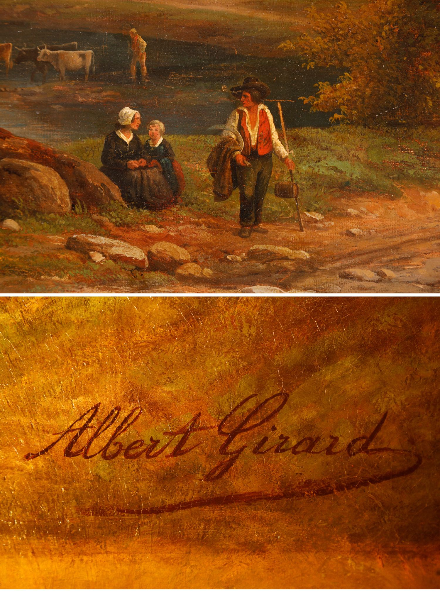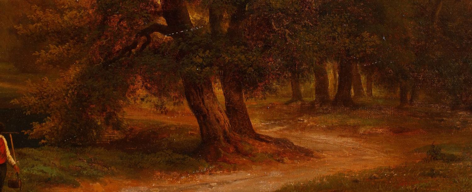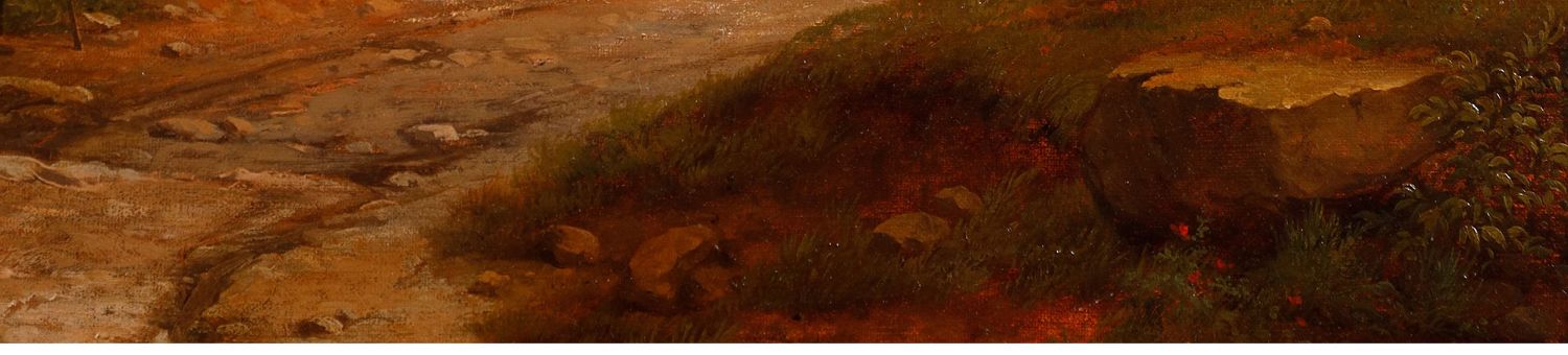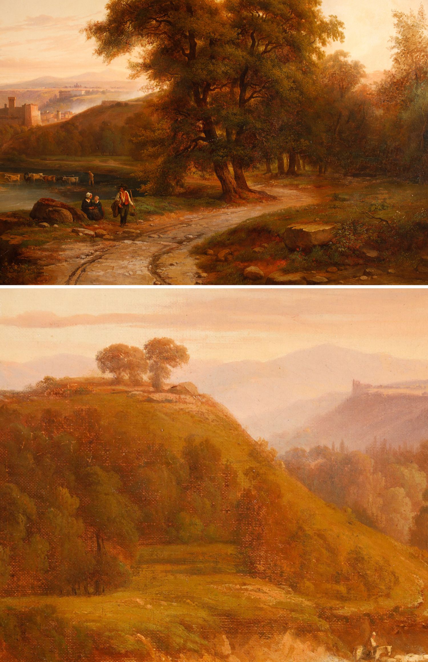 独角鹿西洋古董法国画家Fonville签名风景布面油画《意大利风景》