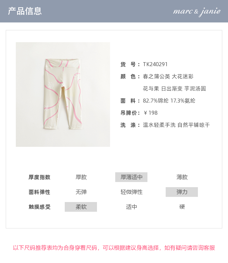 马克珍妮女童弹力运动打底瑜伽裤儿童裤子2024年春装新款240291