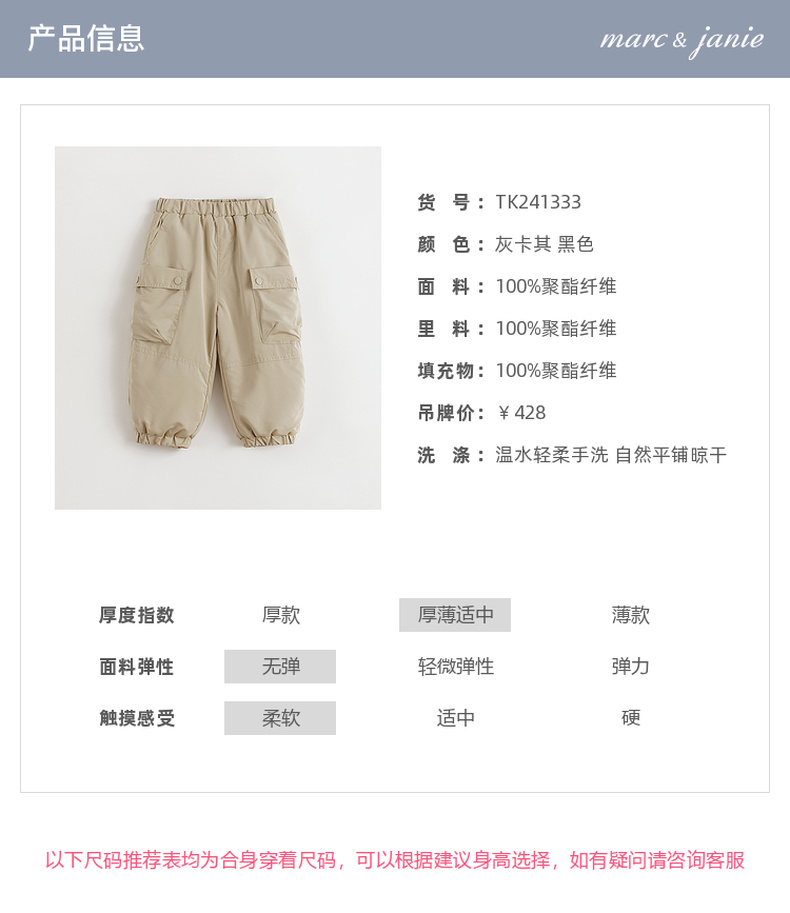 【加绒夹棉】马克珍妮男童山系户外工装裤儿童裤子冬装新款241333