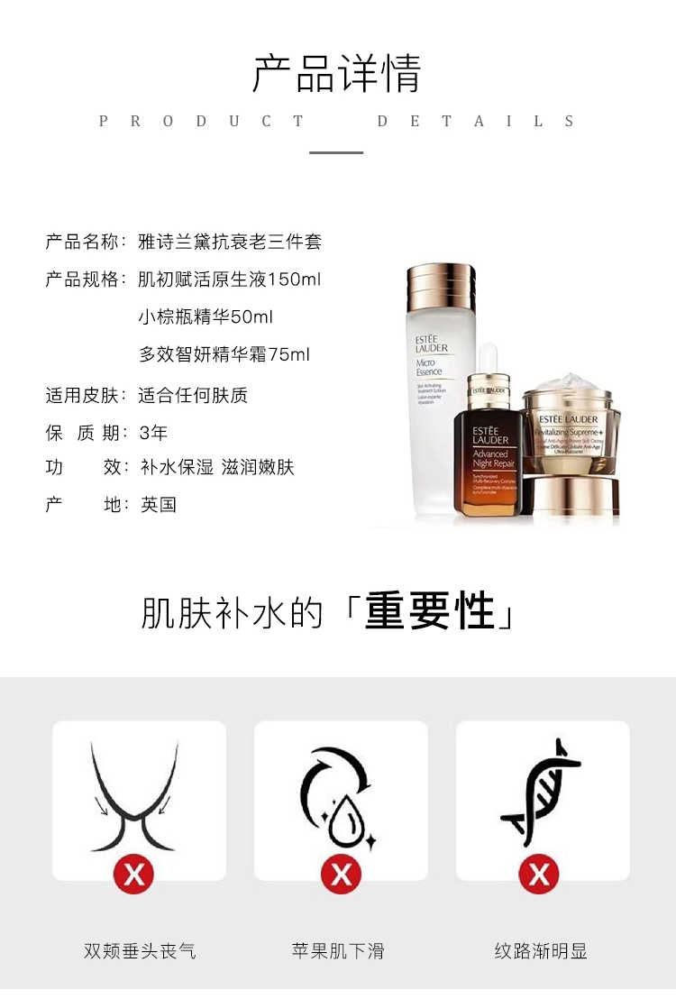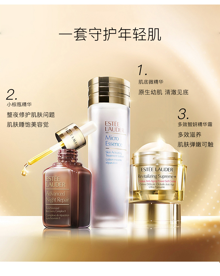 雅诗兰黛护肤套装小棕瓶精华+原生液+胶原霜 秋季补水保湿 24年新版