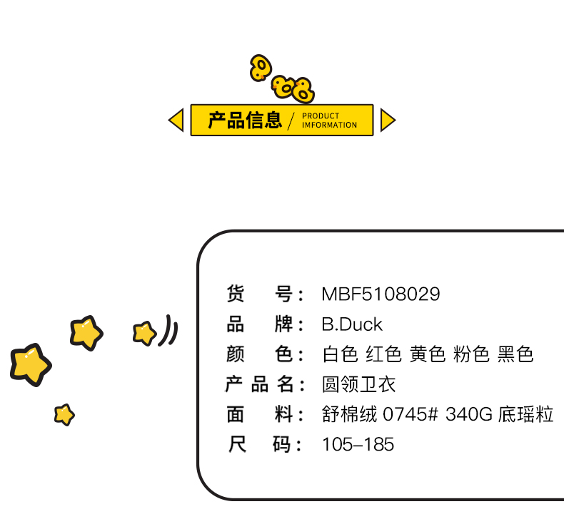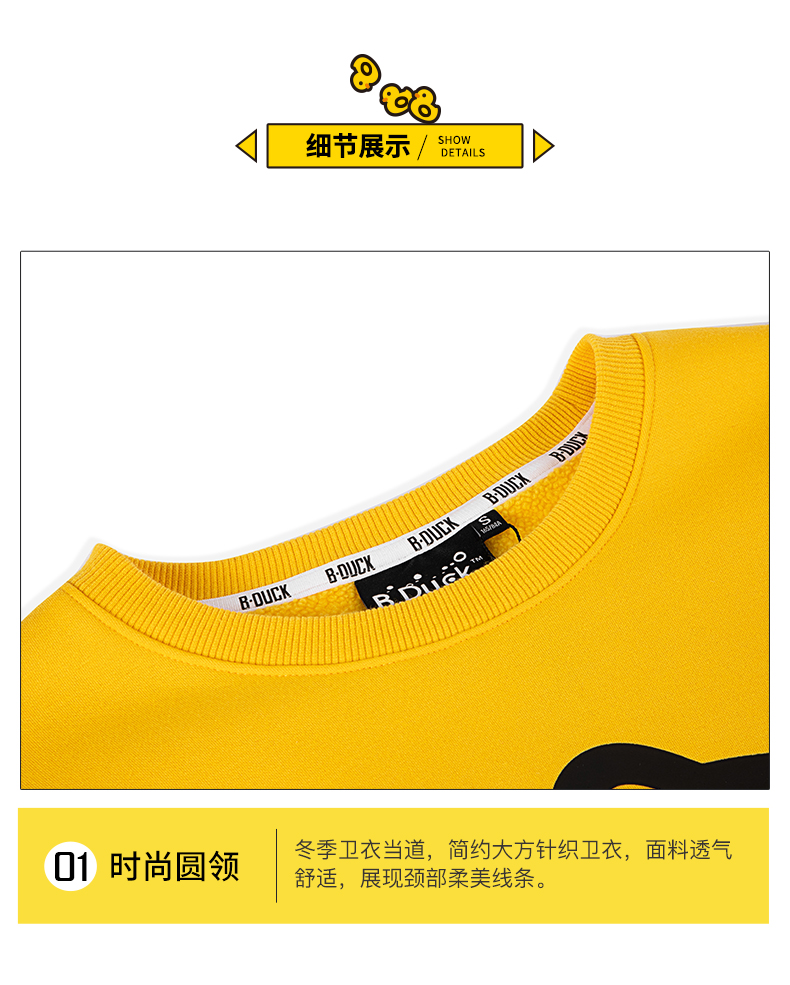 B.DUCK小黄鸭童装冬季圆领卫衣105-185 MBF5108029A