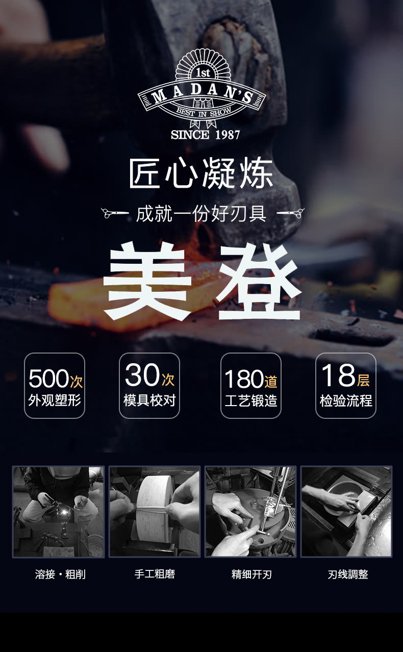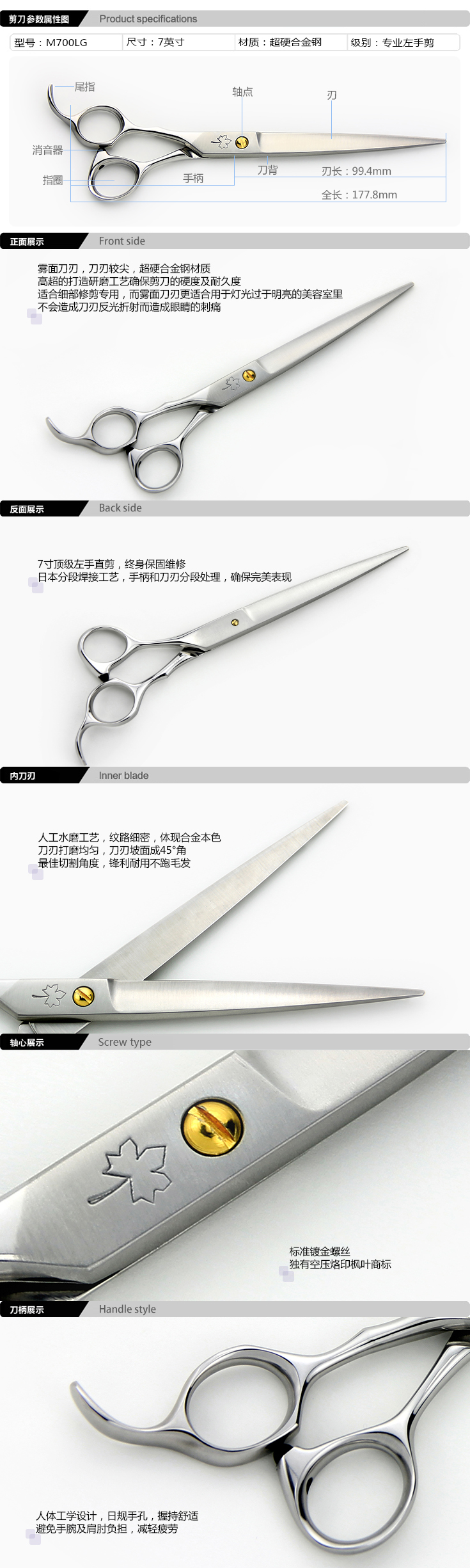 MADAN美登专业宠物美容剪刀M700LG日本纯手工锻造 7寸左手直剪