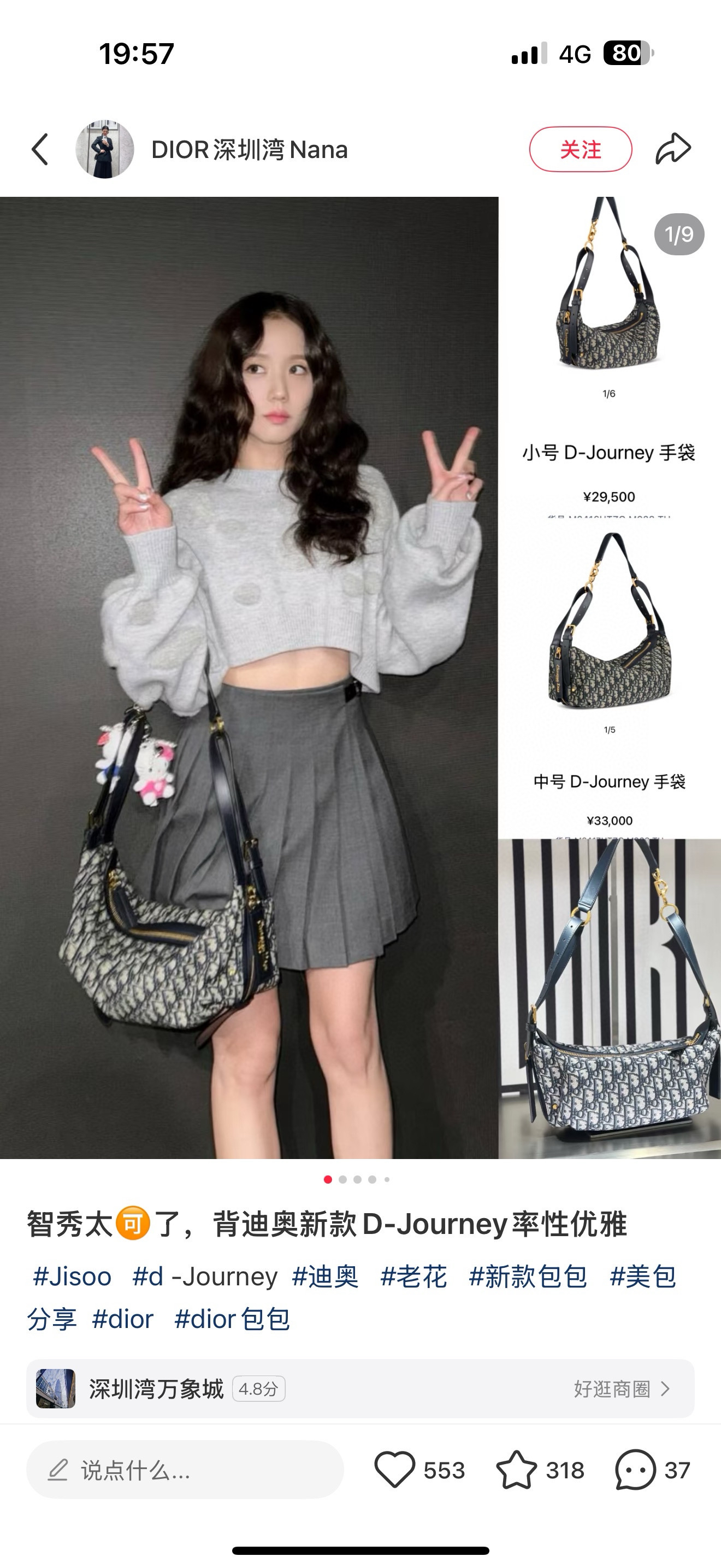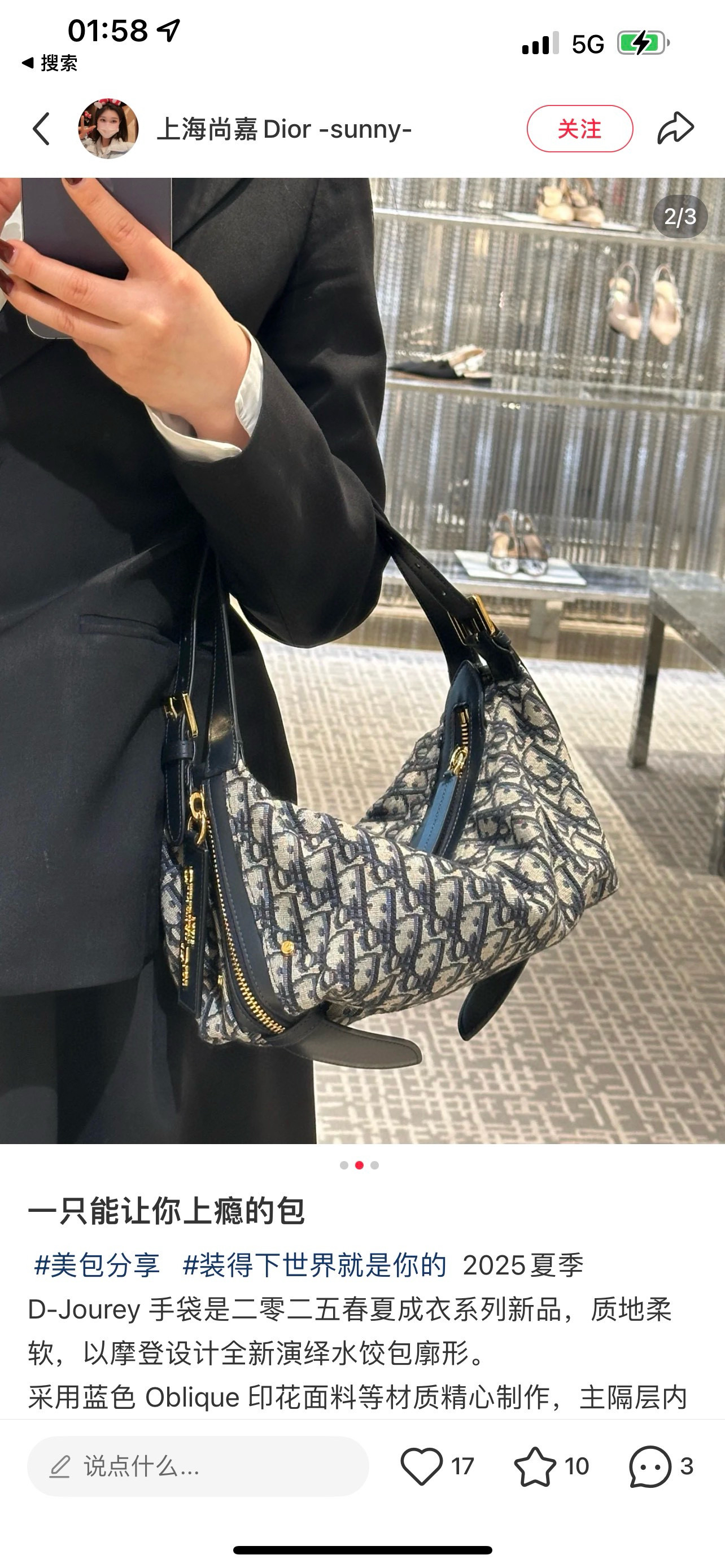 看柜姐上身,有点像🐴家lindy,手拎、单肩背都可以,斜挎真的很酷!