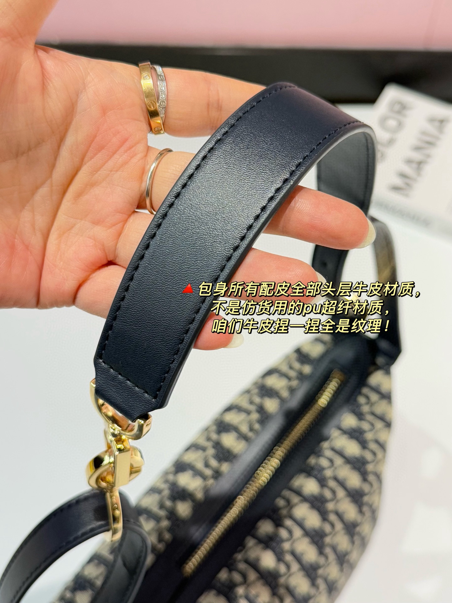 🔺三节肩带设计,自由切换模式,包身所有配皮全部头层牛皮材质,不是仿货用的pu超纤材质,咱们牛皮捏一捏全是纹理!~