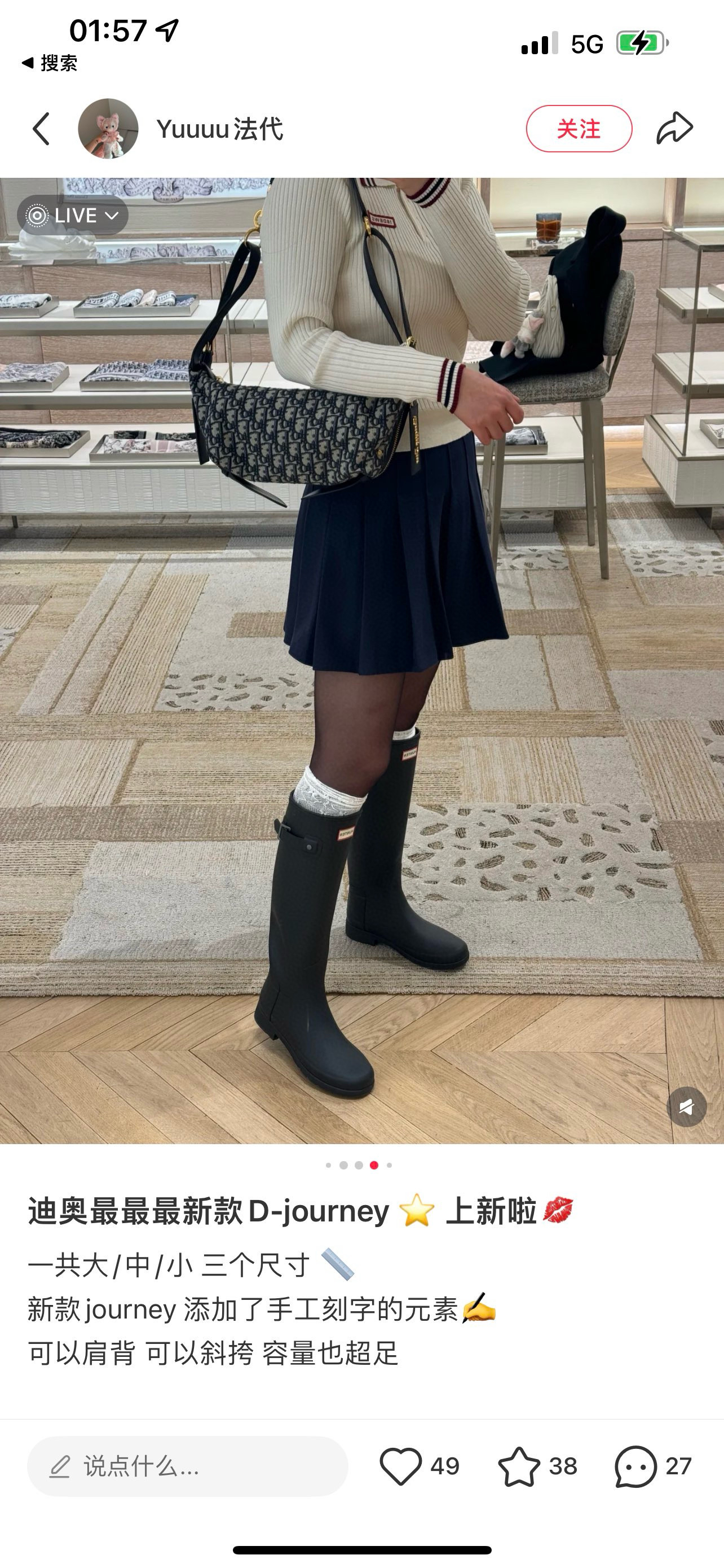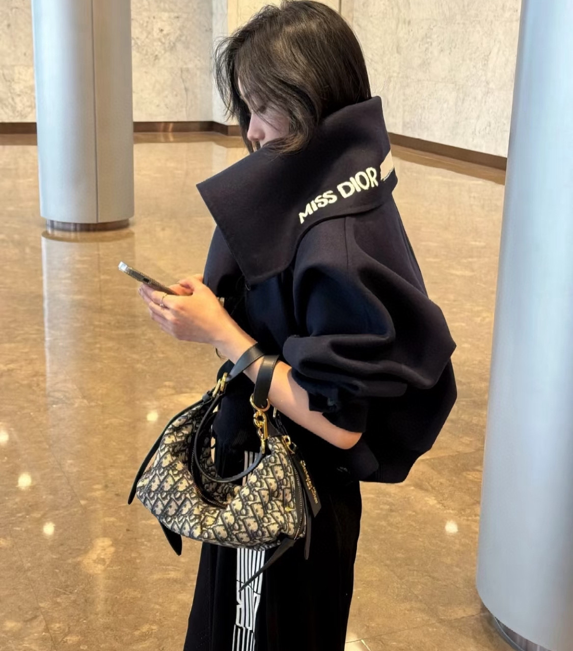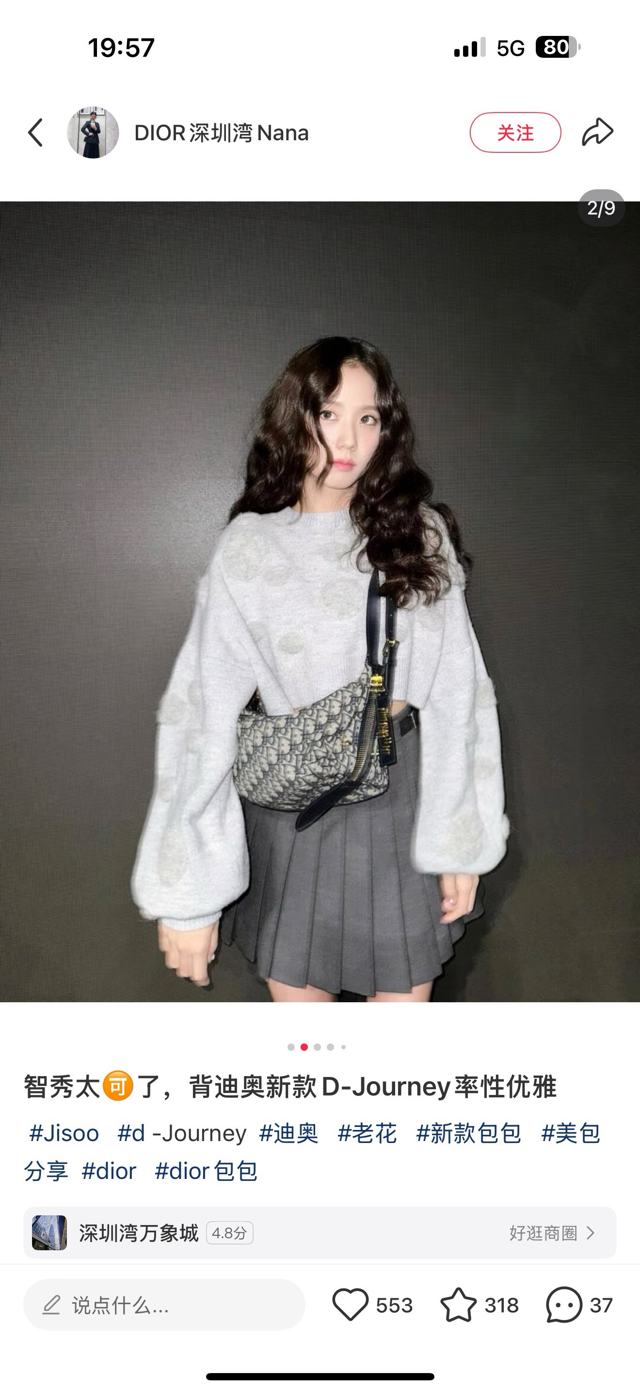 💕周也/王玉雯同款,背上Dior D-Journey单肩包,为整个穿搭注入了一丝高级与贵气,简约的包型搭配标志性的金属元素,质感满满,不管是日常出街还是正式场合都很适配。~