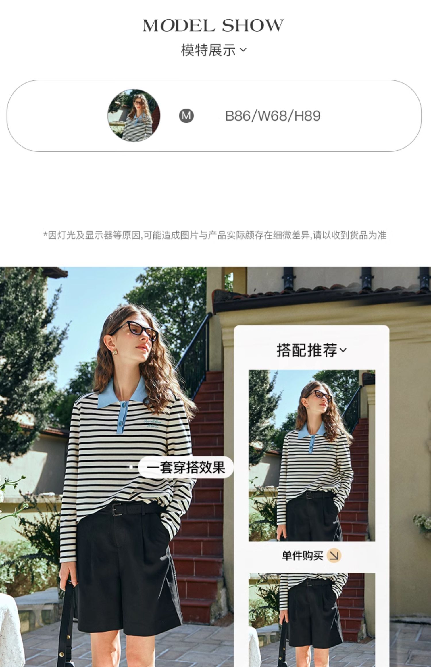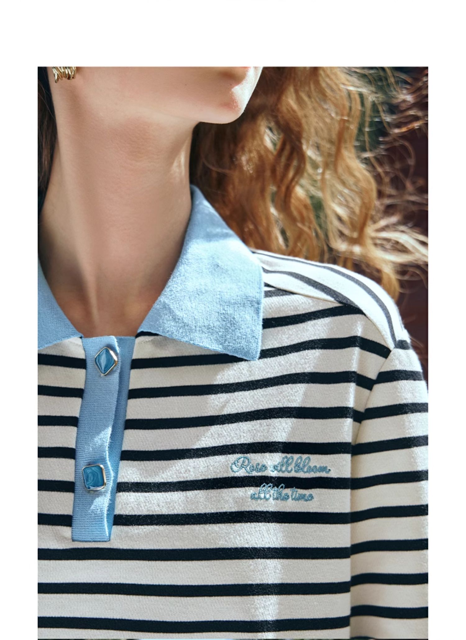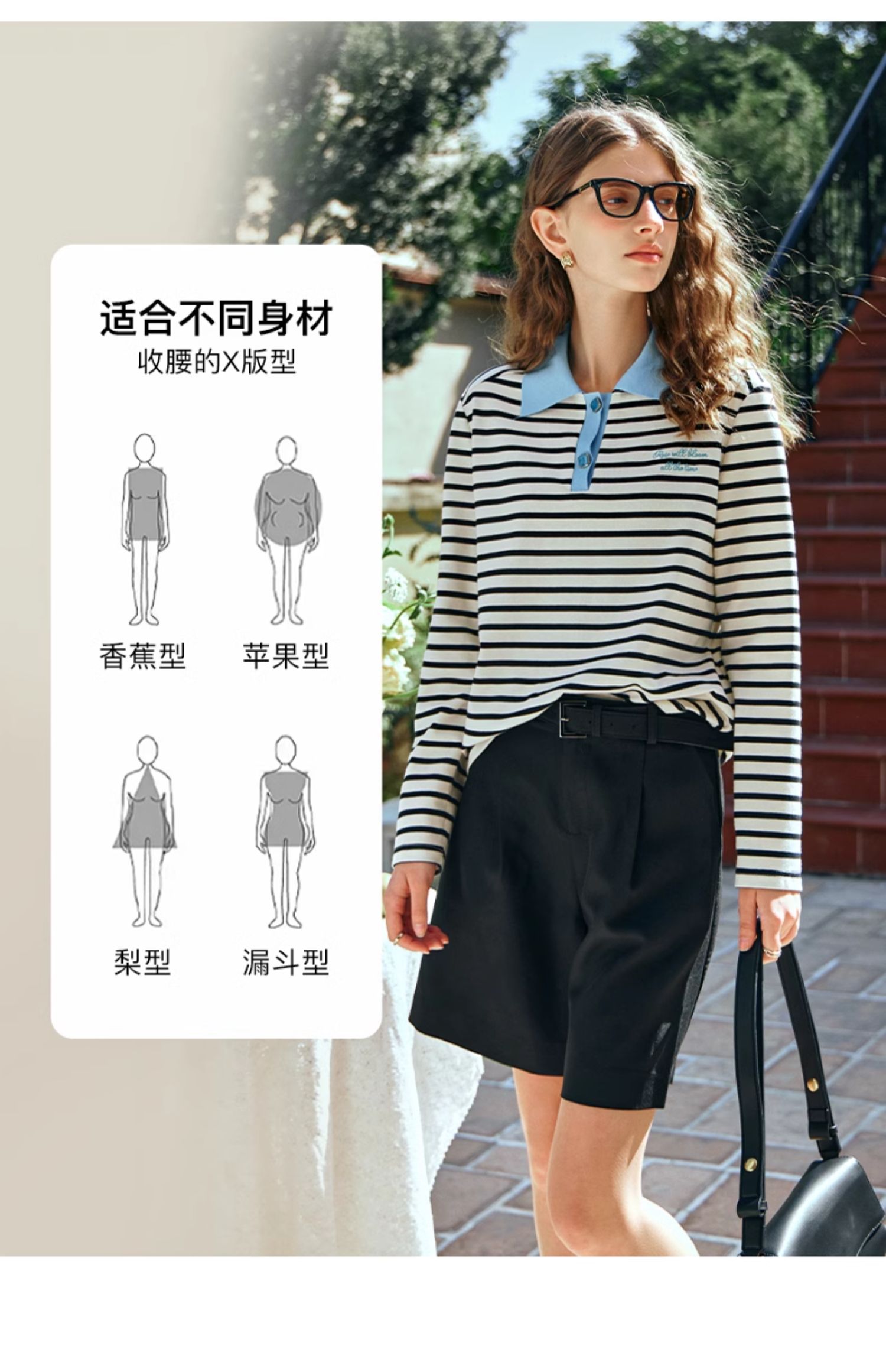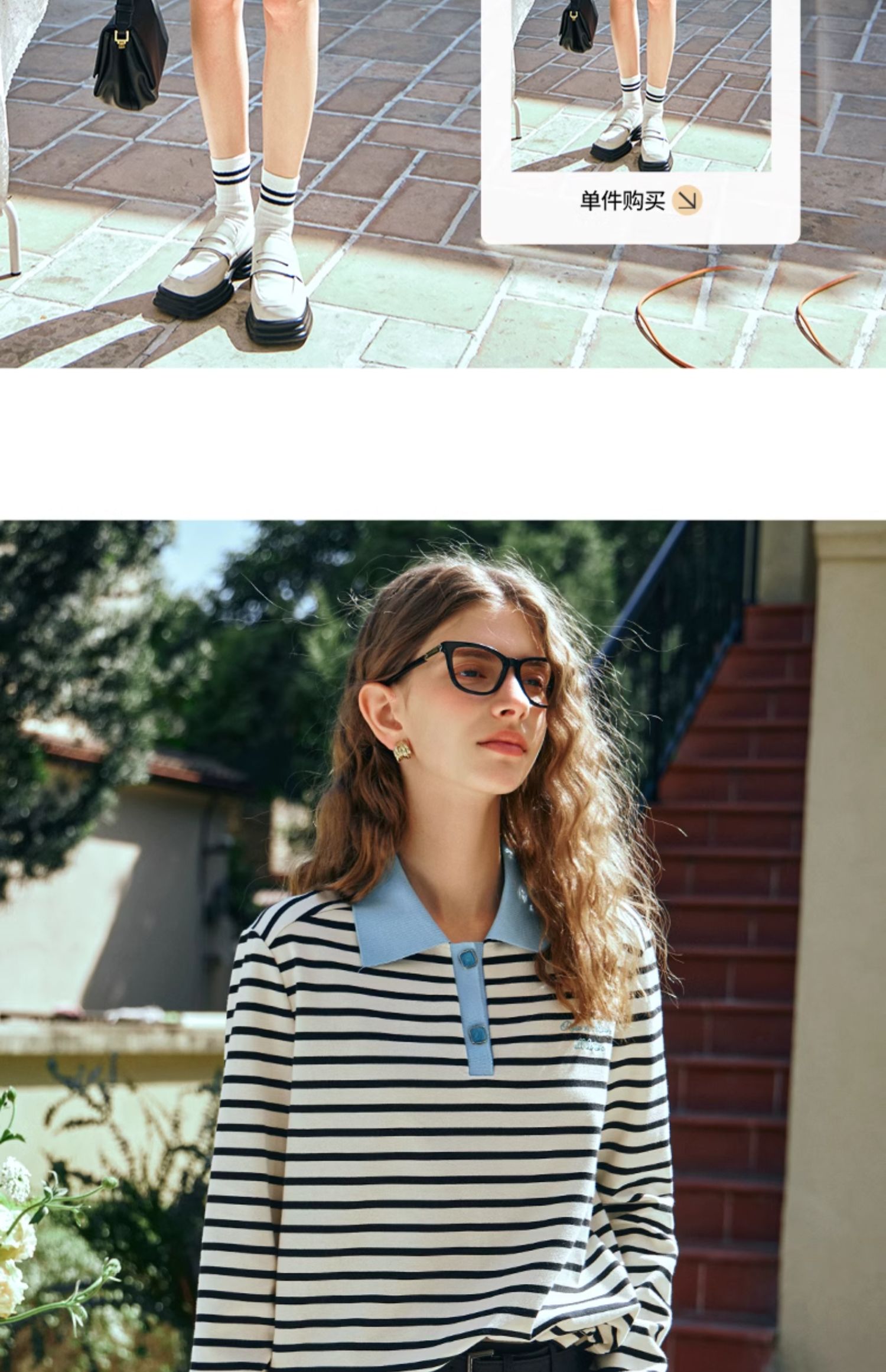 OLrain欧芮儿POLO领长袖T恤女早春2024年新款时尚宽松条纹上衣