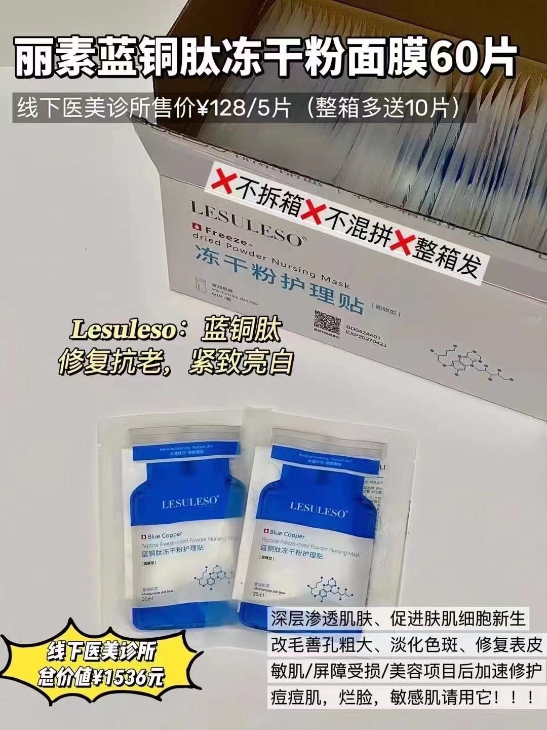 【丽素冷敷贴面膜全家福全系列】丽素虾青素蓝铜肽积雪草B5透明质酸钠面膜修护补水舒缓敏感肌新款 10盒50片/每箱60片活动款