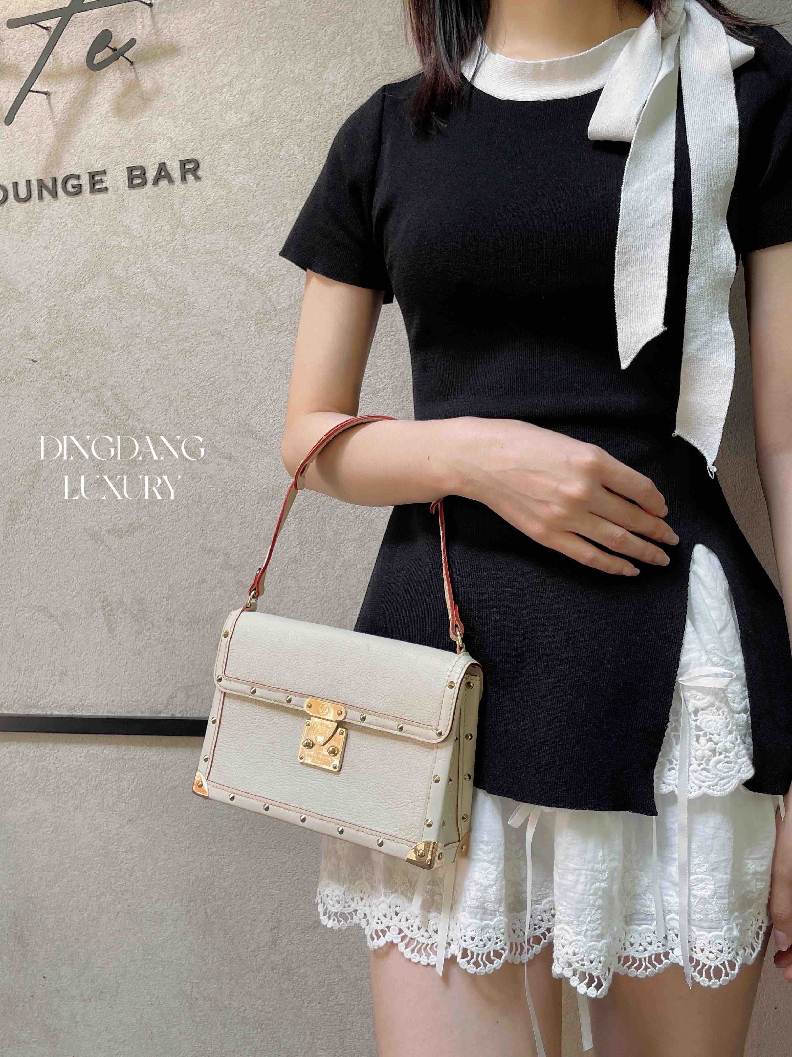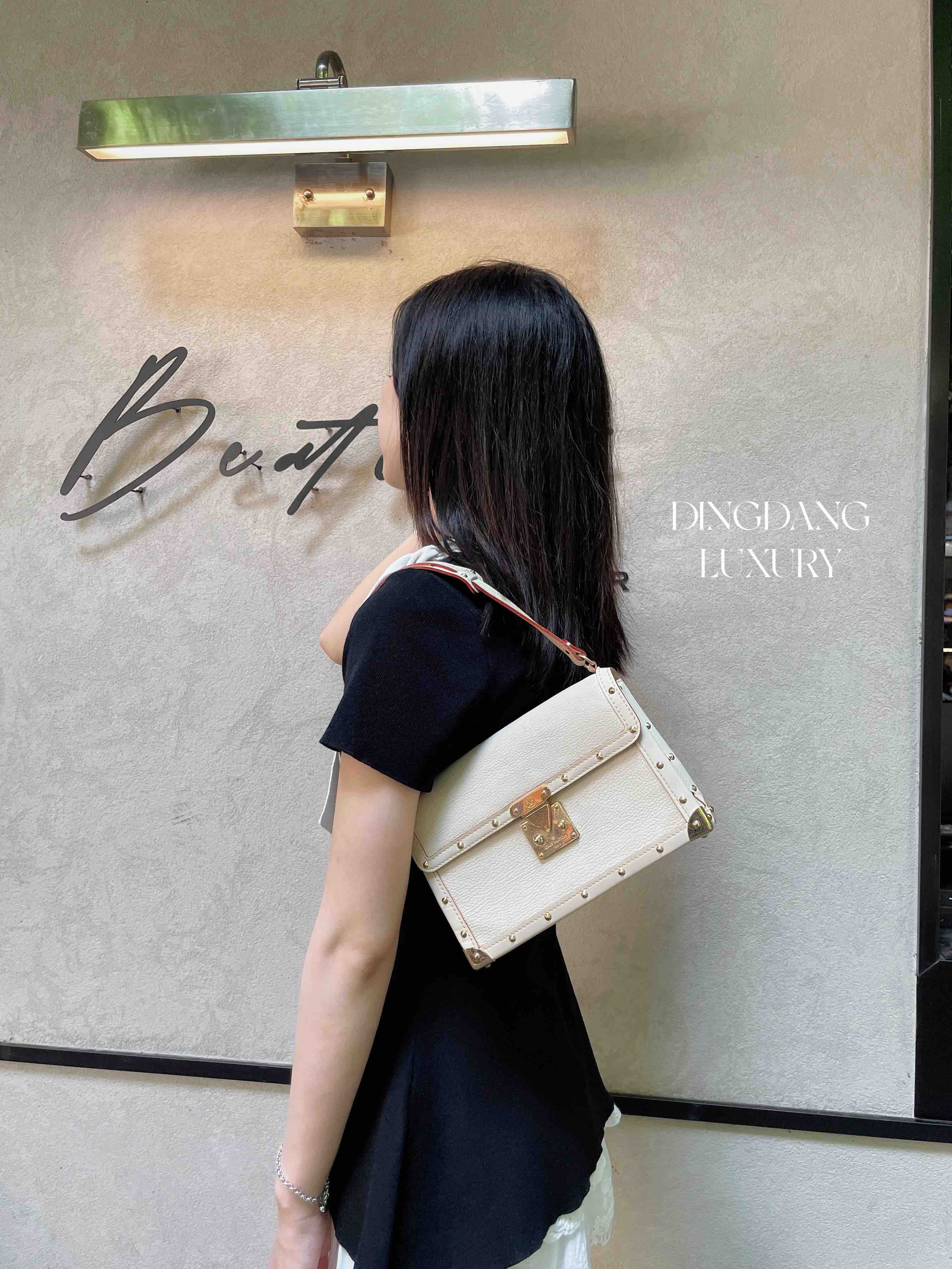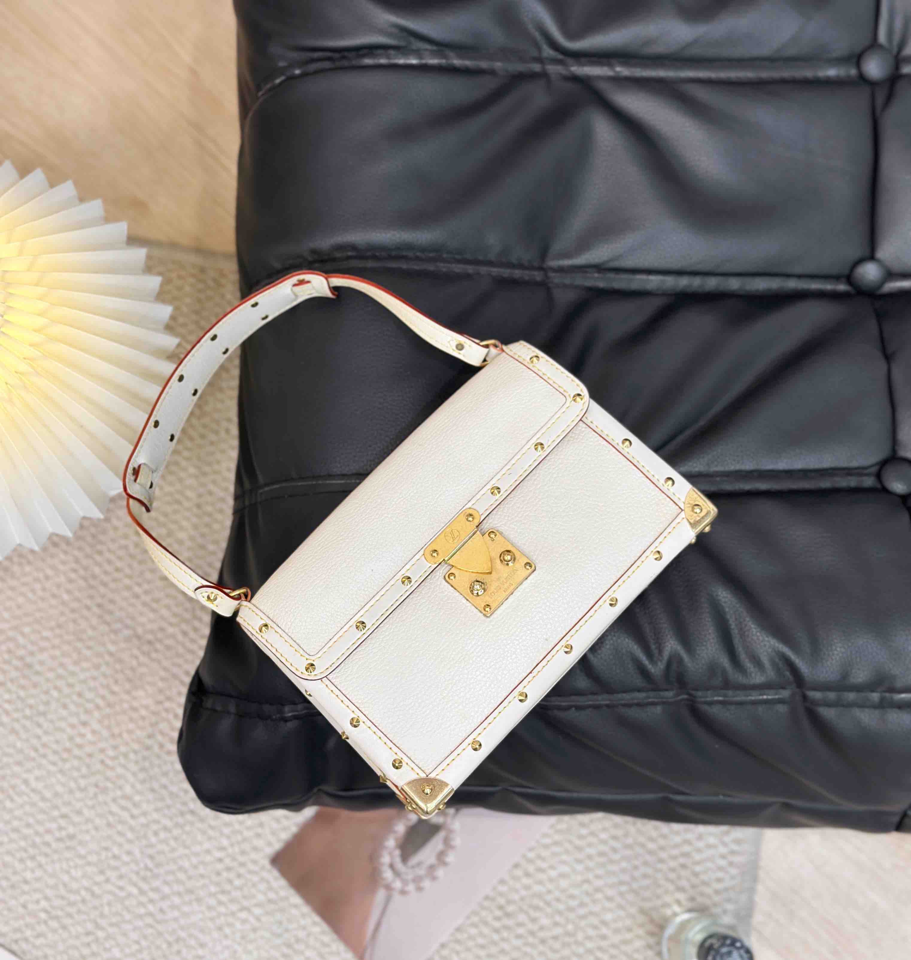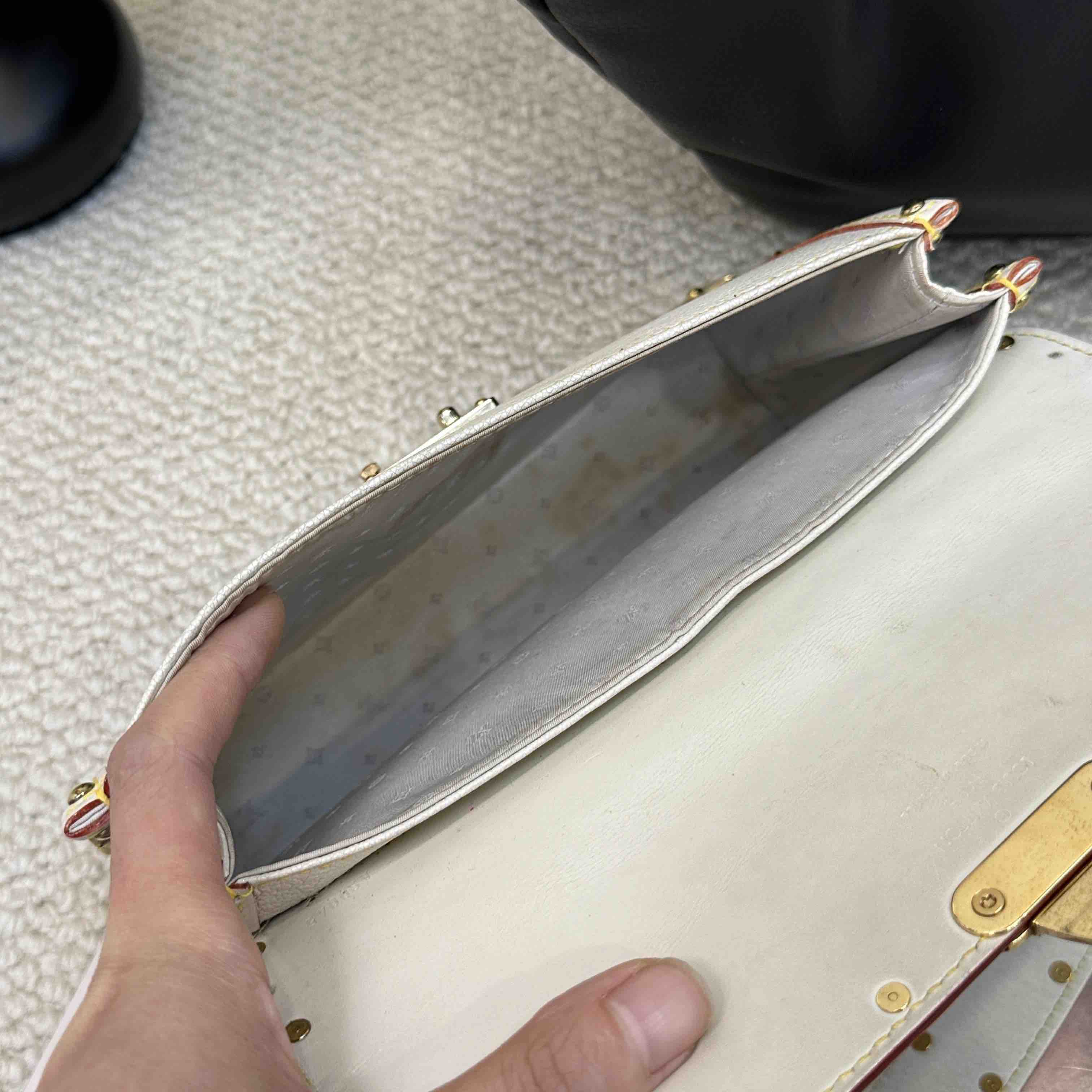 【商品描述】正品二手 Lv 苏哈里 小号 白金 山羊皮 单肩 腋下包😋93新 22×14。五金正常氧化 包面和内里正常使用痕迹