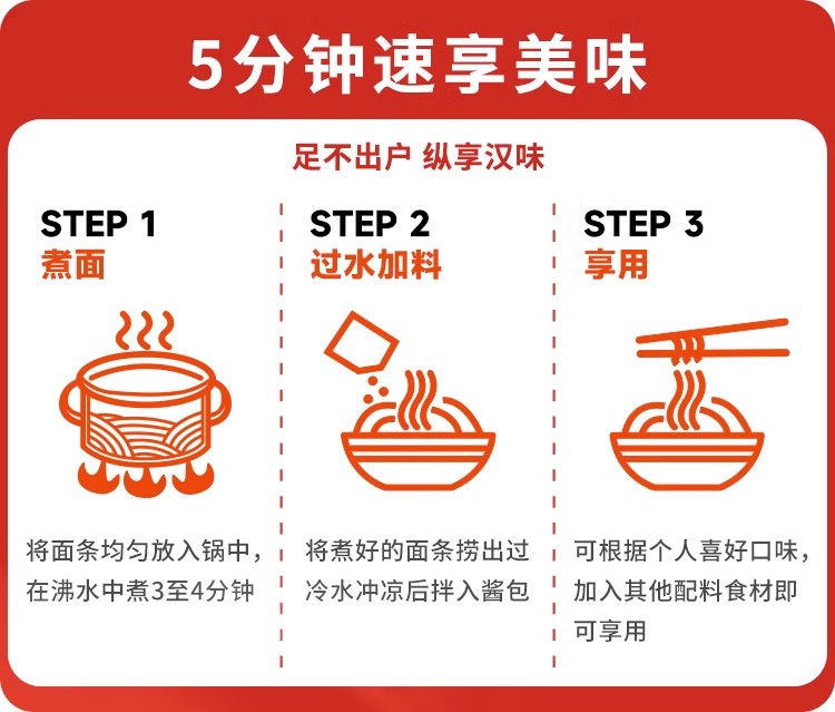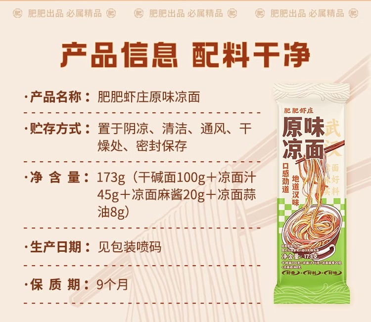 肥肥虾庄老武汉原味口水凉面速食麻酱碱水面夜宵173g*5袋