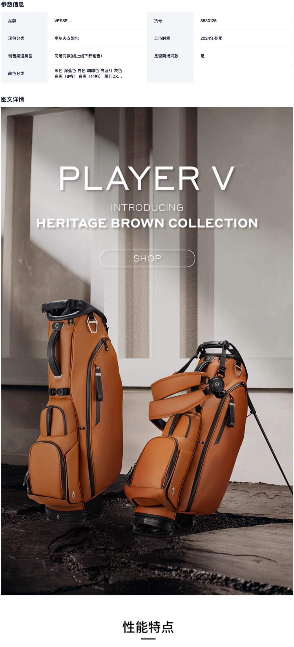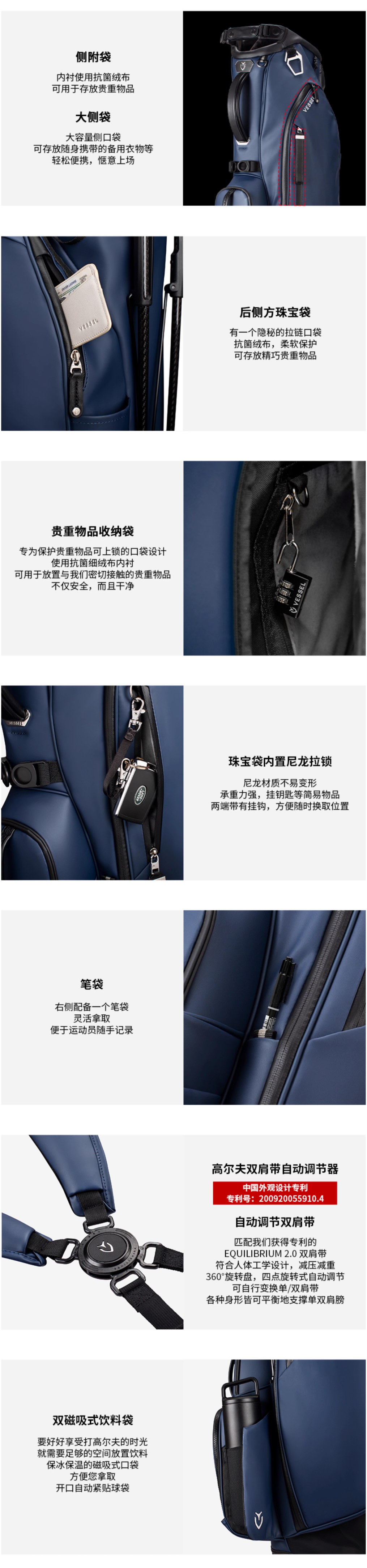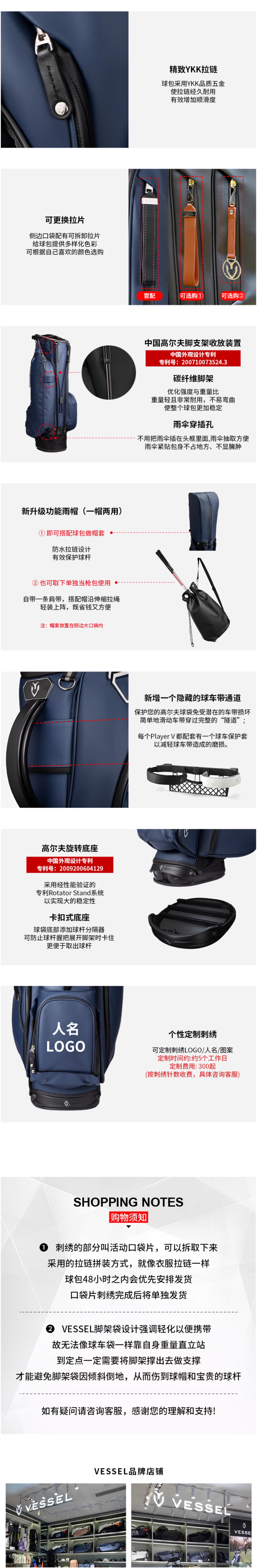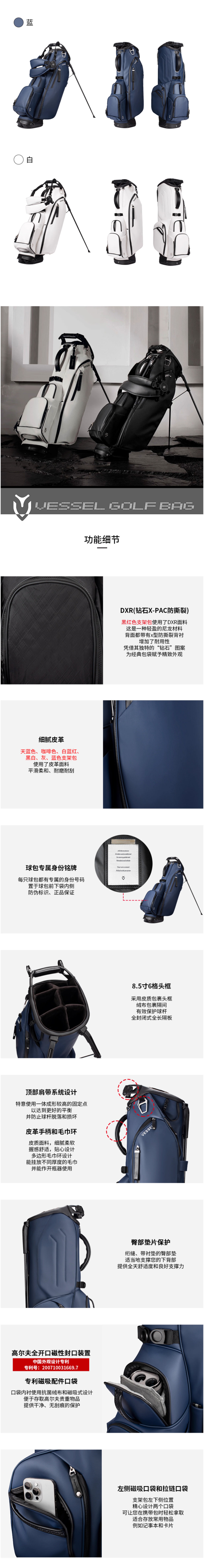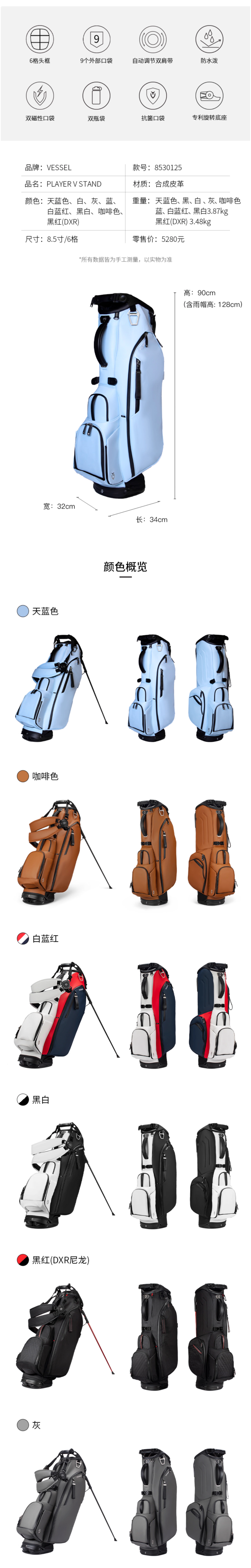 VESSEL PlayerV 2025新款 高尔夫球包轻便支架包golfbag男女6格8.5寸 8530125