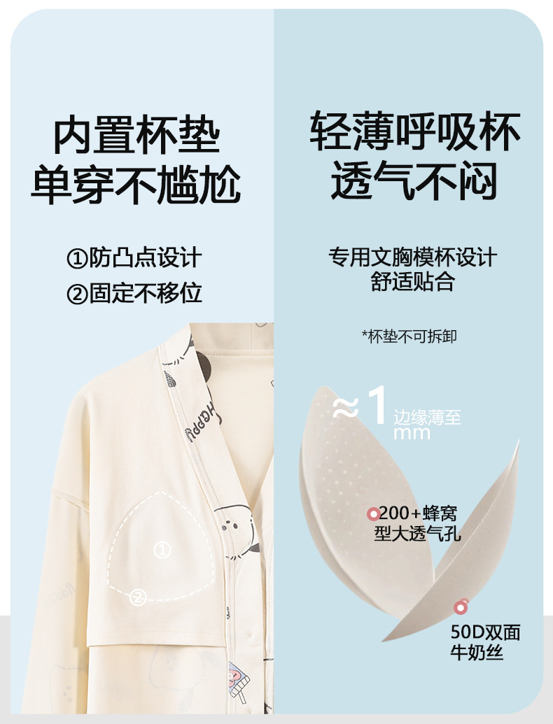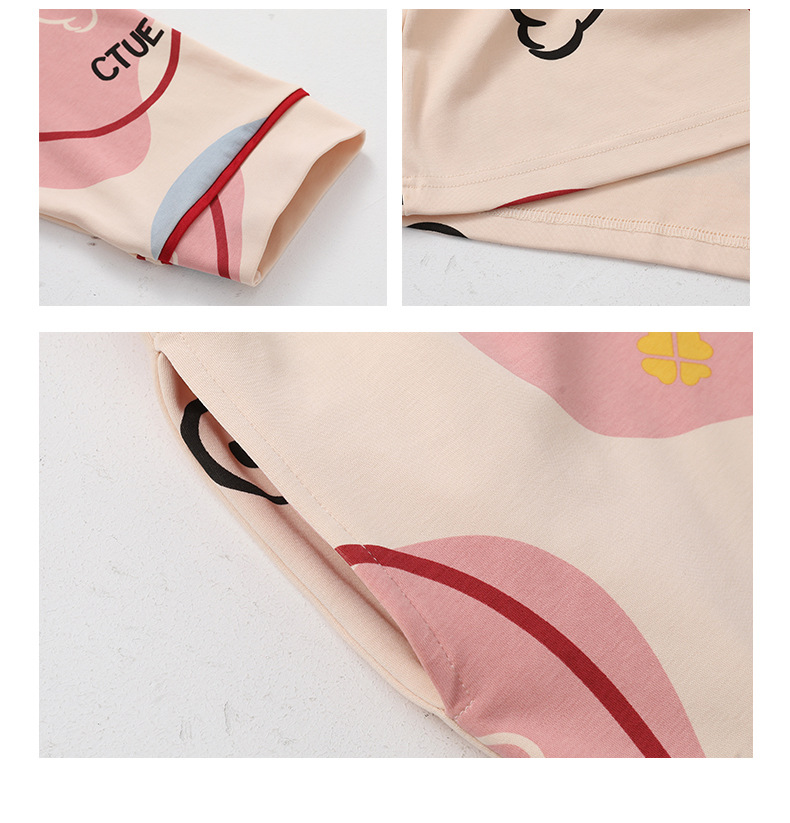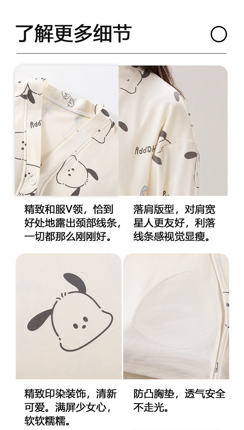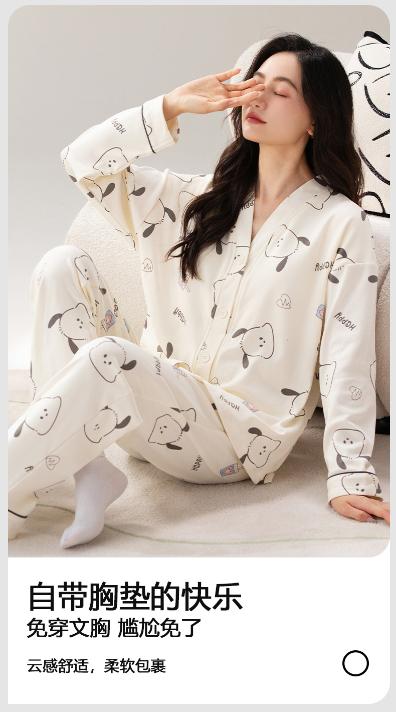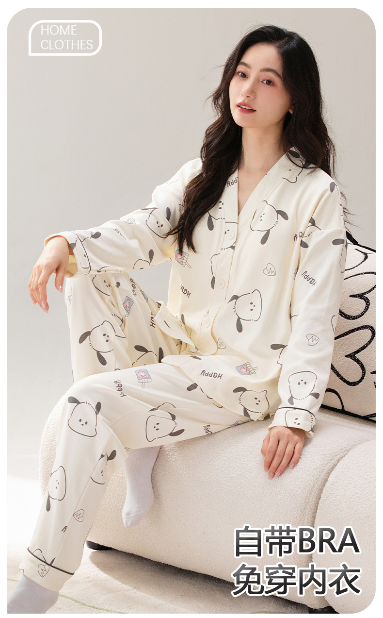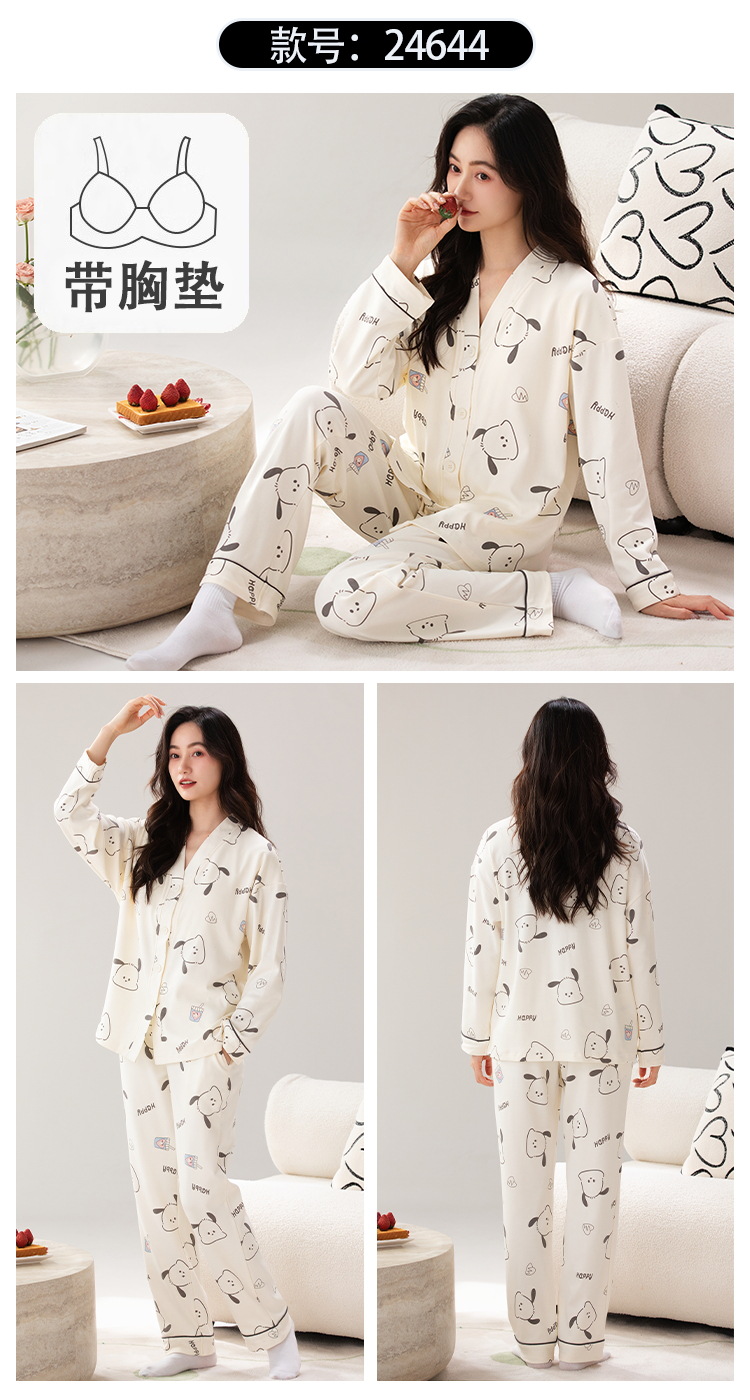 带胸垫长袖睡裙睡衣女秋季圆领卡通中长款宽松裙大码家居服可外穿