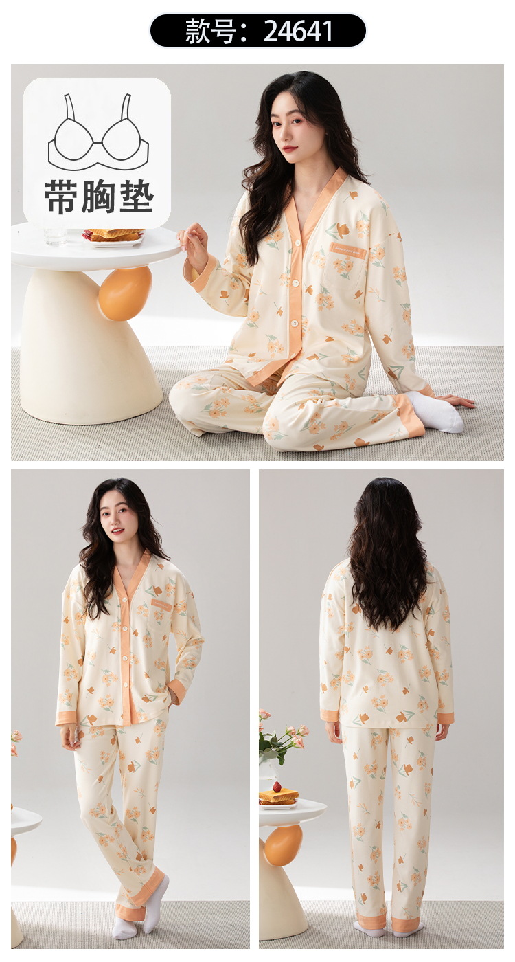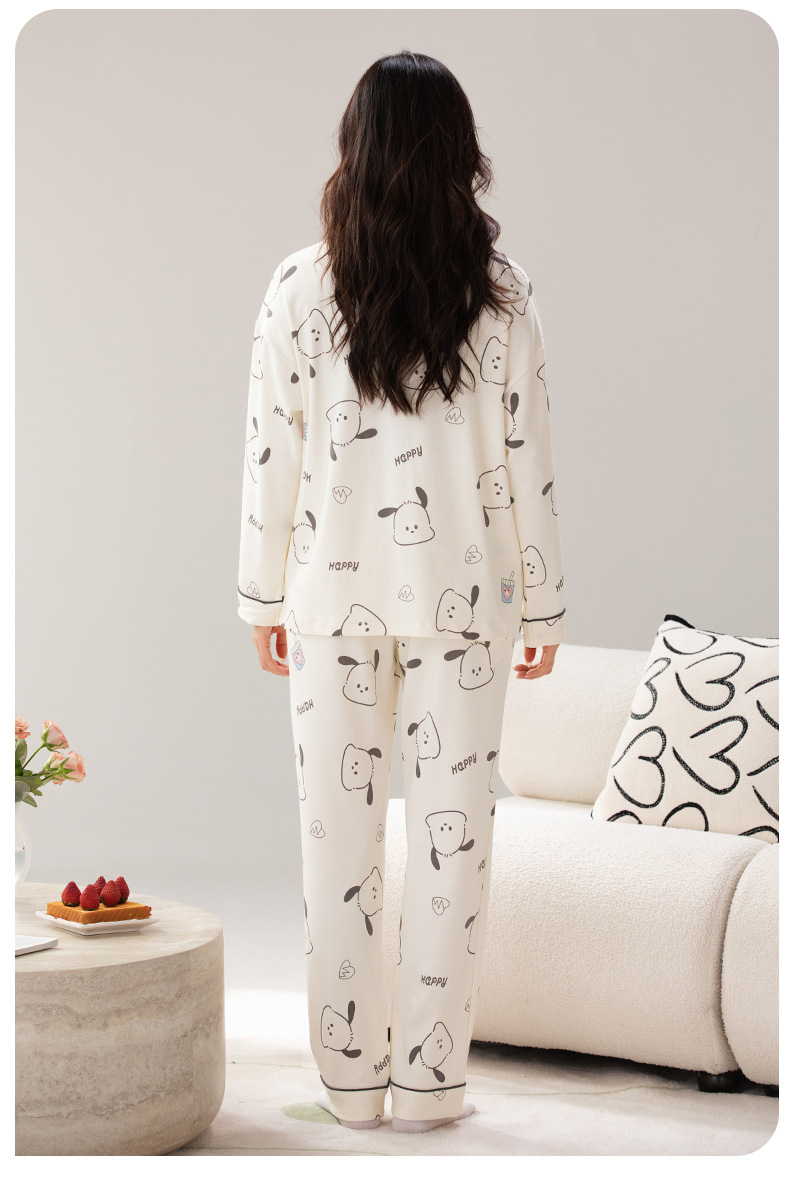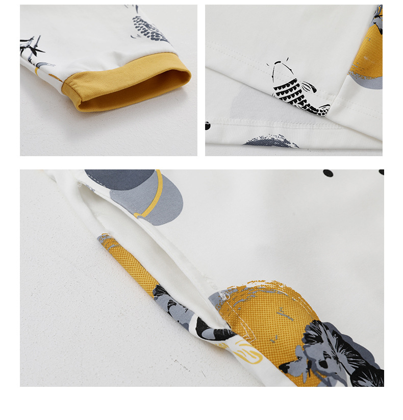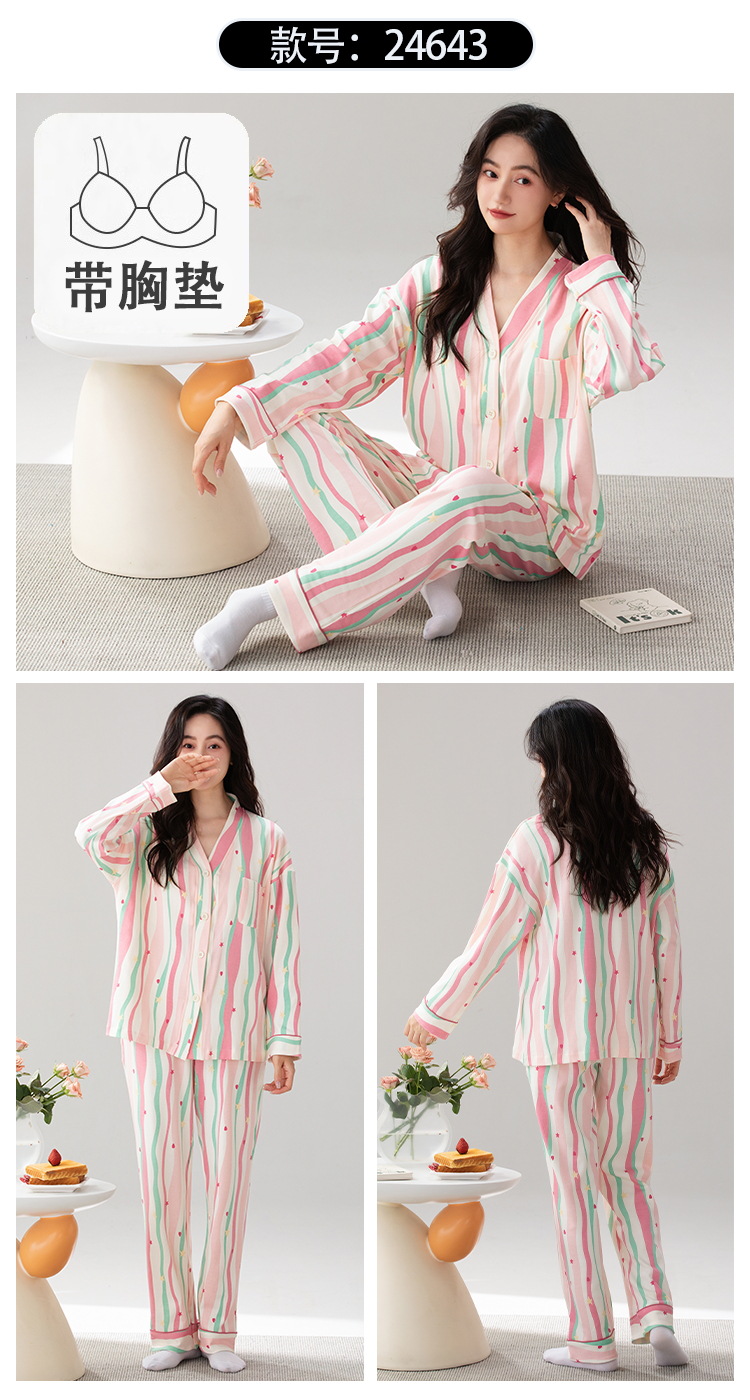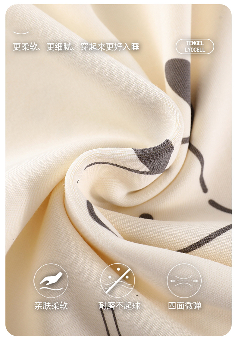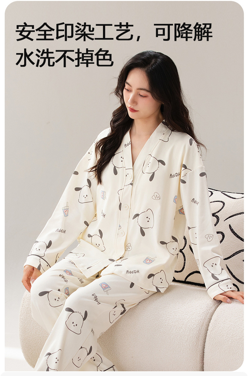 带胸垫长袖睡裙睡衣女秋季圆领卡通中长款宽松裙大码家居服可外穿