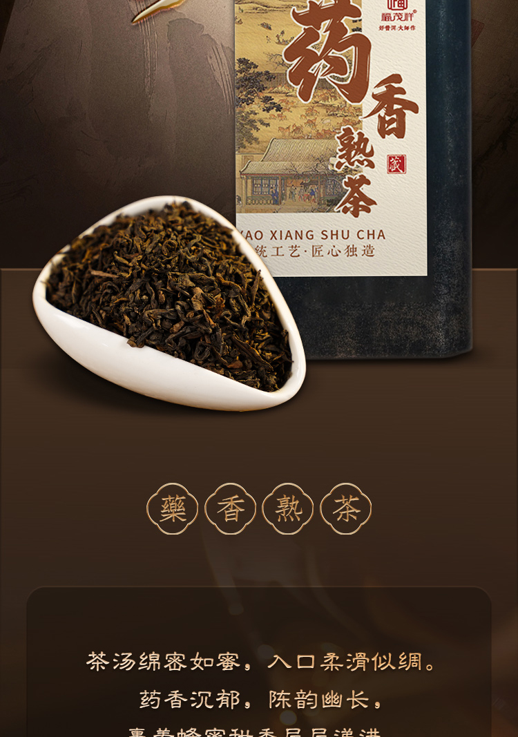 甜韵穿喉 甘韵透腑【药香熟茶】易武老熟茶稀有药香 绵密黏稠 2017年春茶易武古树普洱老熟茶散茶罐装500g