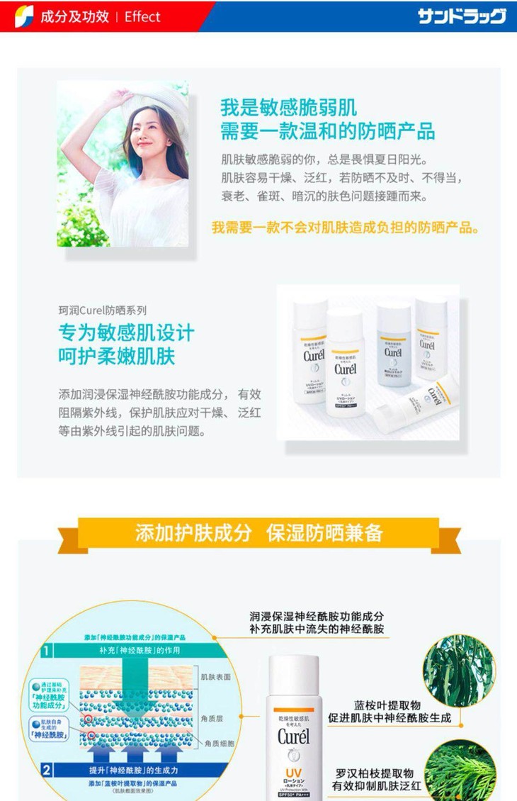 【海关保税直发】Curel珂润防晒霜乳液SPF50+敏感肌保湿60ml-会员5折