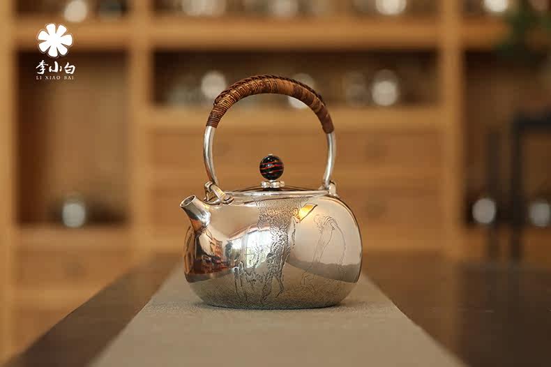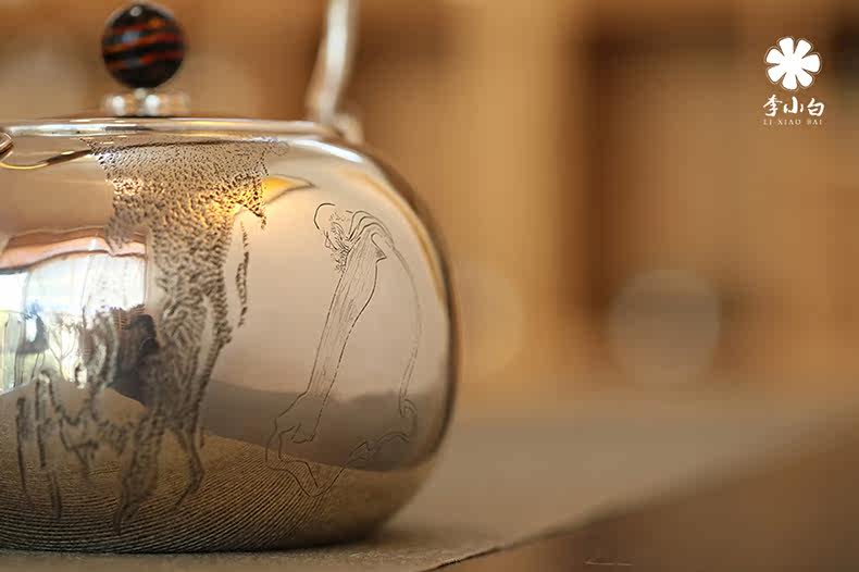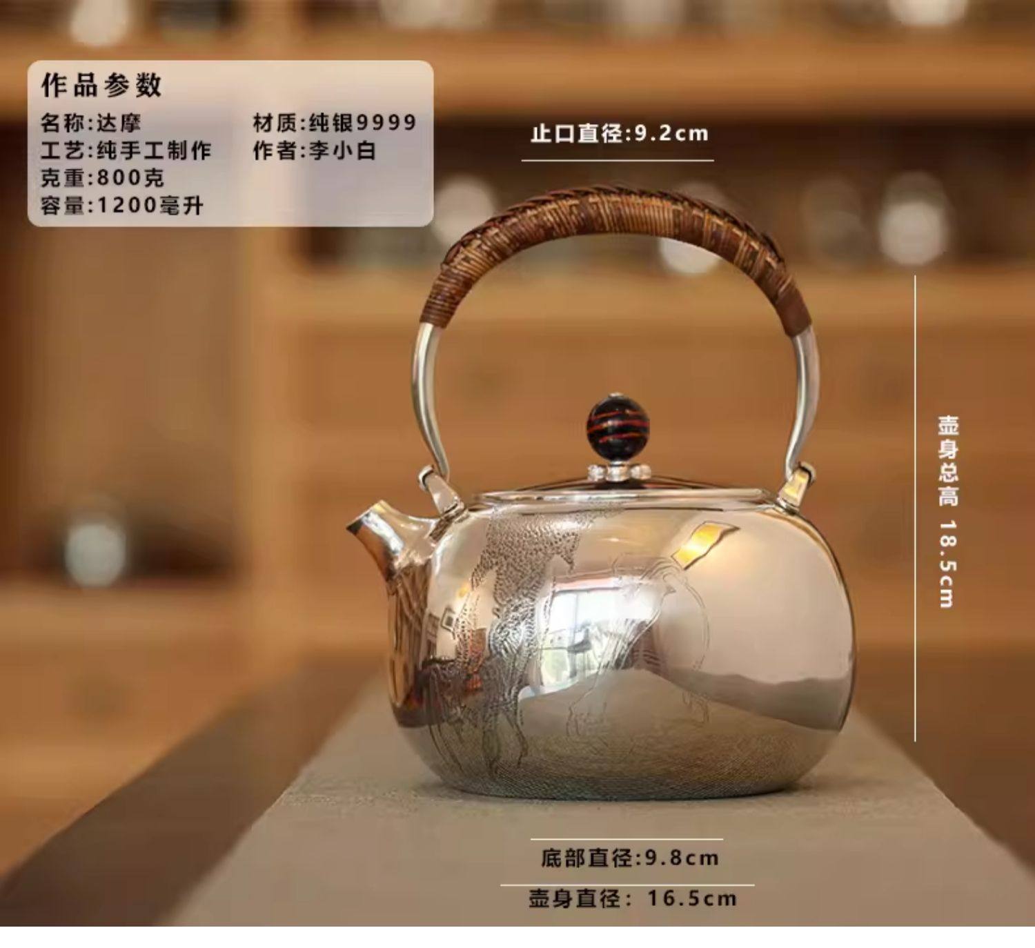李小白银壶 纯银9999烧水壶 银壶烧水壶 烧水银壶 银壶 茶壶 达摩