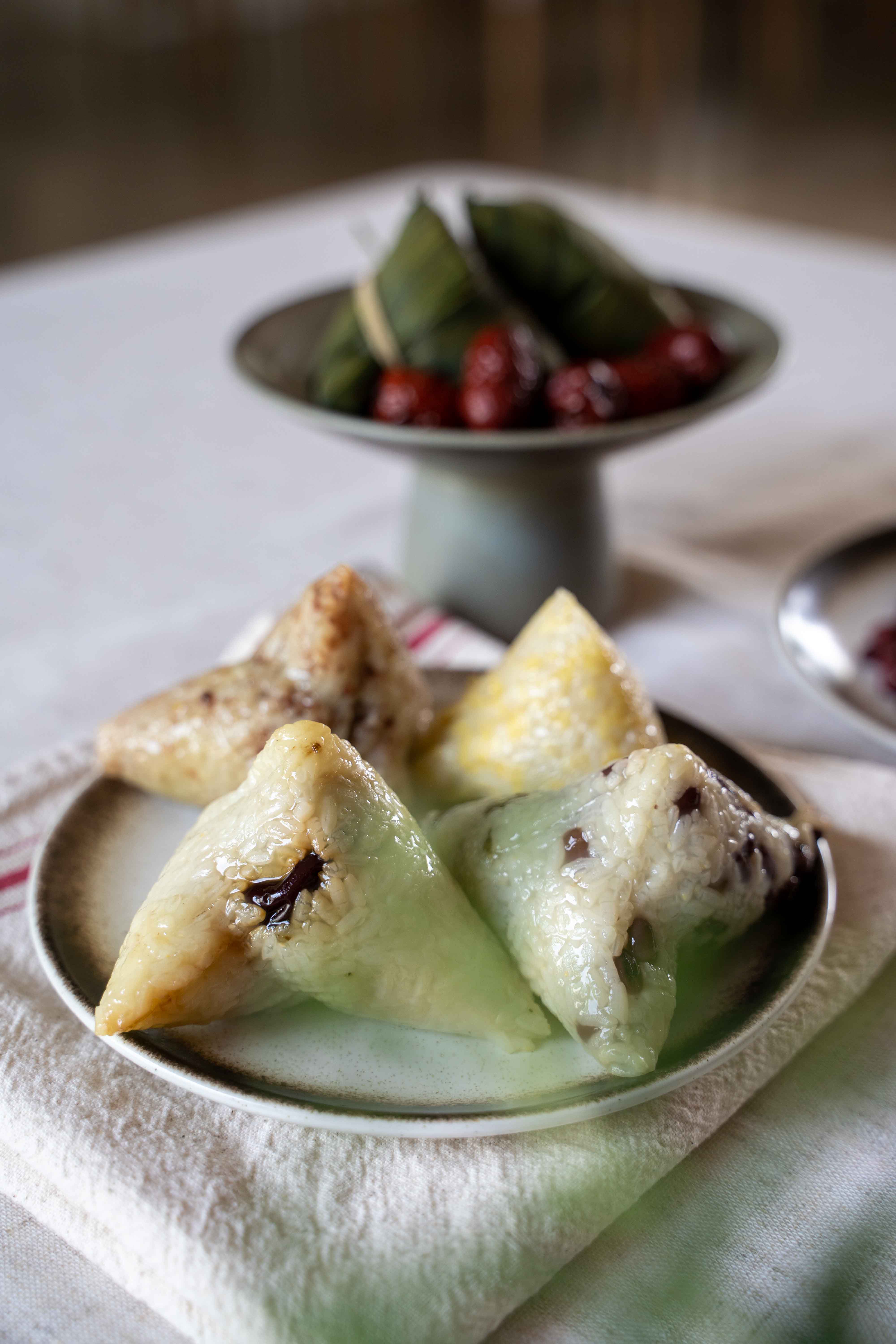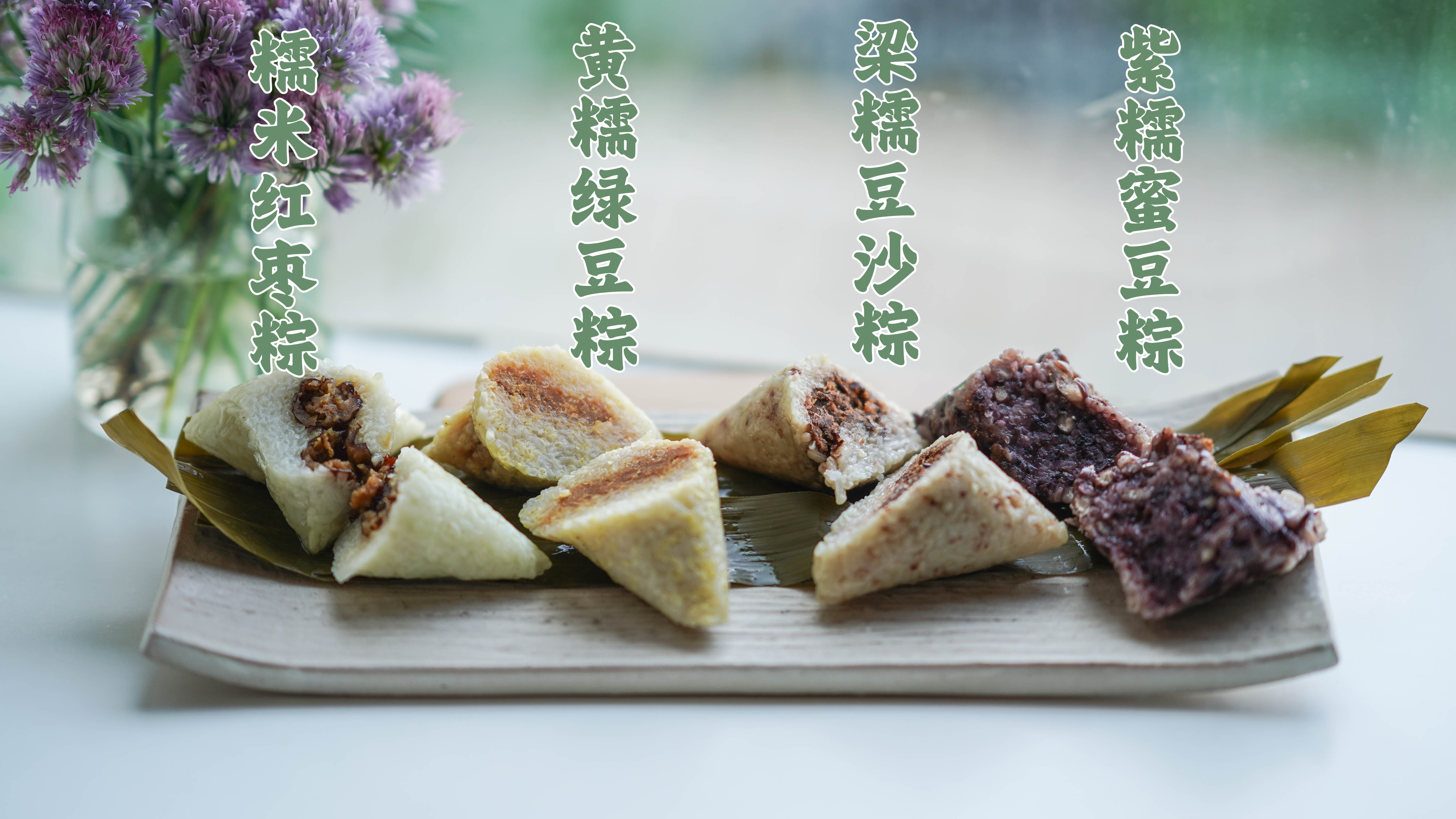 粱糯豆沙粽:糯米、粘高粱米、红豆、白砂糖、水、蜂蜜