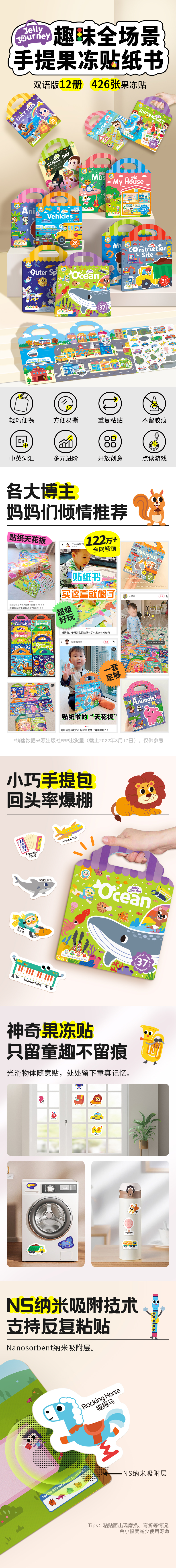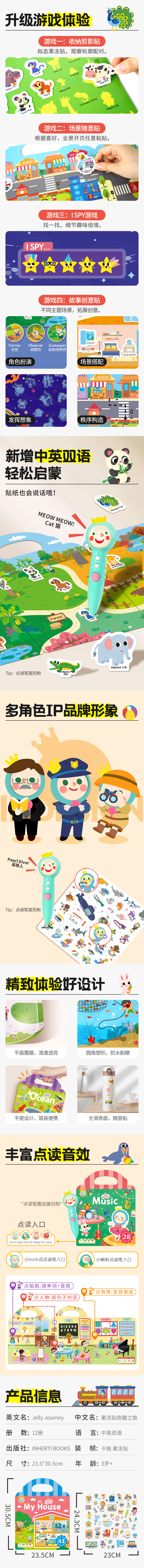 *【新品】【只支持小book点和小蝌蚪A6S】文脉书局手提果冻贴纸书First sticker book双语果冻贴纸书,点读版益智游戏亲子互动3-6岁正版图书籍【未满5本不发货】