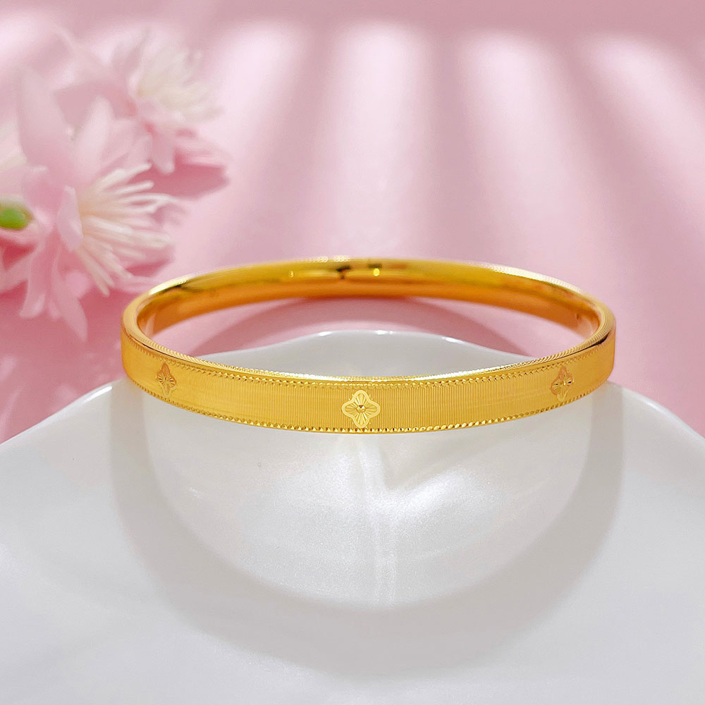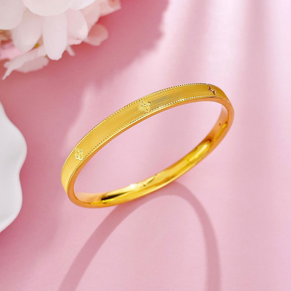 【限时克减150元】足金 #十八岁成人礼 #CNC 无氰5D空心固口手镯CNC丝绒幸运四叶草固口手镯(面宽约5.8-6.2mm)(AR5DSZ10004),(预售产品下单后不退款不退货不换货不补差价