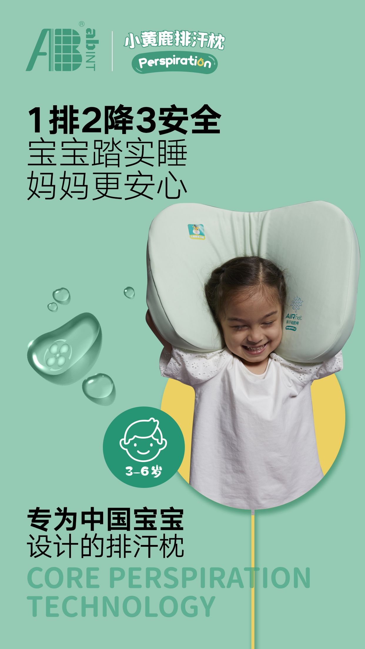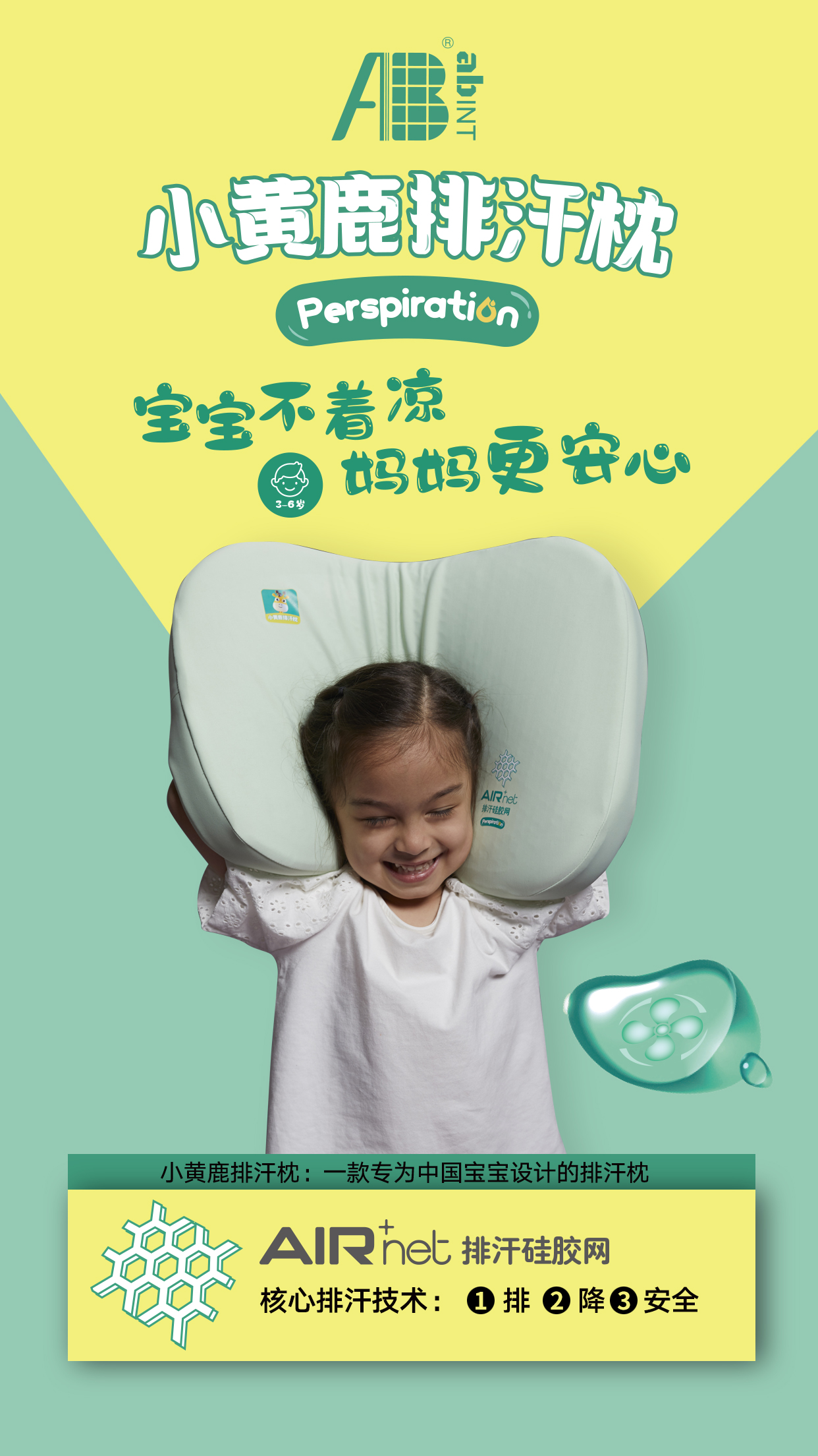 小黄鹿排汗枕 儿童枕头 夏枕