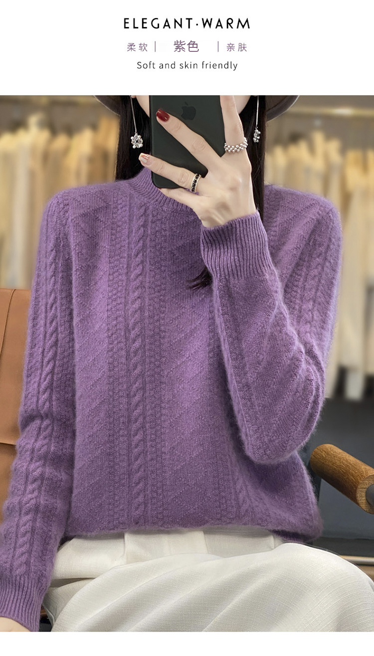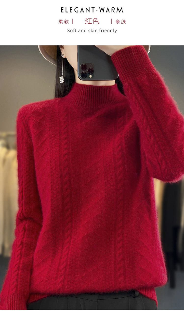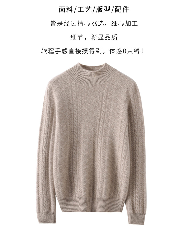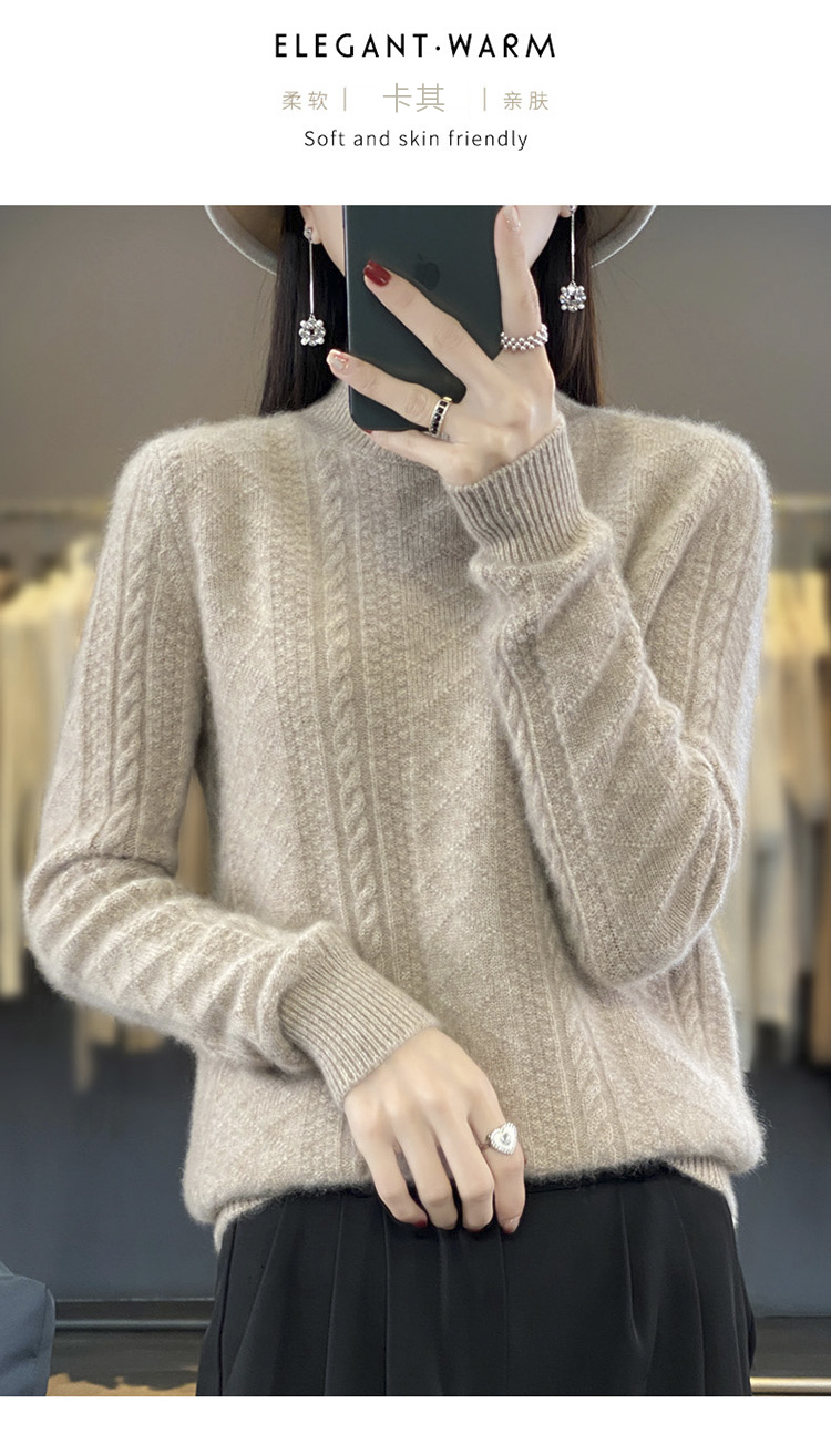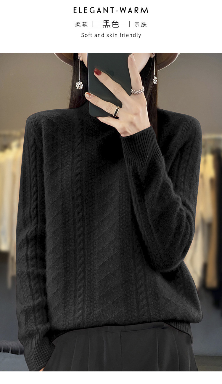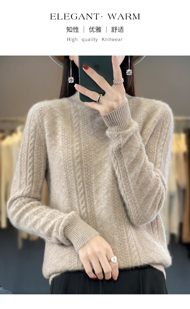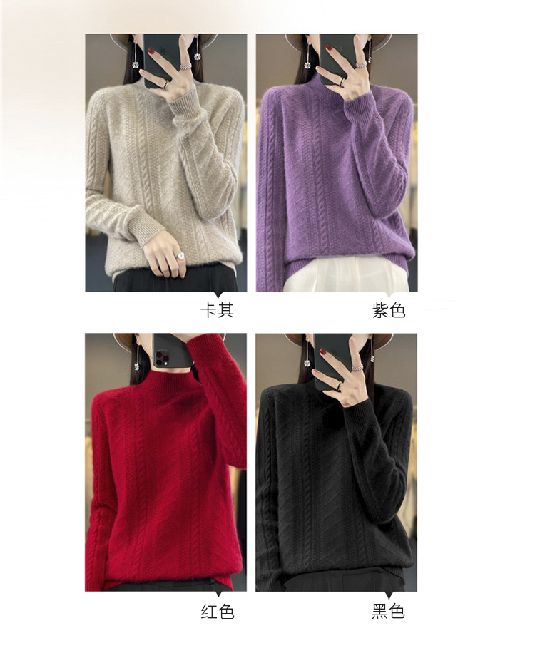 秋冬麻花菱形暗纹半高领打底针织毛衣宽松百搭女款上衣SZ2716