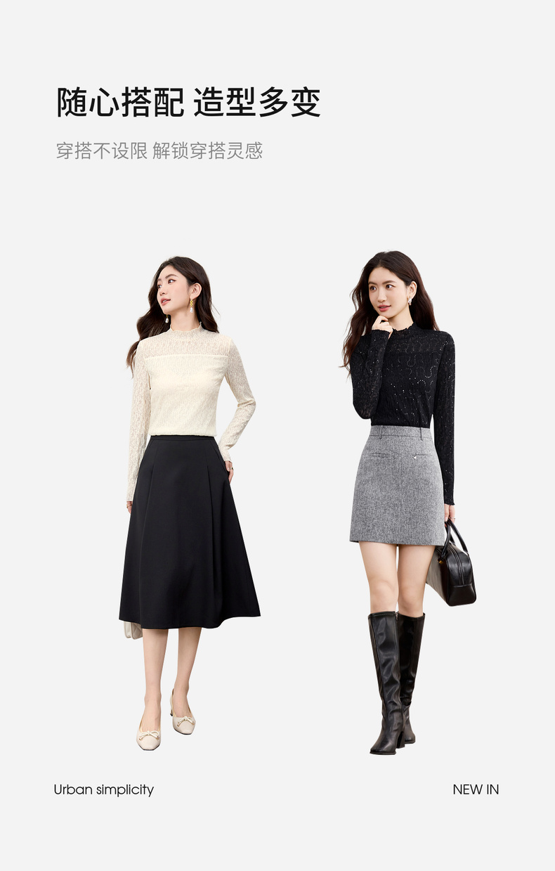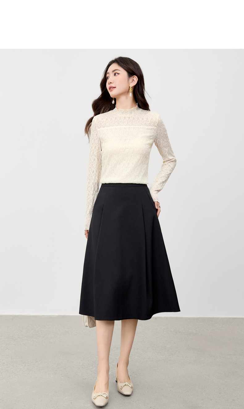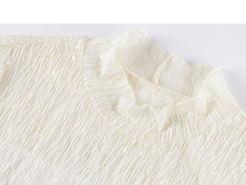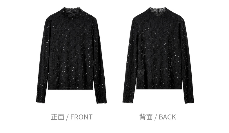 【内购】【易搭配】优雅通勤半高领珠片花藤肌理修身内搭外穿不走光蕾丝衫-153SA2715
