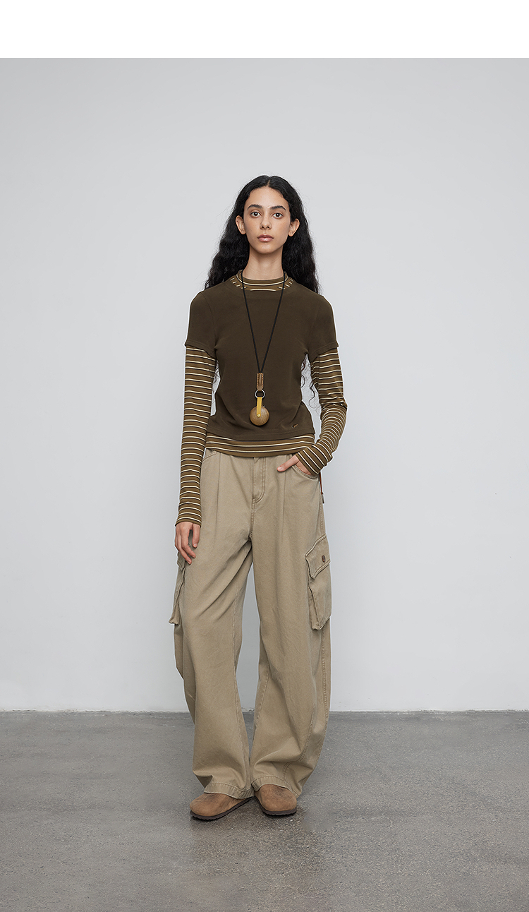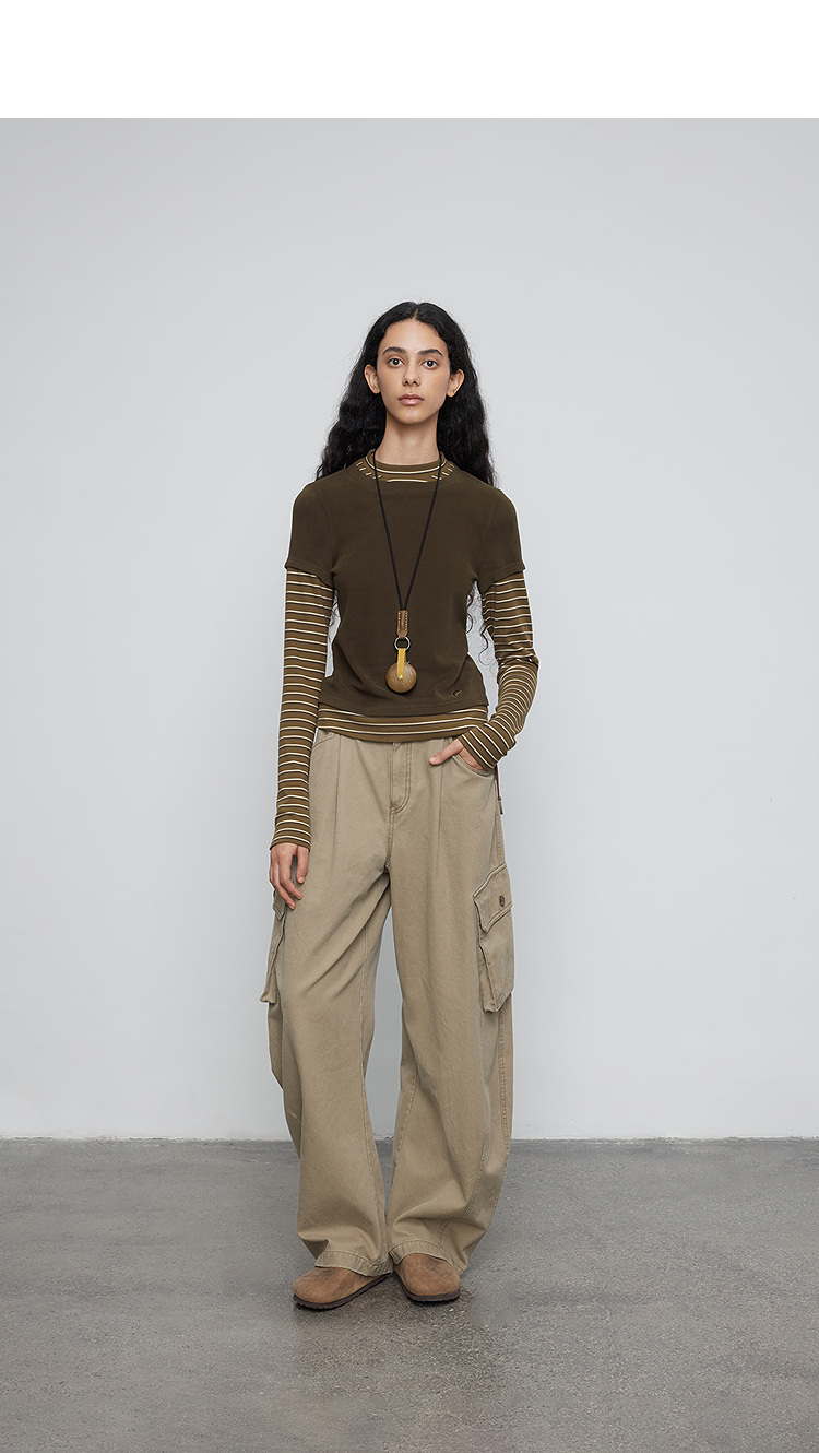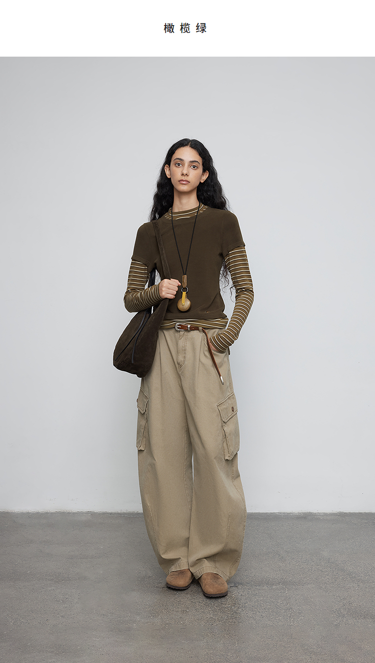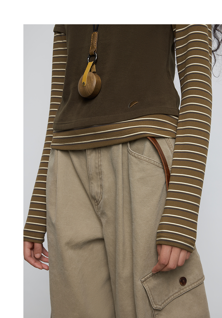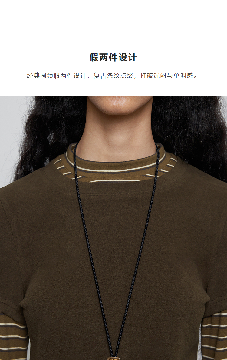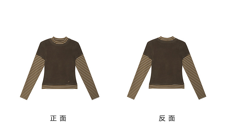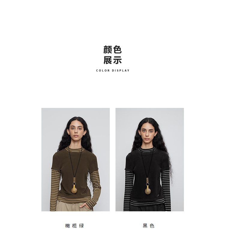 半圆/Q5127799/假两件修身圆领长袖t恤