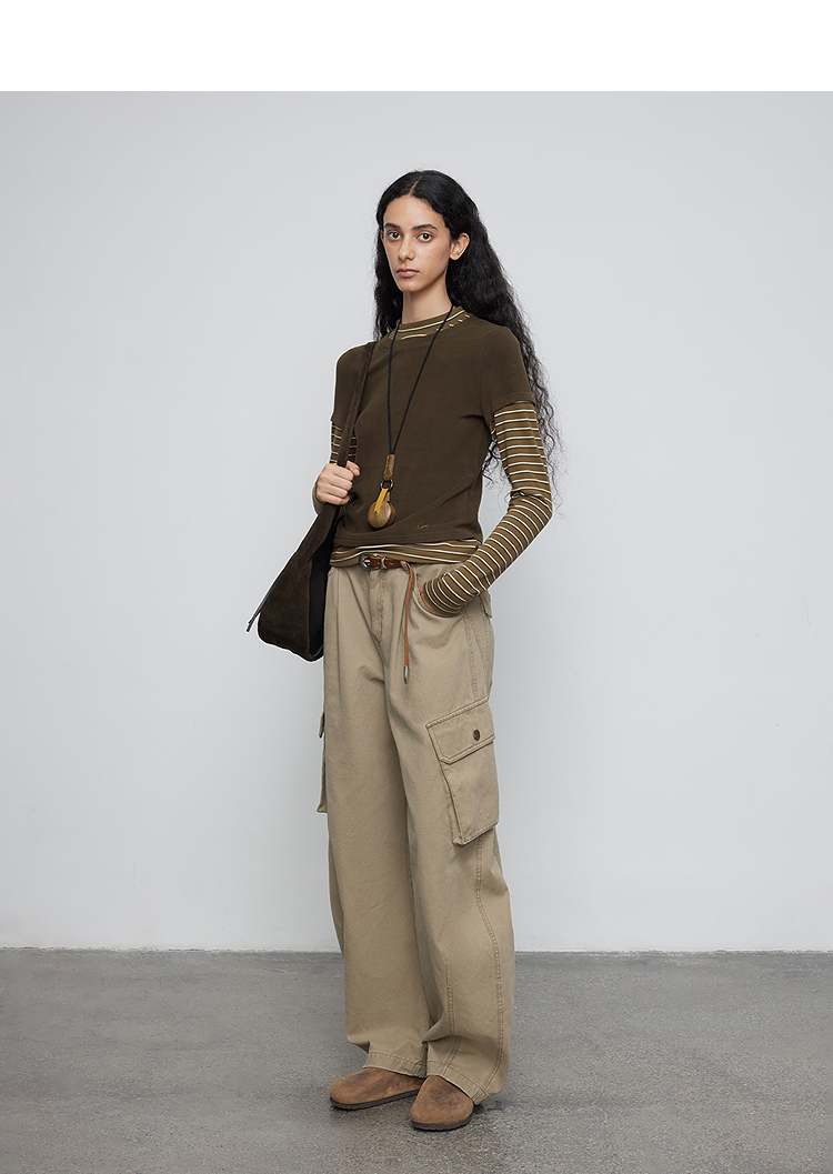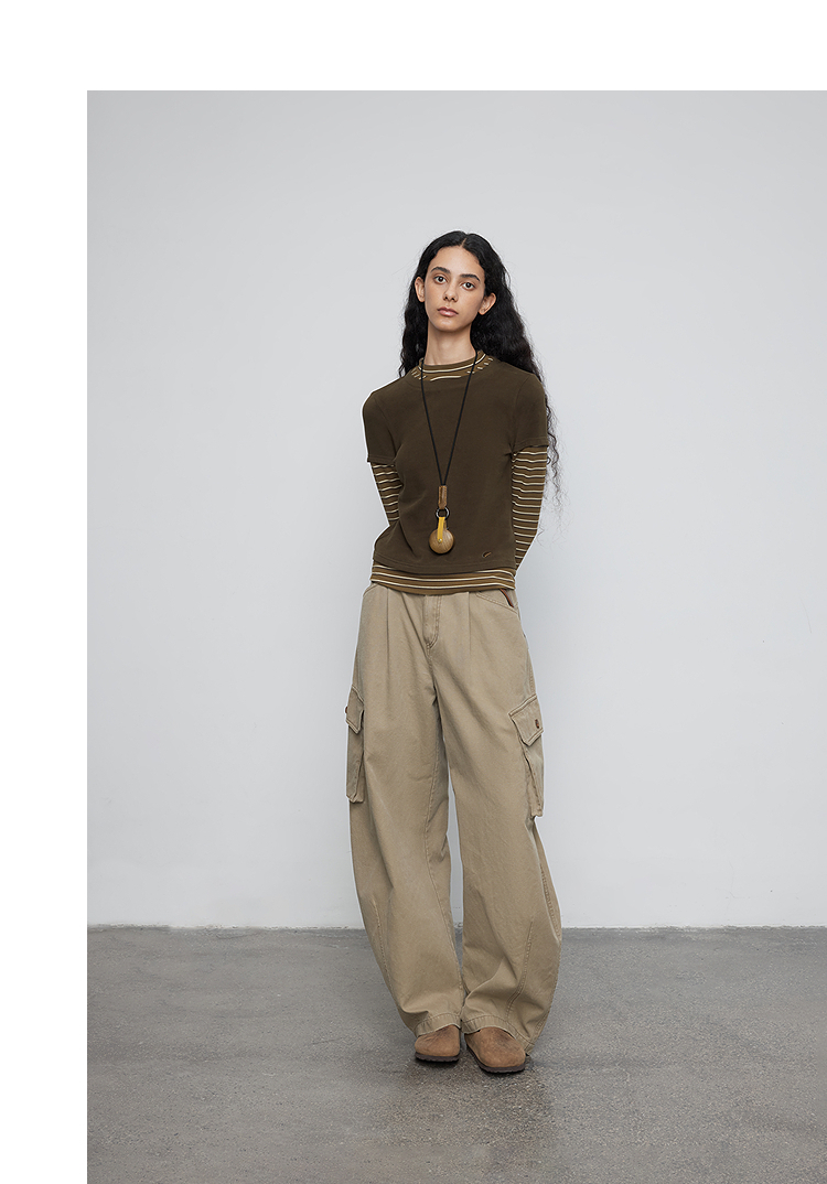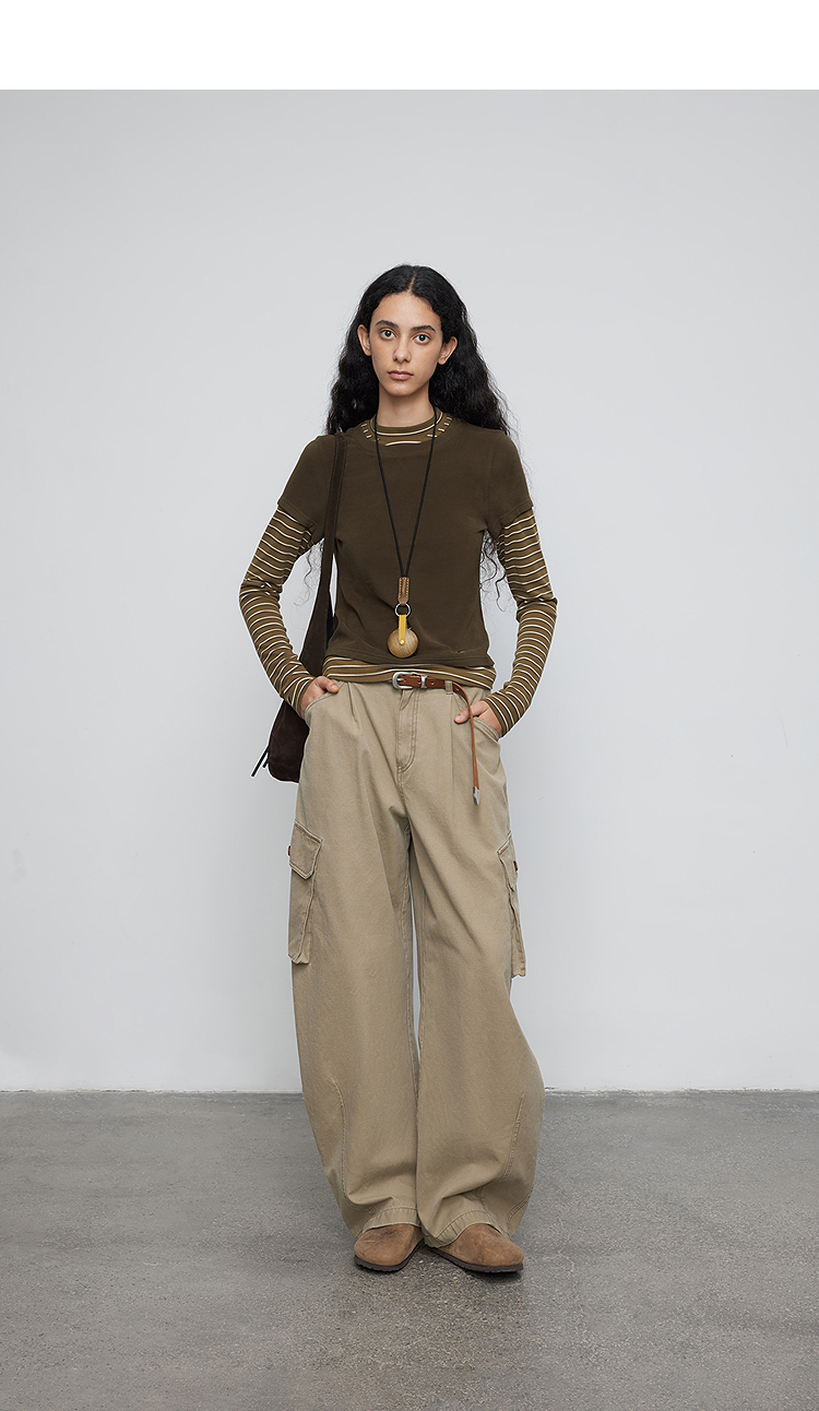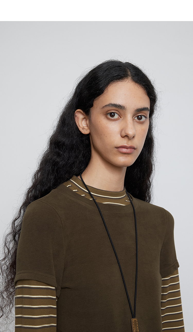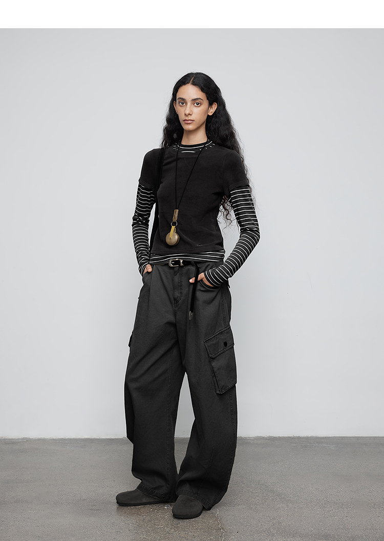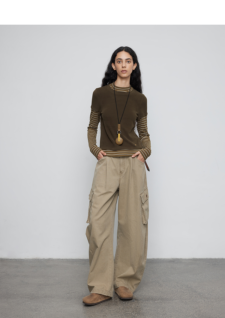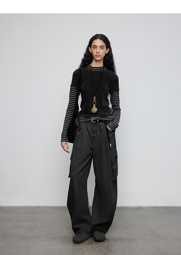 半圆/Q5127799/假两件修身圆领长袖t恤