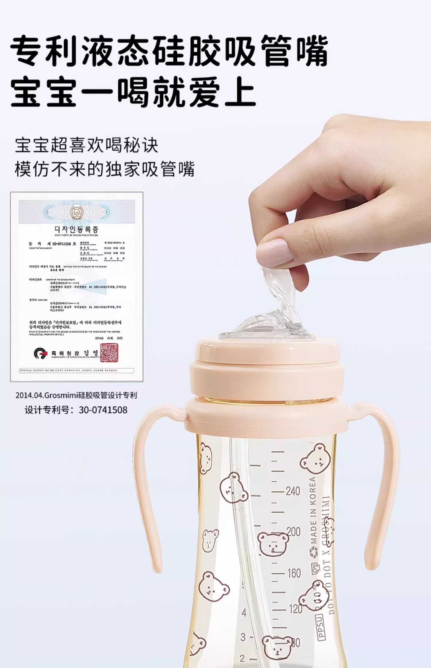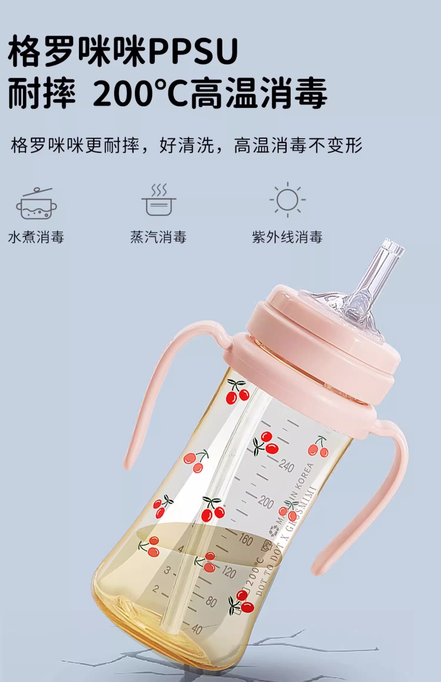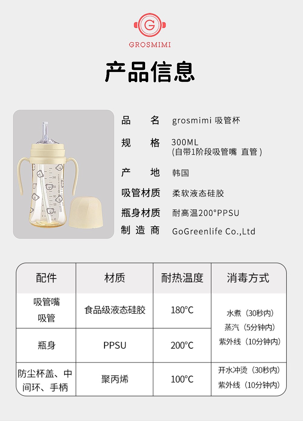 Grosmimi吸管杯200ml/300ml重力球款 水杯婴儿童宝宝喝水牛奶瓶硅胶