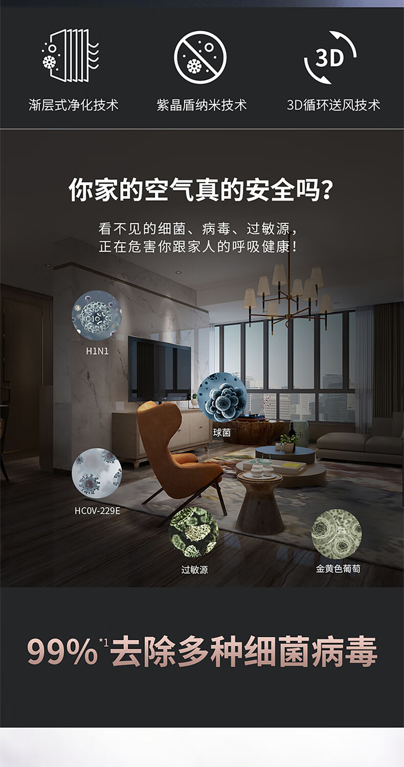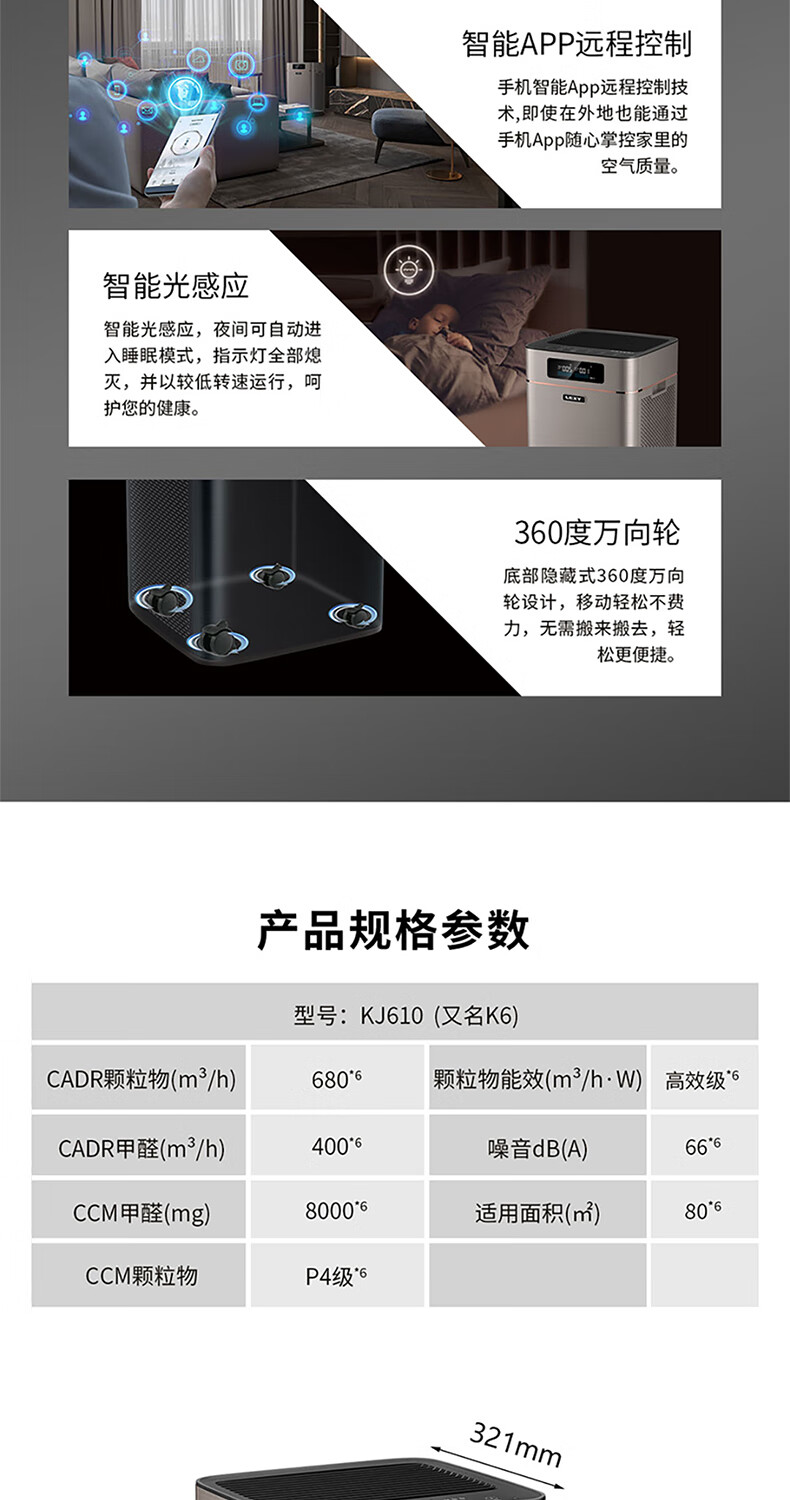 莱克莱克KJ610空气净化K6家用除甲醛除雾霾滤病菌异味贰手烟过敏源花粉卧室办公室净化_标准款