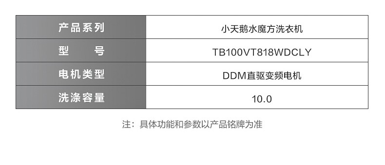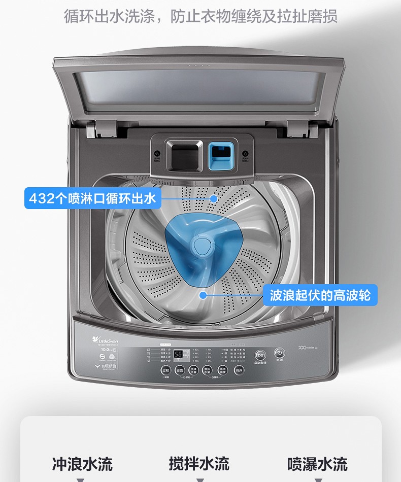 小天鹅 TB100VT818WDCLY 10公斤波轮洗衣机全自动 直驱变频 水魔方护衣防缠绕