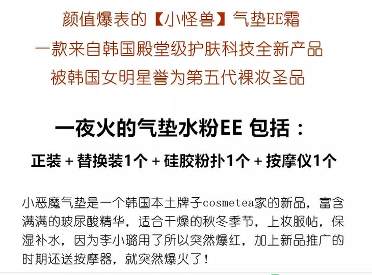 【现货】cosmetea李小璐同款小怪兽气垫EE霜裸妆神器遮瑕赠美容仪