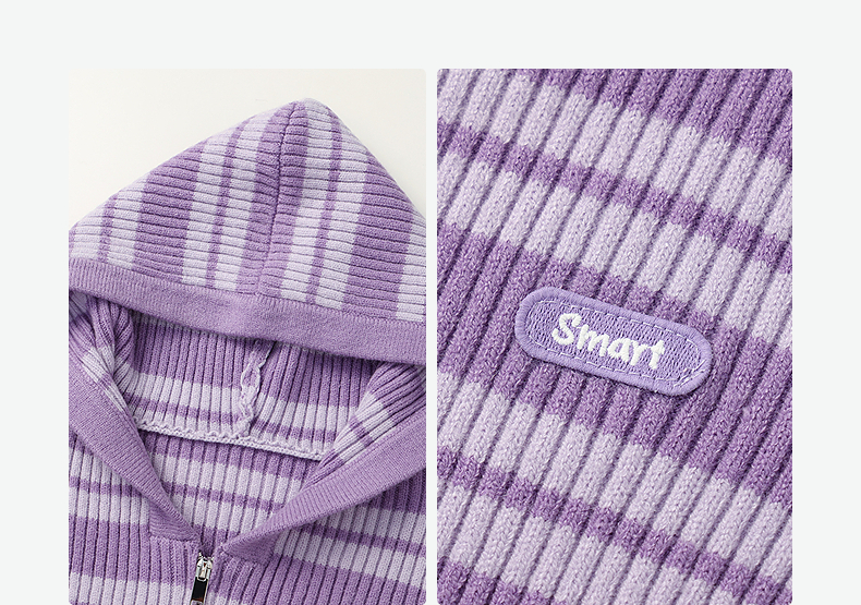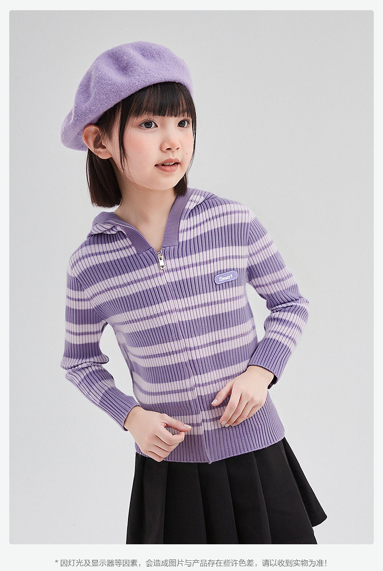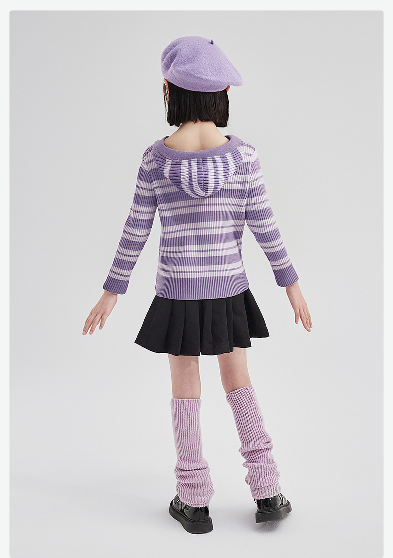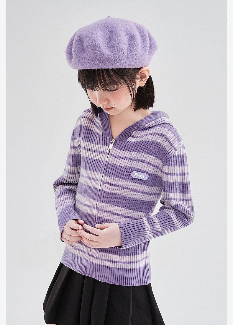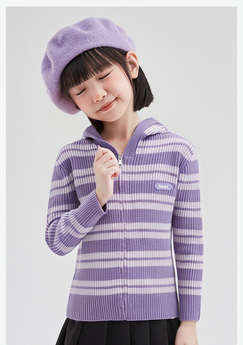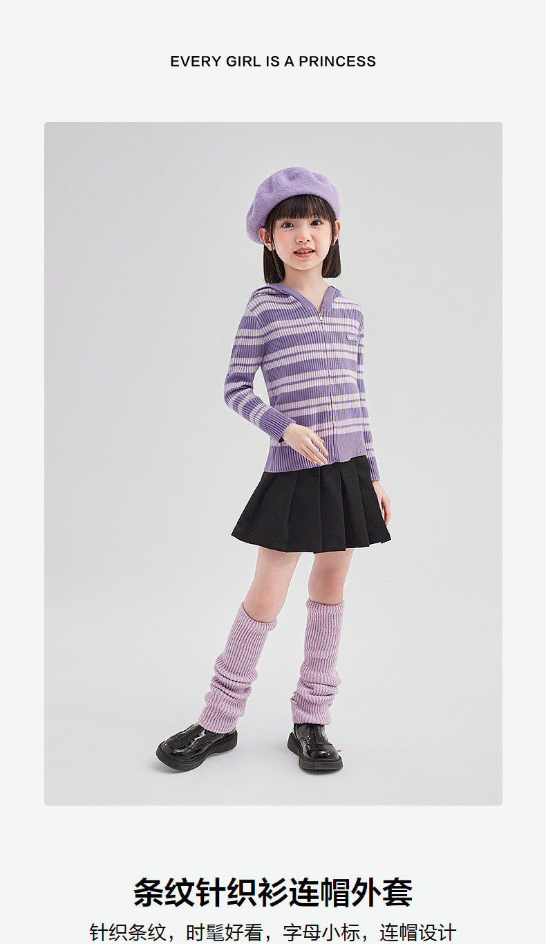 笛莎Deesha 童装女童外套2025秋新款女童条纹针织衫连帽外套