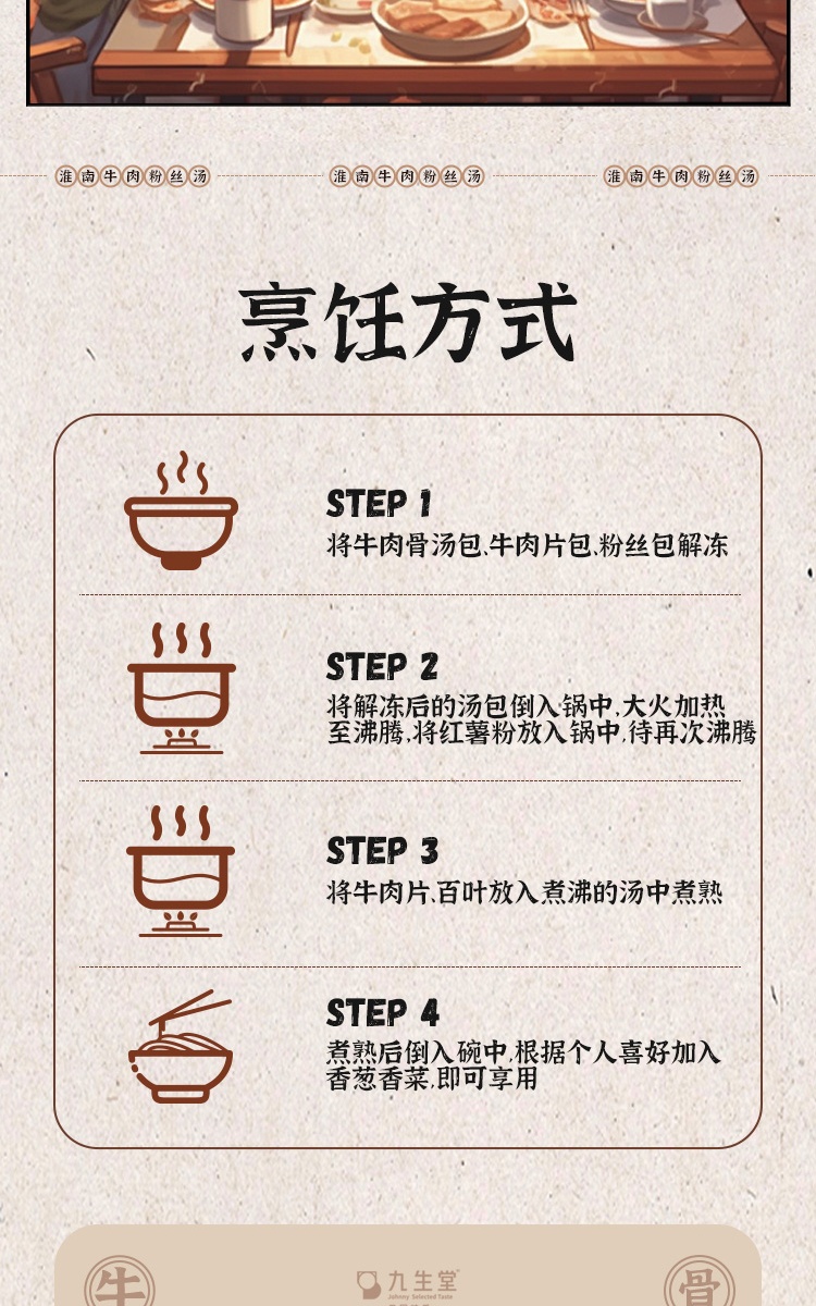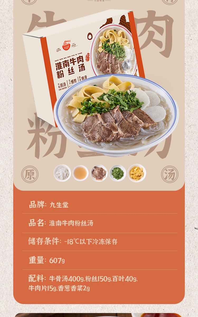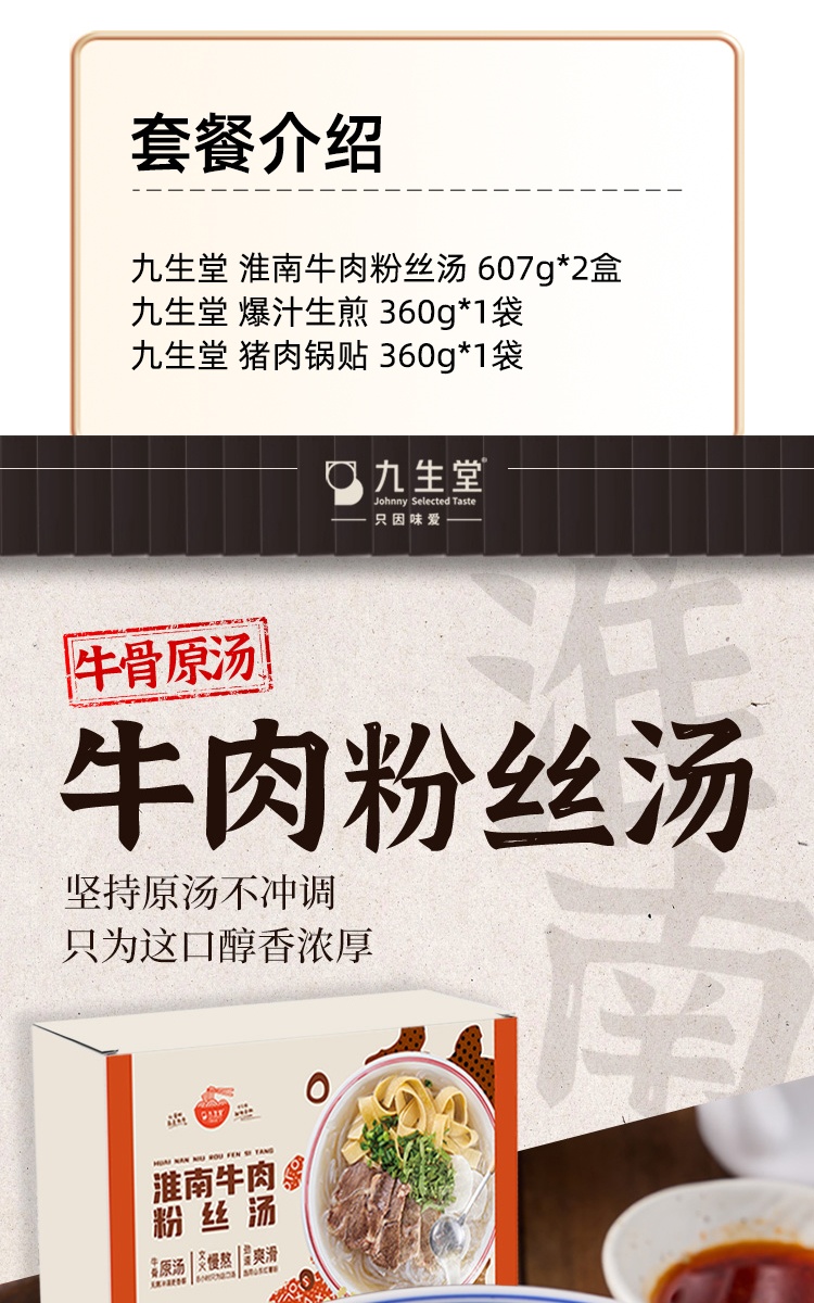 九生堂 组合(淮南牛肉粉丝汤*2+爆汁生煎*1+猪肉锅贴*1)1934g