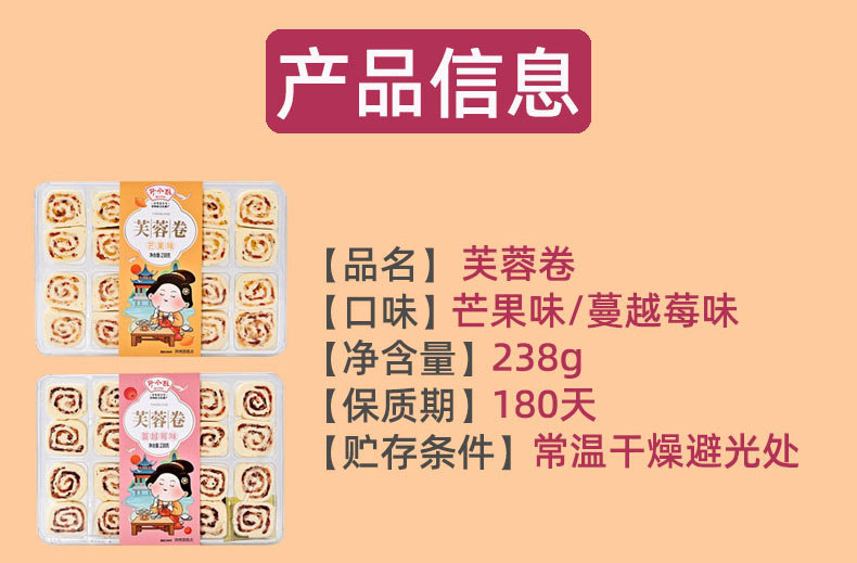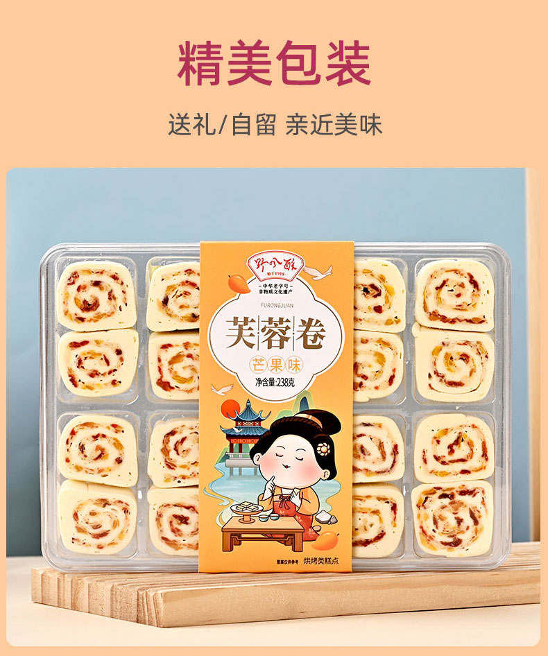 野风酥芙蓉卷238g 盒装送人山东特色济南风味糕点点心零食茶点伴手礼 芒果味