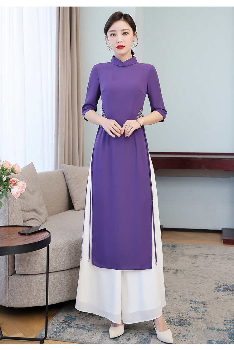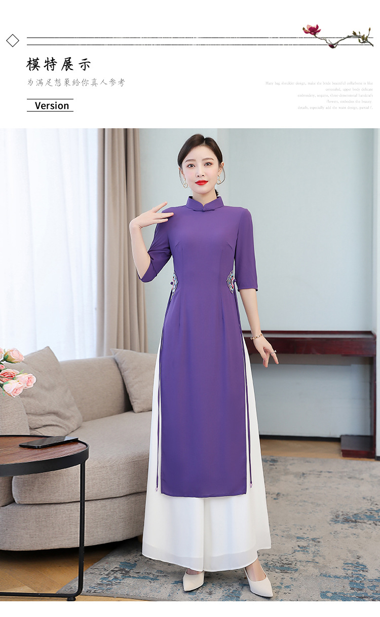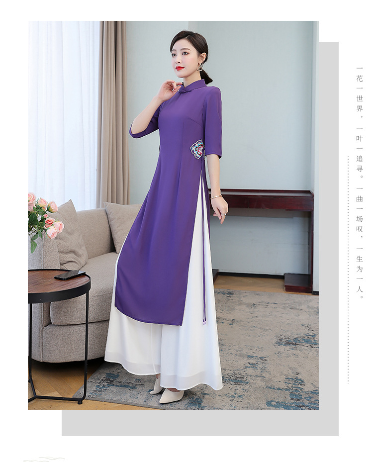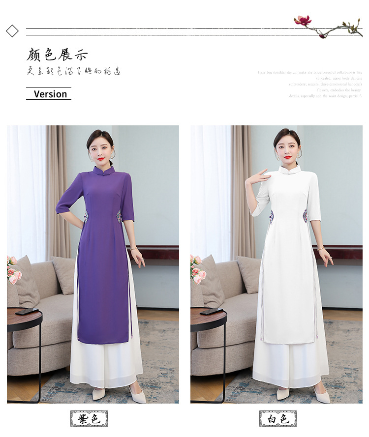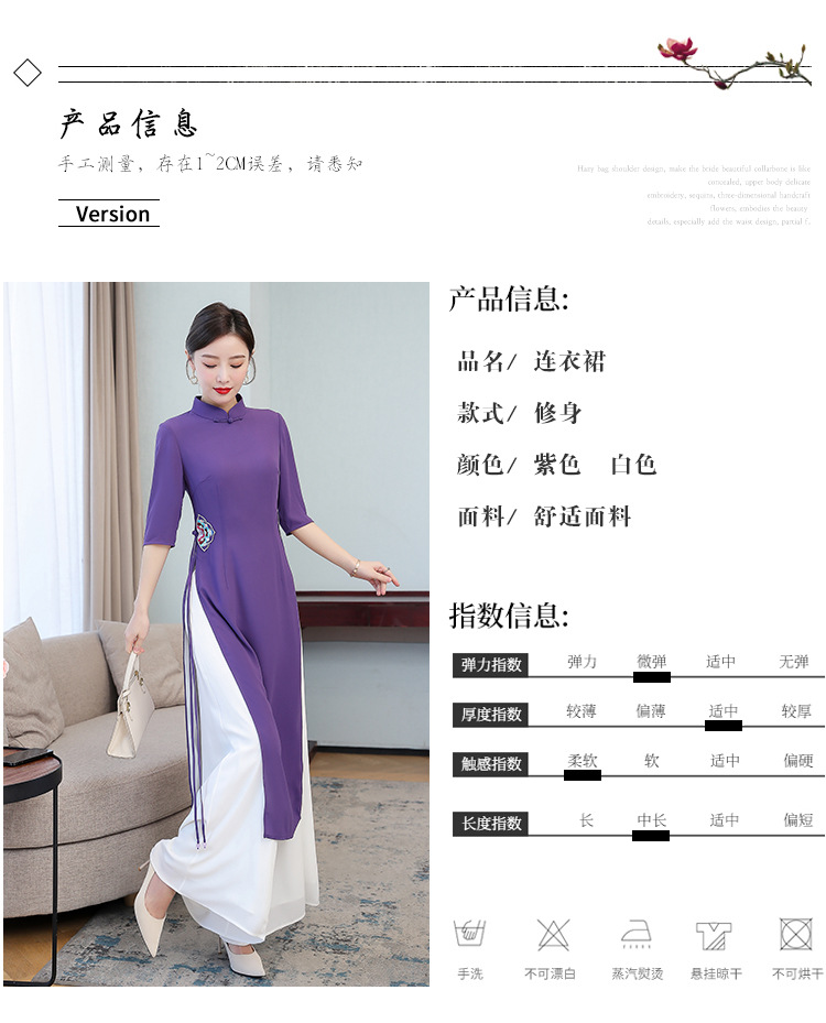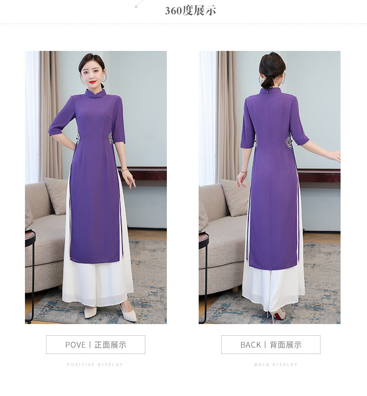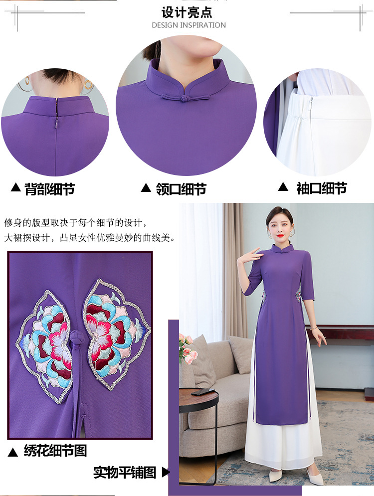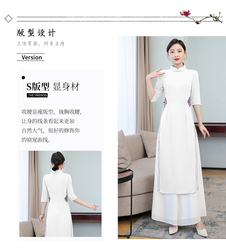 2022春夏新款中国风女装中式复古绣花旗袍连衣裙改良奥黛裤子套装 XY-DYS7959