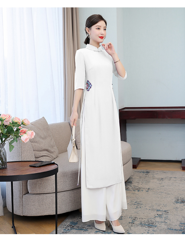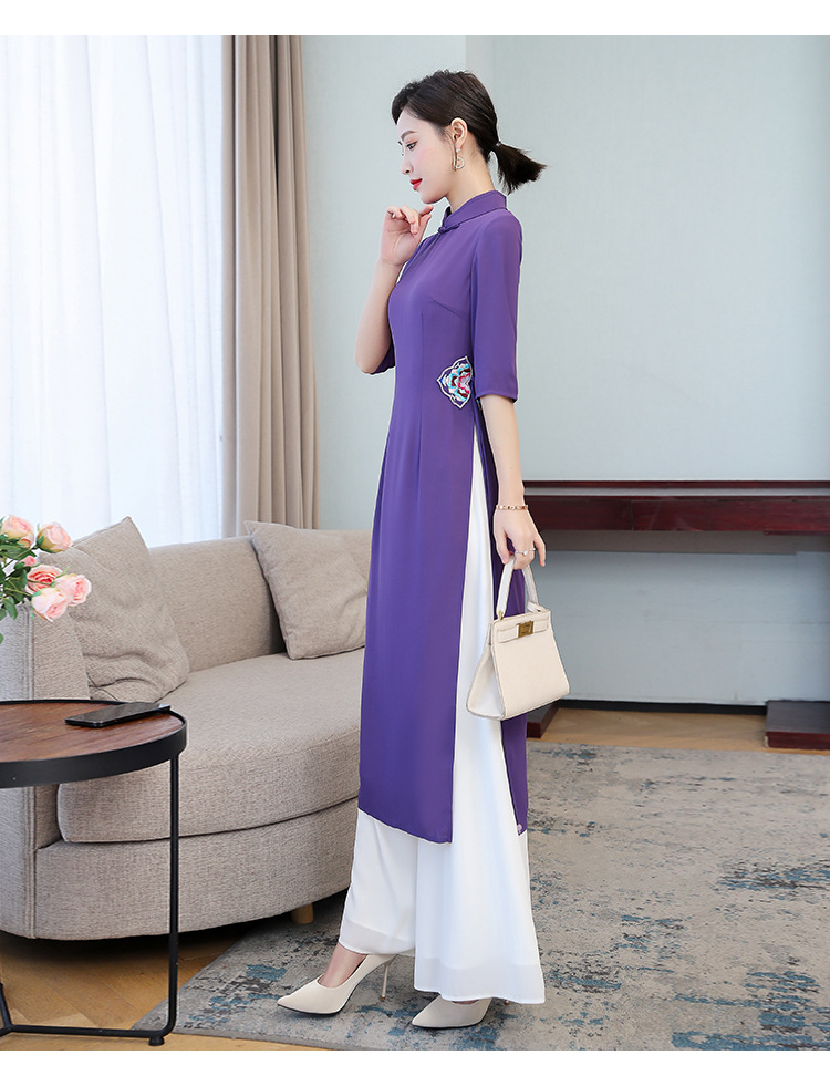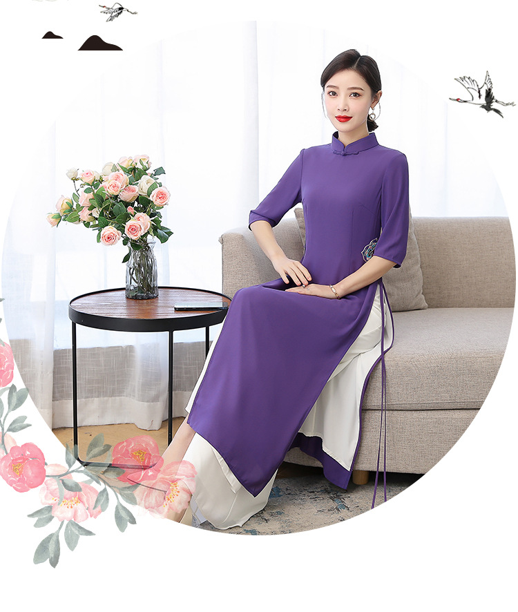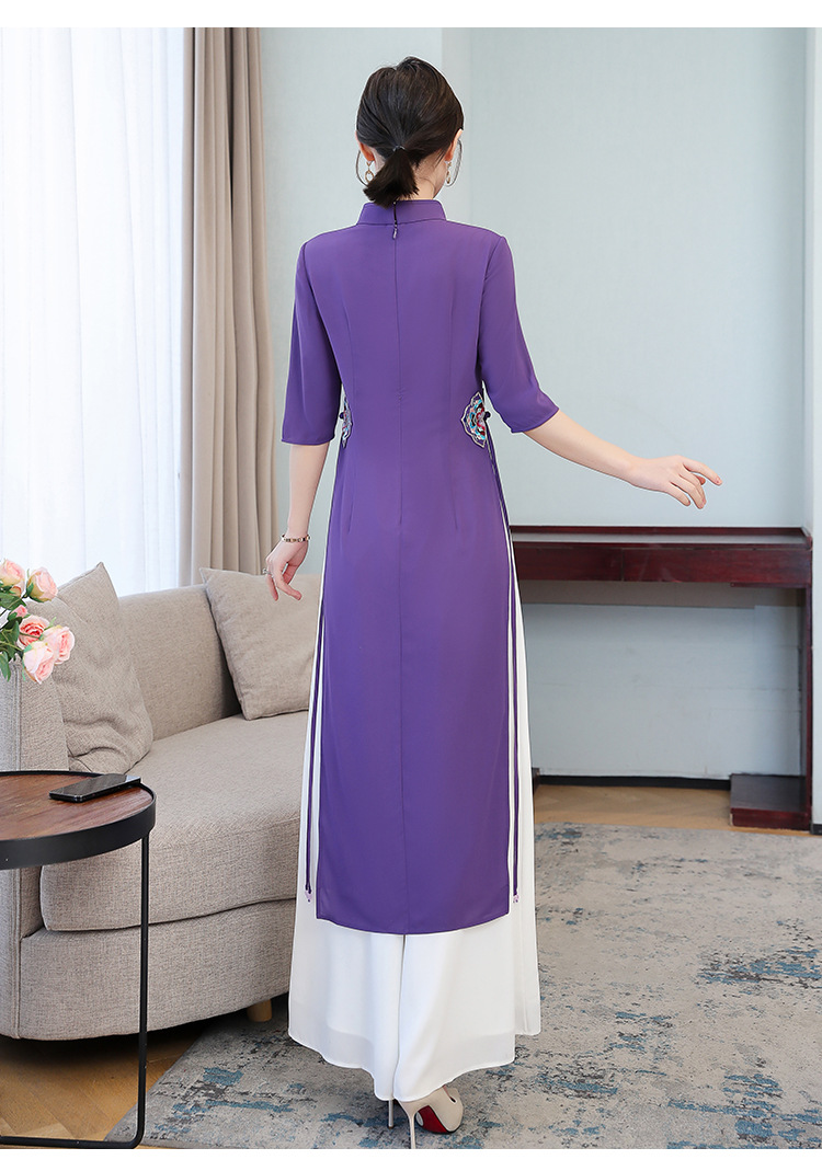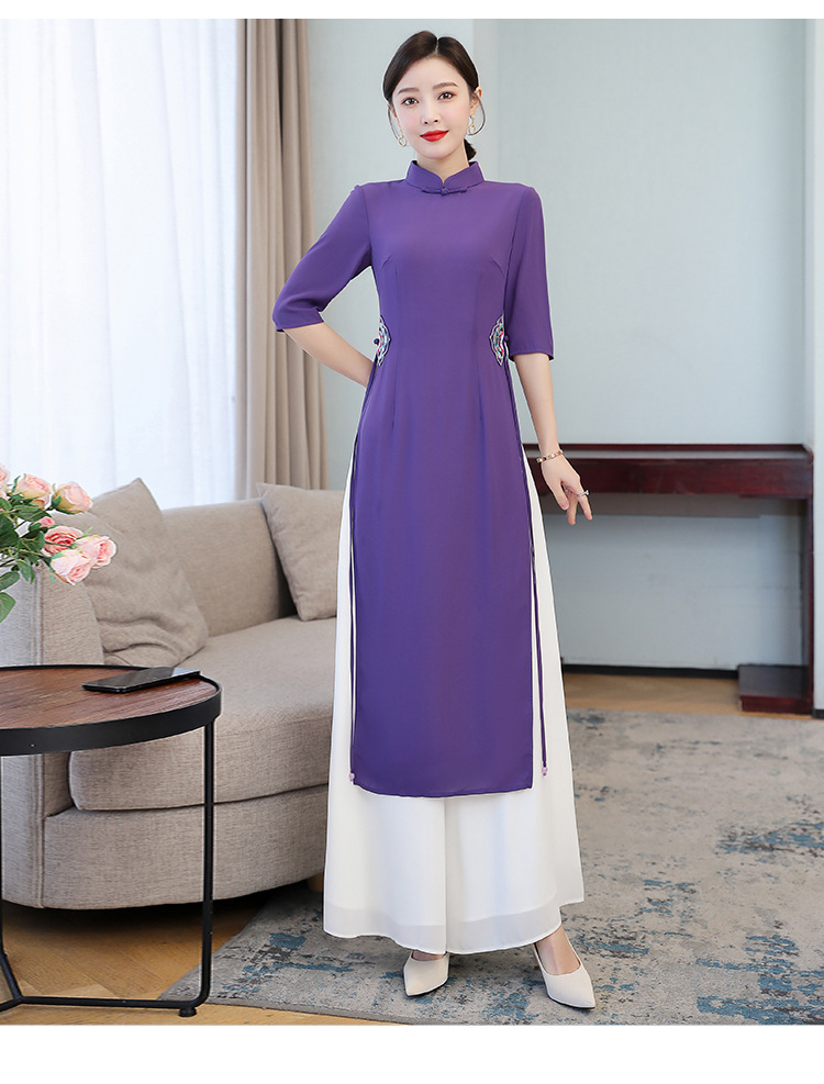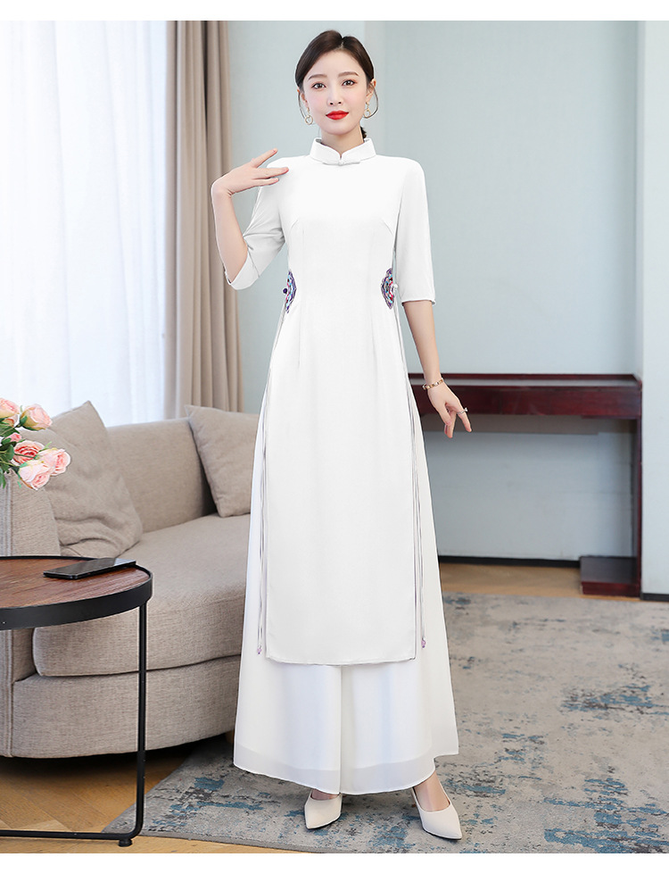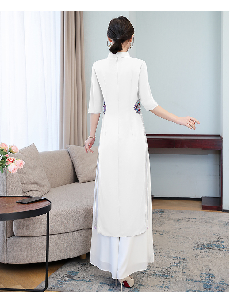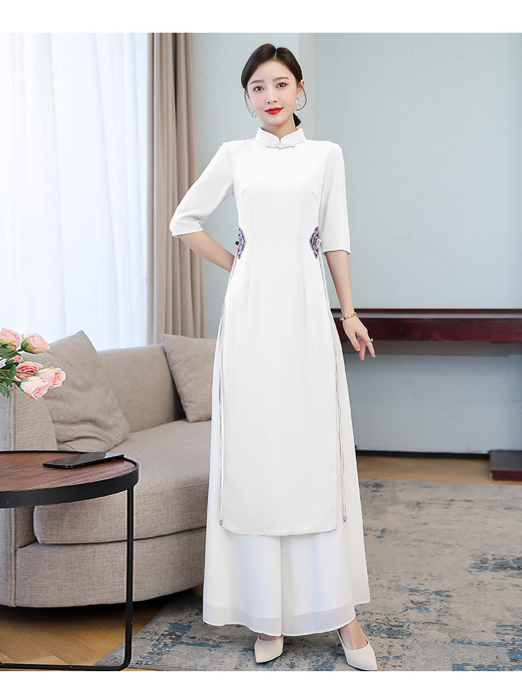 2022春夏新款中国风女装中式复古绣花旗袍连衣裙改良奥黛裤子套装 XY-DYS7959