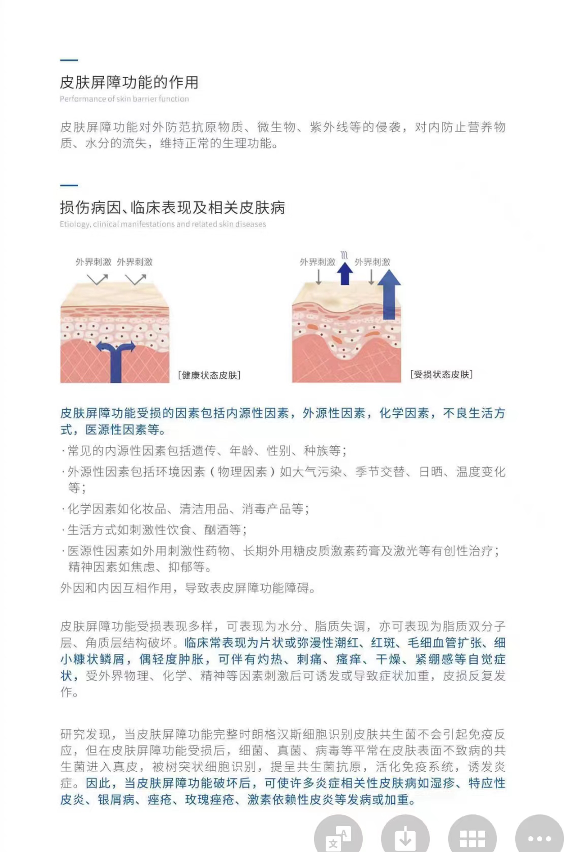 1、干性皮肤疾病的保湿修复;敏感皮肤、湿疹、激素依赖性皮炎;光电术后的保湿护理。