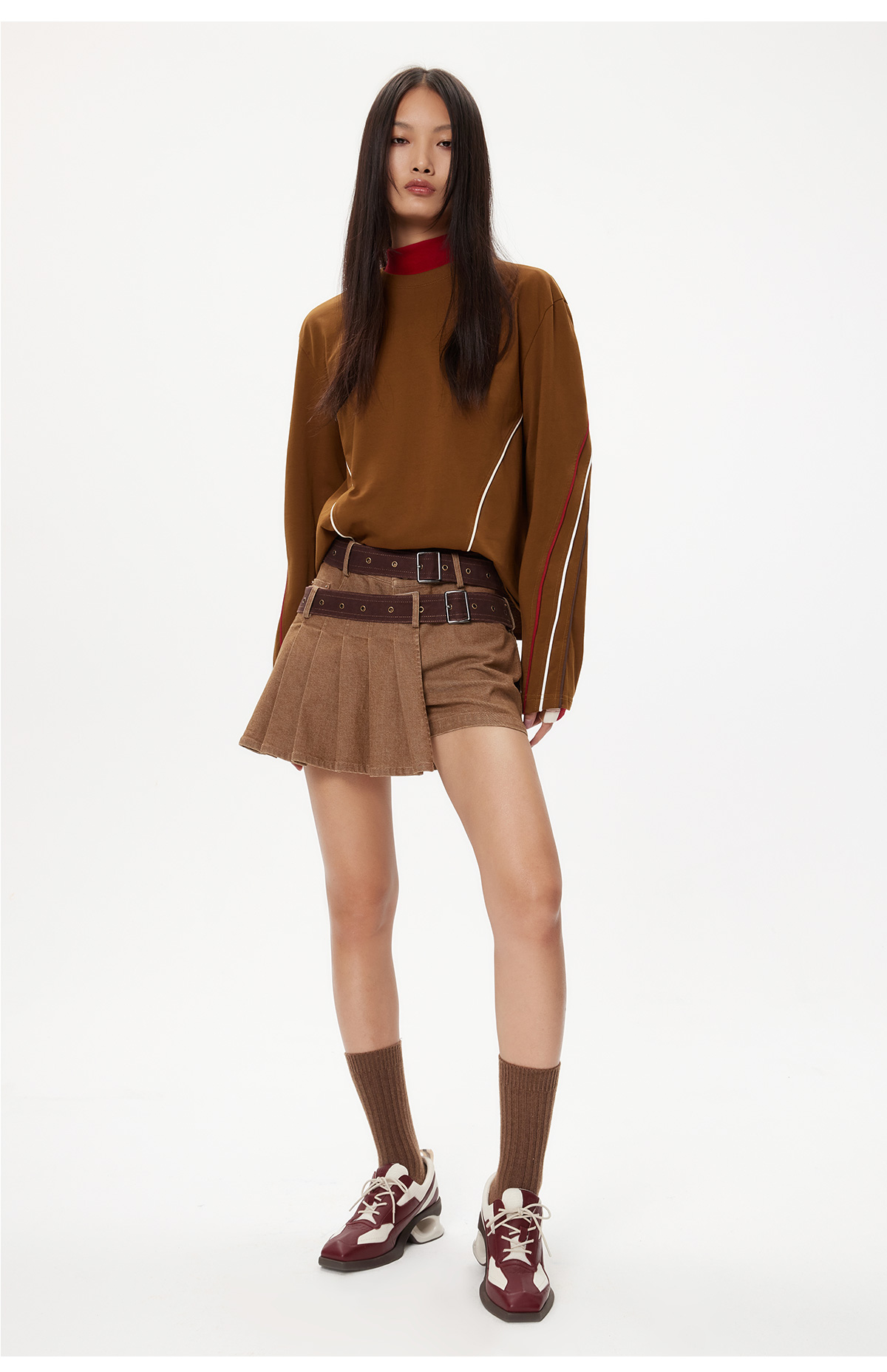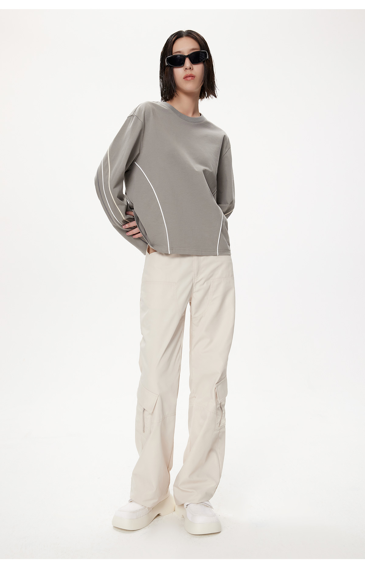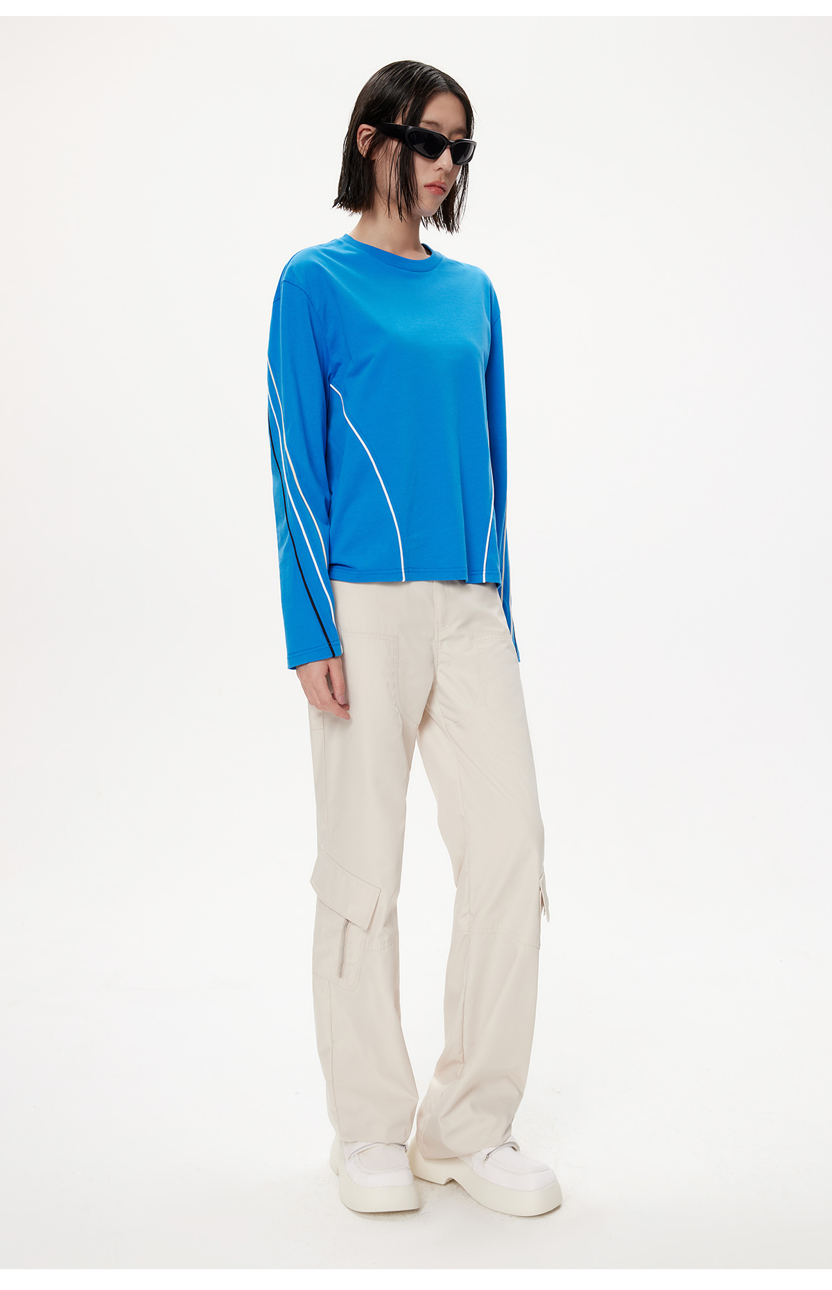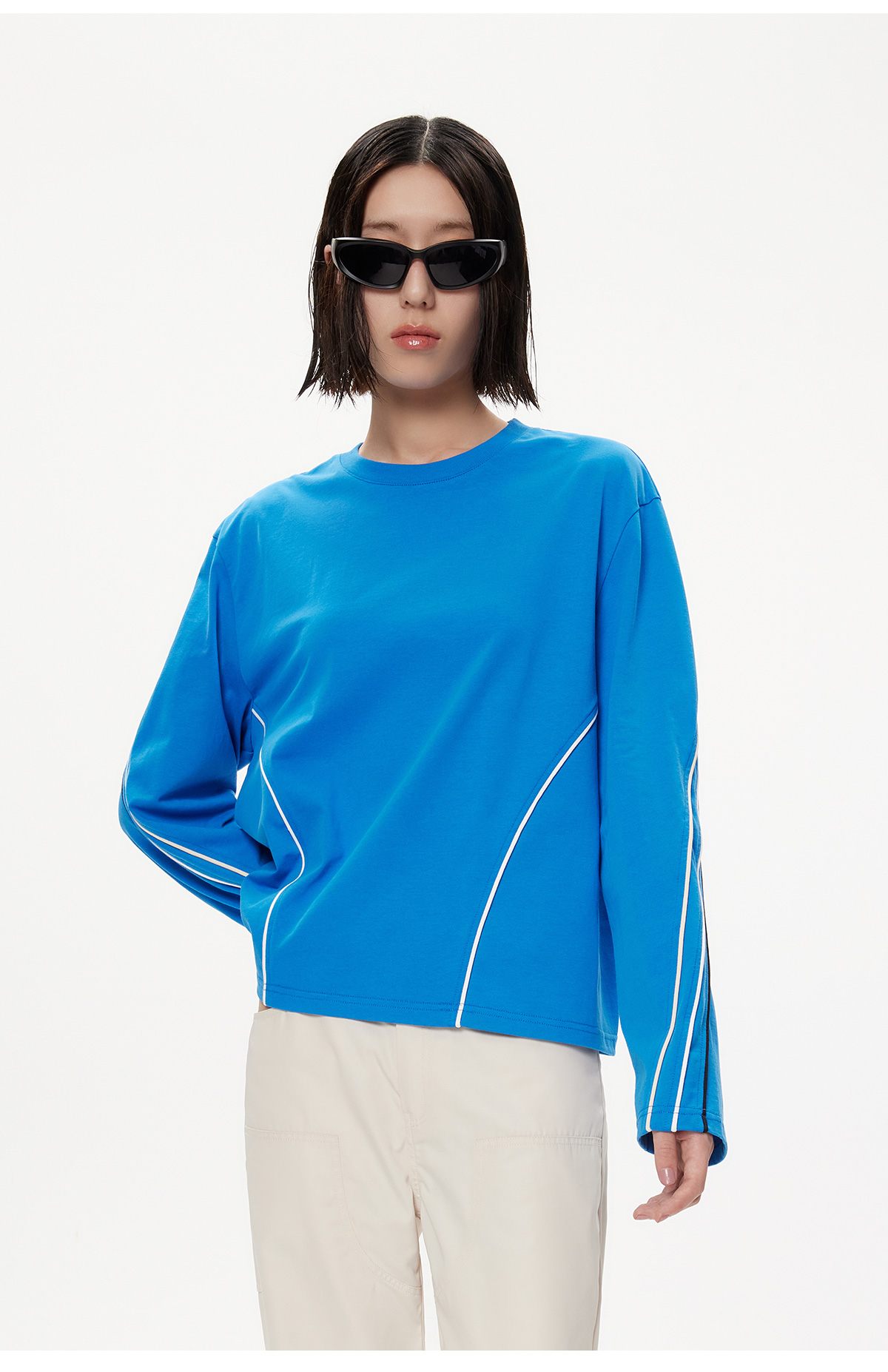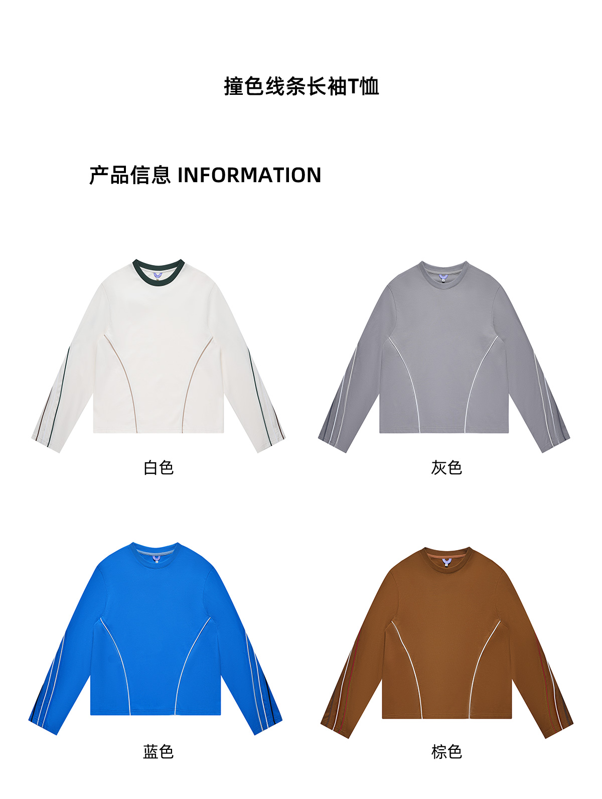 [捡漏价]lost in echo秋季新款百搭撞色线条设计打底直筒宽松全棉长袖T恤