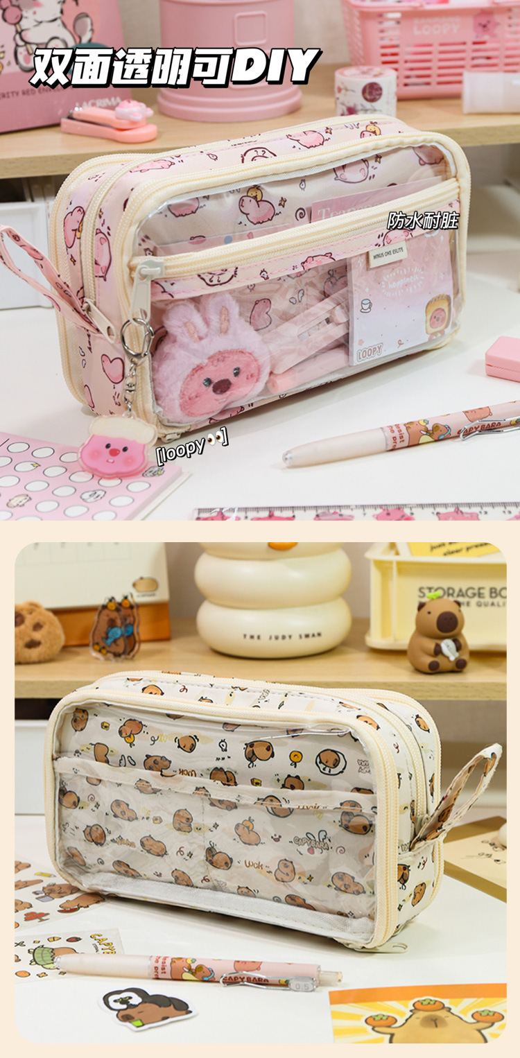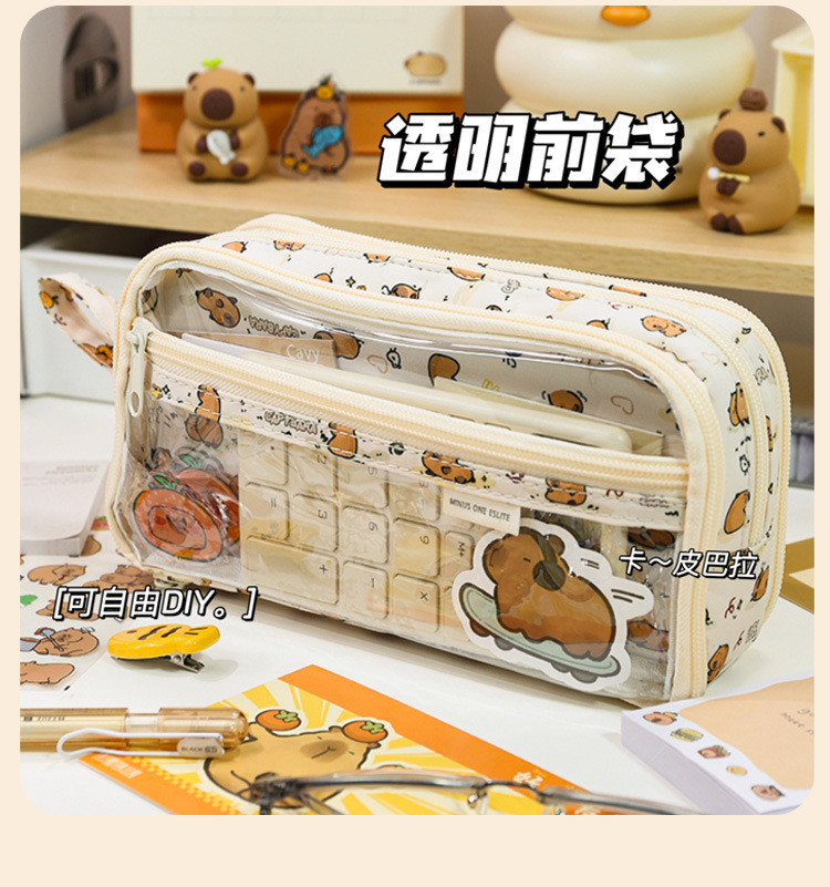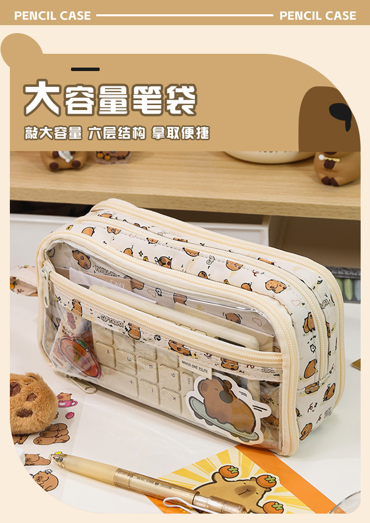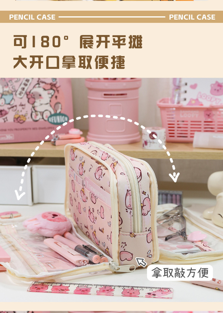 【开学季!透明大容量笔袋】韩国女ins风高颜值diy文具盒小学生铅笔盒男,可180°展开平摊 大开口拿取便捷。ry
